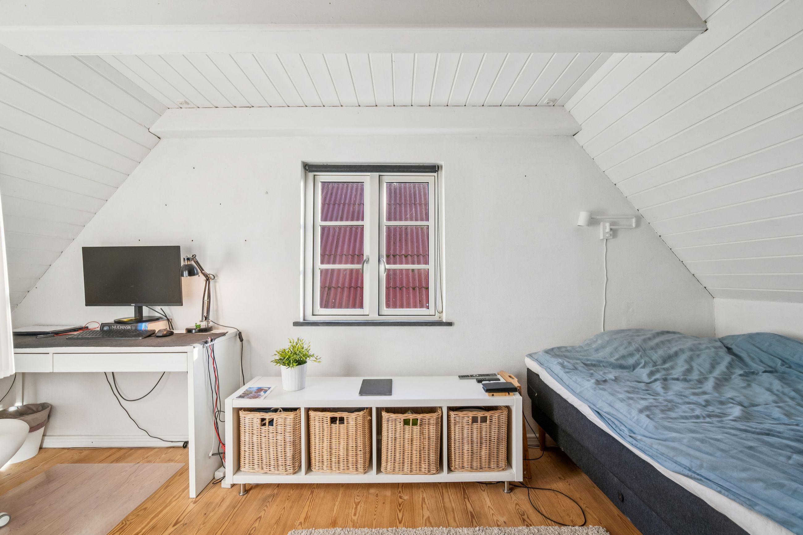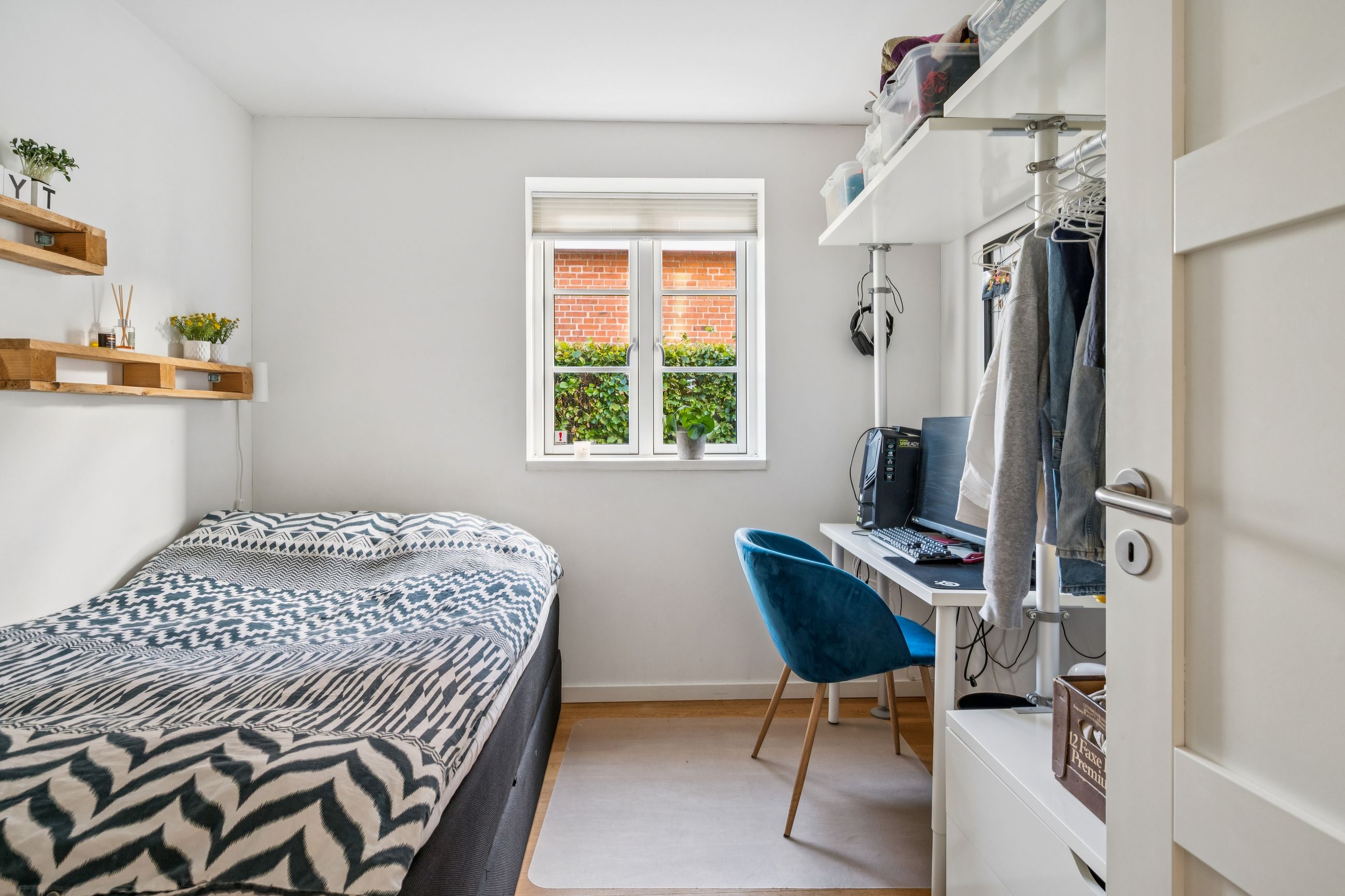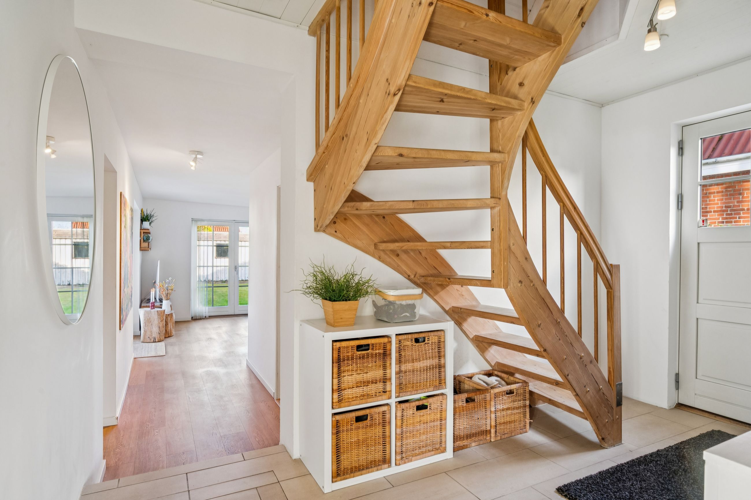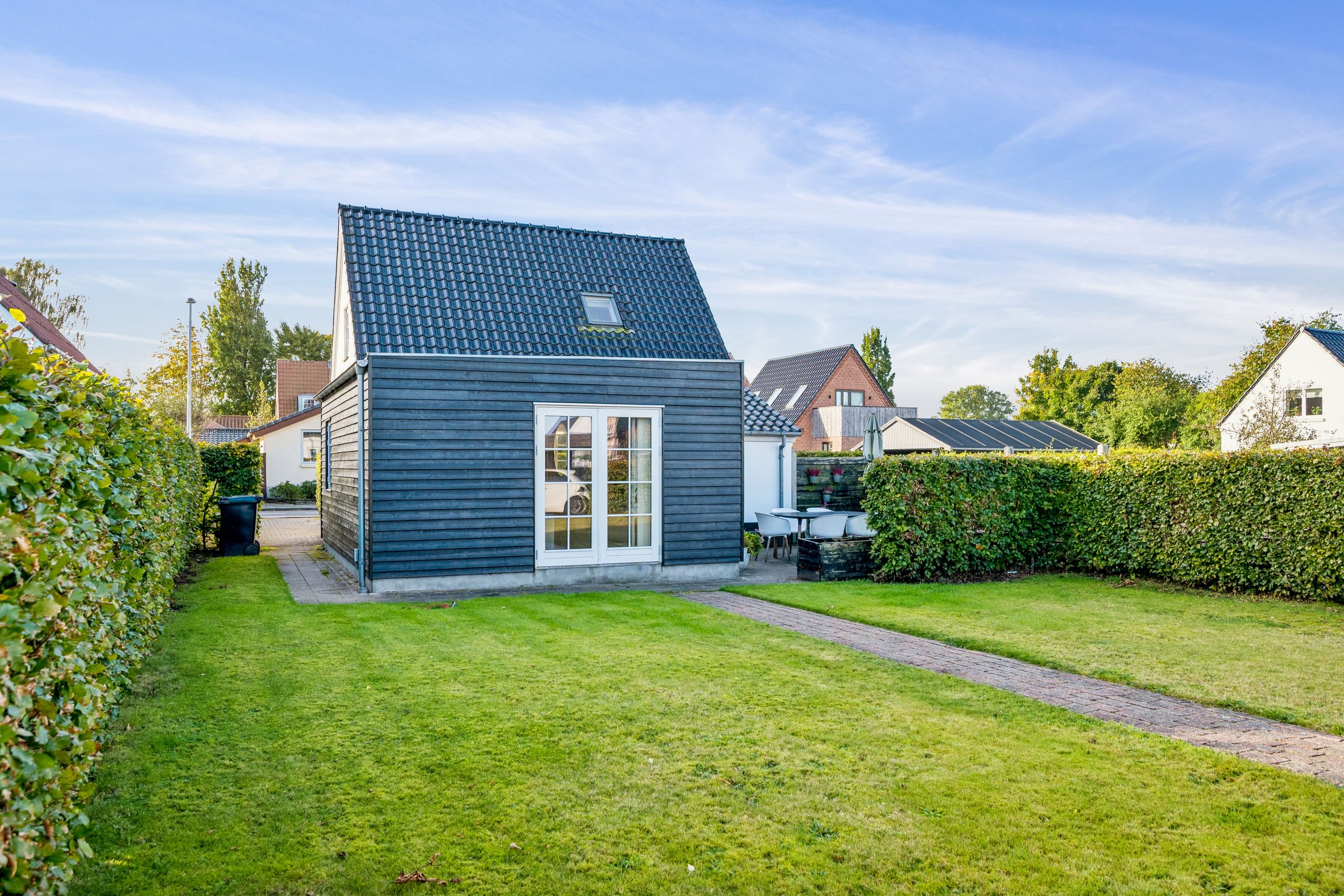 Resultatet er et hjem, der både er praktisk, lyst og fuld af atmosfære. Uderummet er mindst lige så indbydende. Terrassen vender perfekt mod sydvest. Den store grund afgrænset af bøgehæk giver masser af luft til naboerne og en sjælden følelse af privatliv midt i byen. Det eksisterende udhus har krafttilslutning og rummer et oplagt potentiale som værksted eller hobbyrum. Carport og udhus fik nyt tag i 2020.