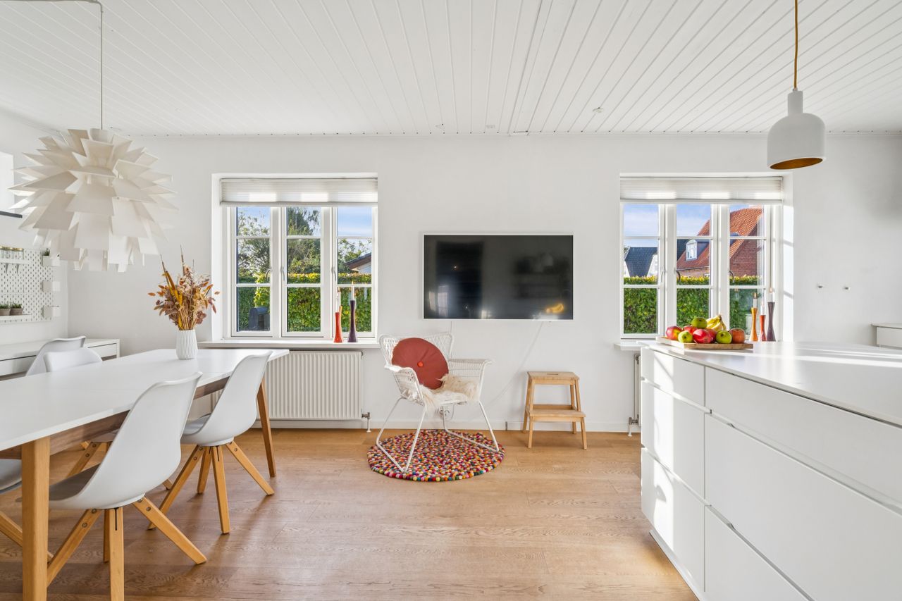 Alt i alt får du et hjem med sjæl, kvalitet og yderligere potentiale – perfekt til dig, der ønsker den rigtige stil kombineret med praktisk komfort og en beliggenhed, der er i høj klasse og gåafstand til alle hverdagens fornødenheder