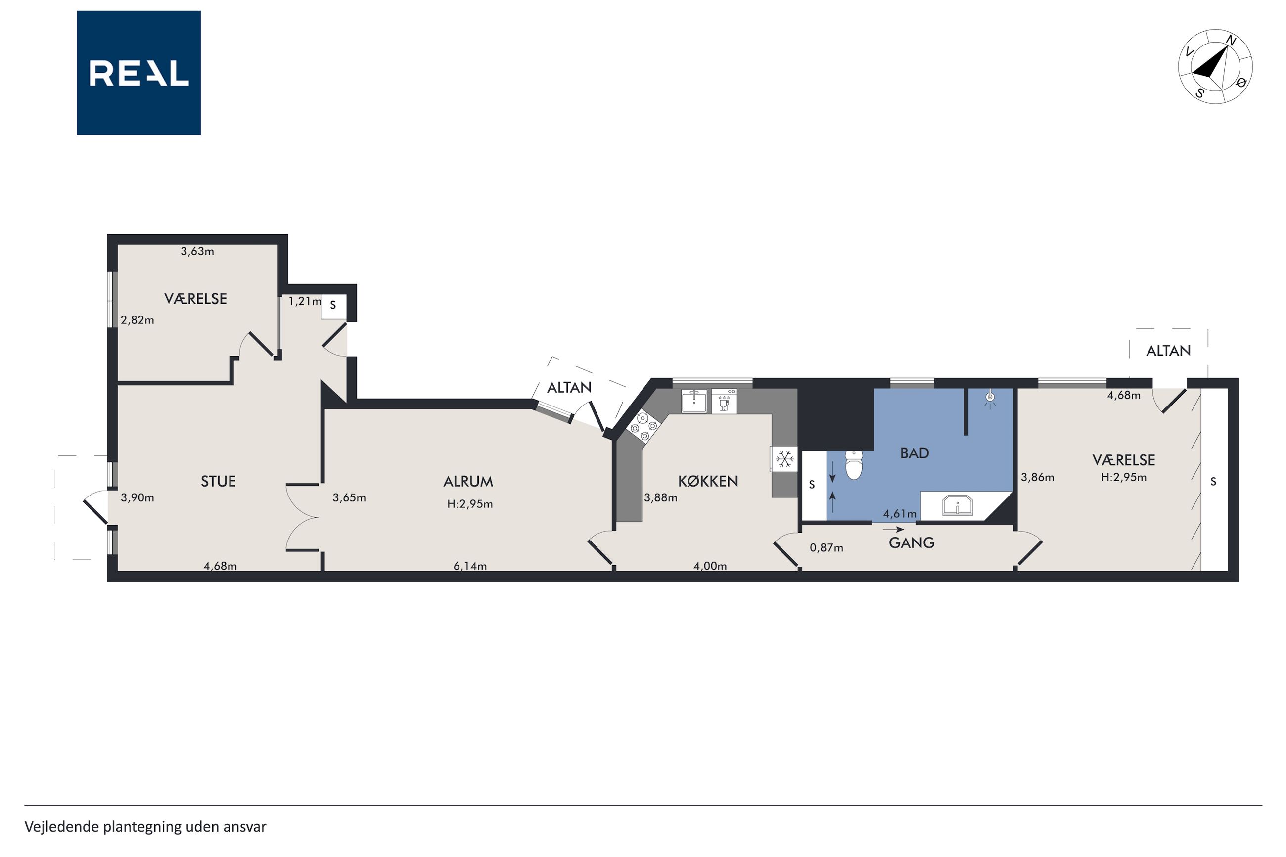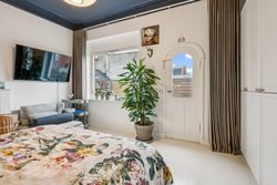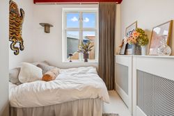 Lejligheden byder på et stort soveværelse med indbyggede skabe og egen altan samt et ekstra værelse med mange anvendelsesmuligheder. Det rummelige køkken ligger i åben forbindelse med den enestående spisestue, der oser af atmosfære og stil – og herfra er der ligeledes udgang til altan.
