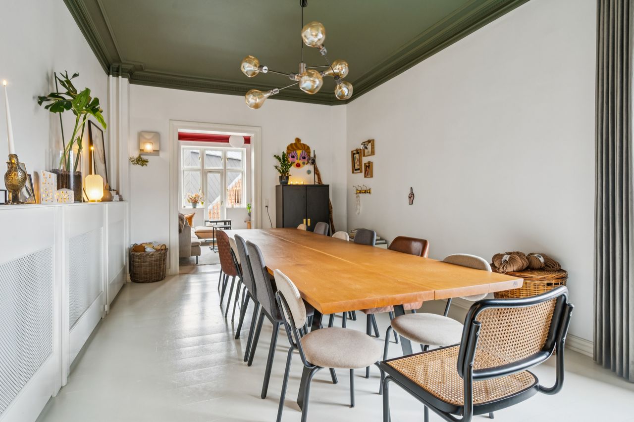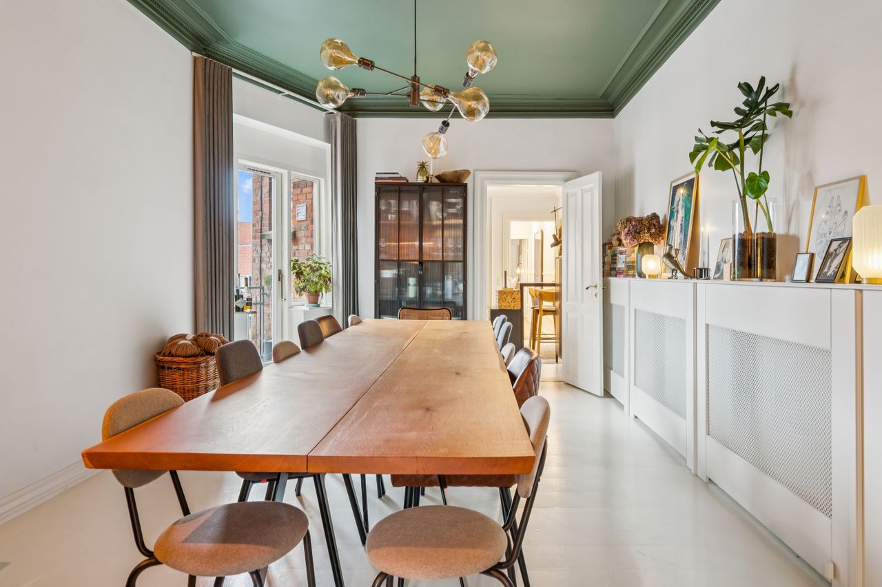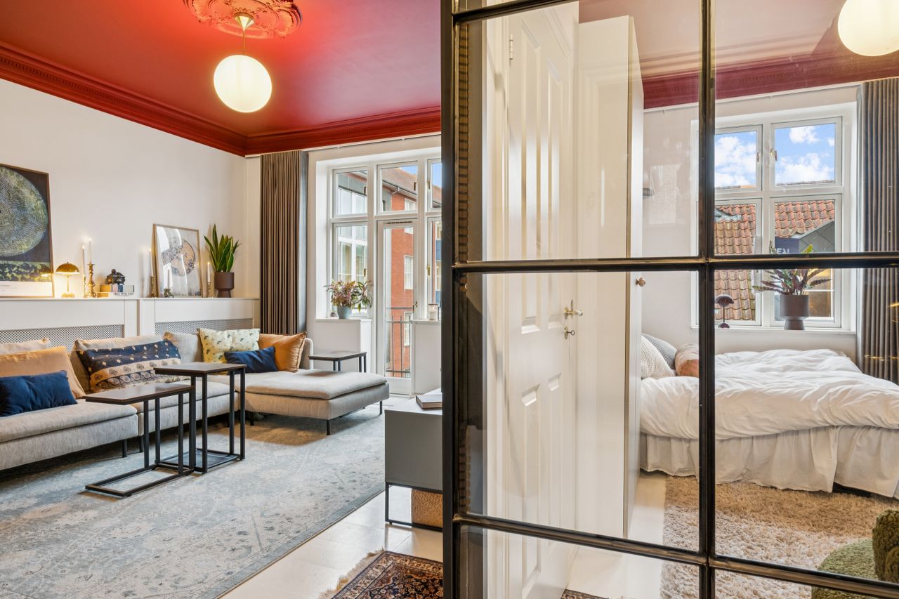 Velkommen til Søndergade 23, 2. tv. – en helt unik og gennemført herskabelig lejlighed, hvor klassisk charme møder moderne komfort. Her får du en bolig ud over det sædvanlige med sublime detaljer, imponerende loftshøjde og elegante stuklofter, der tilsammen skaber en stemning af eksklusivitet og varme.