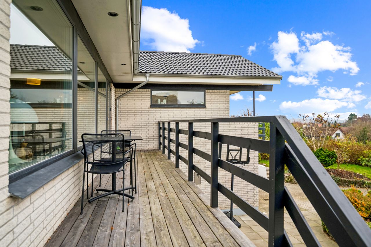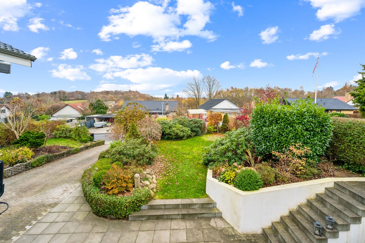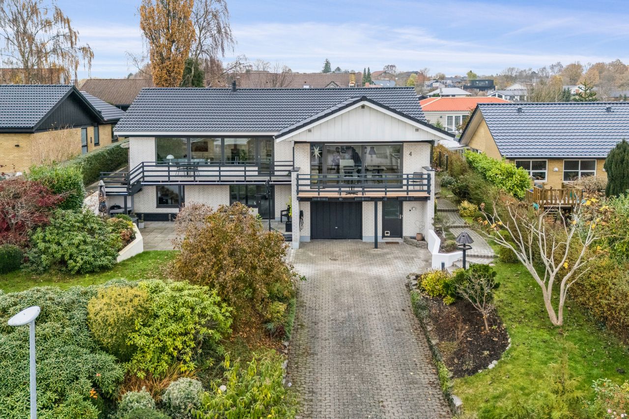 Boligen her er en fantastik perle, hvor hver eneste kvadratmeter er skabt med fokus på luksus, komfort og stil. Med hele 308 etagemeter, heraf 221 kvm. bolig, 22 kvm. integreret garage plus 65 kvm. disponible rum i underetagen; byder hjemmet her på en overflod af plads, der giver uanede muligheder for trivsel, frirum for både dig og dine teenagere og hyggeligt afslappet familieliv.