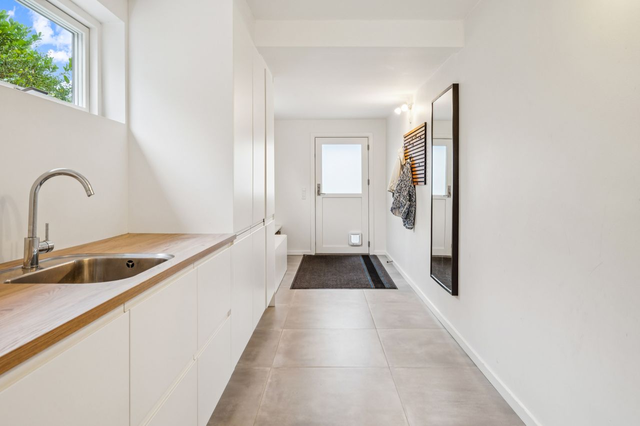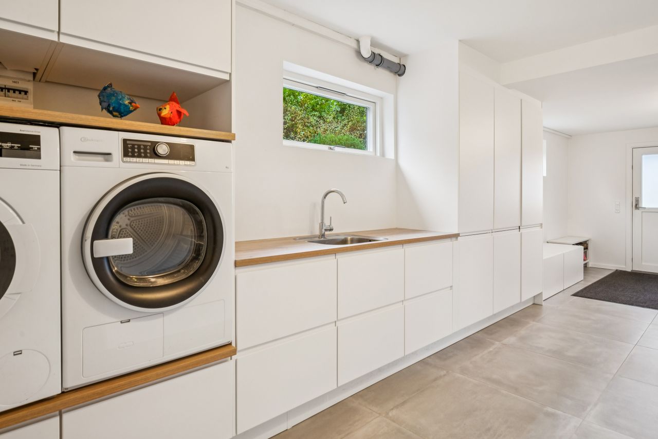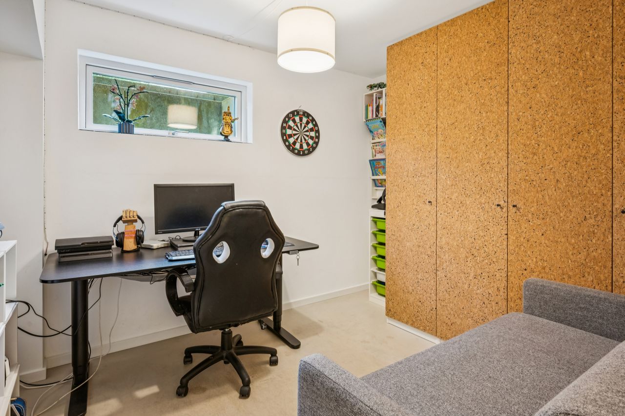 Underetagen er et sandt mekka for husets ældste unge, med to store teenageværelser, et gennemført lækkert badeværelse, et multirum, et stort bryggers og et praktisk viktualierum – alle perfekt udnyttet og ideelle til opbevaring, hjemmearbejde eller fritid. De to ekstra rum, der i dag fungerer som hjemmekontor og gamer lounge, tilbyder mulighed for at tilpasse boligen til netop dine behov. Garageanlægget er integreret i underetagen og giver både praktisk opbevaring og direkte adgang til boligen, hvilket gør hverdagen lettere og mere bekvem. Og fik vi nævnt, gulvvarme i hele underetagen.