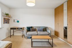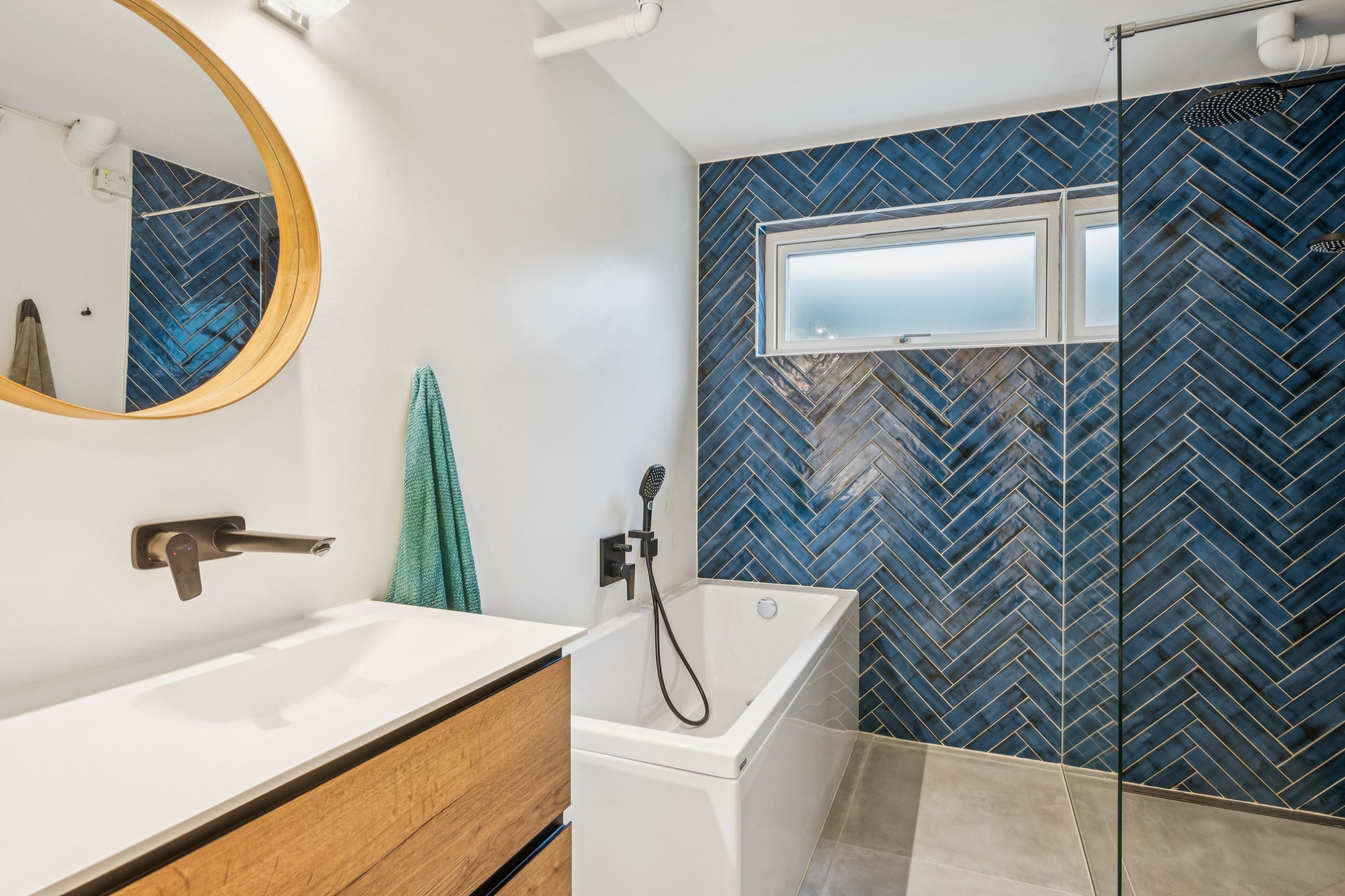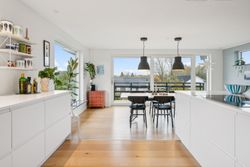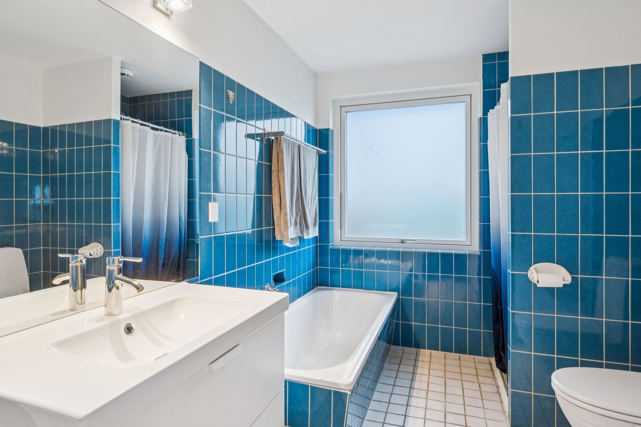 Kun det ene badeværelse og enkelte velvalgte indbygningsskabe er bevaret som en smuk let opshinet reference til husets oprindelige 1970'er stil.