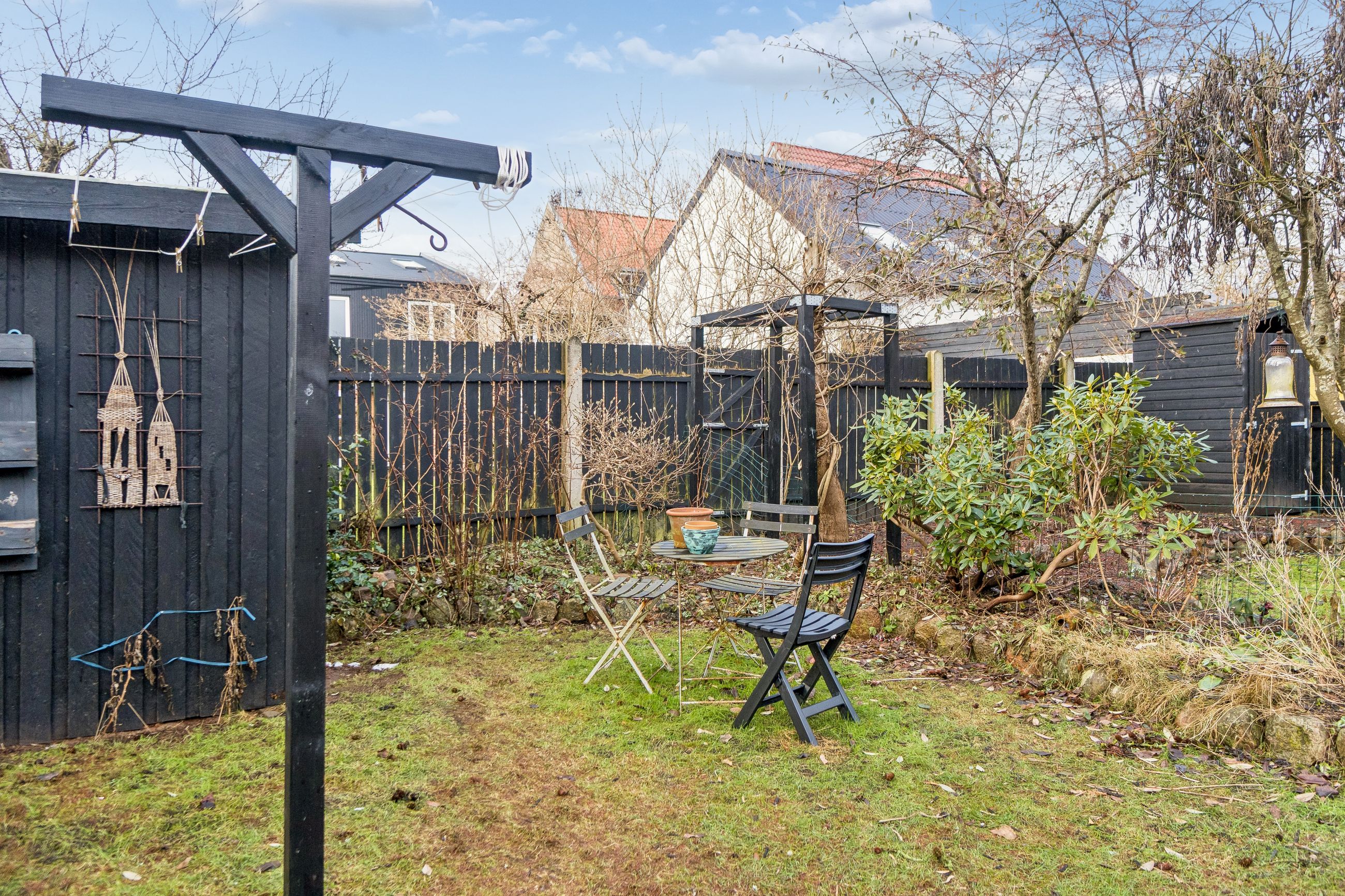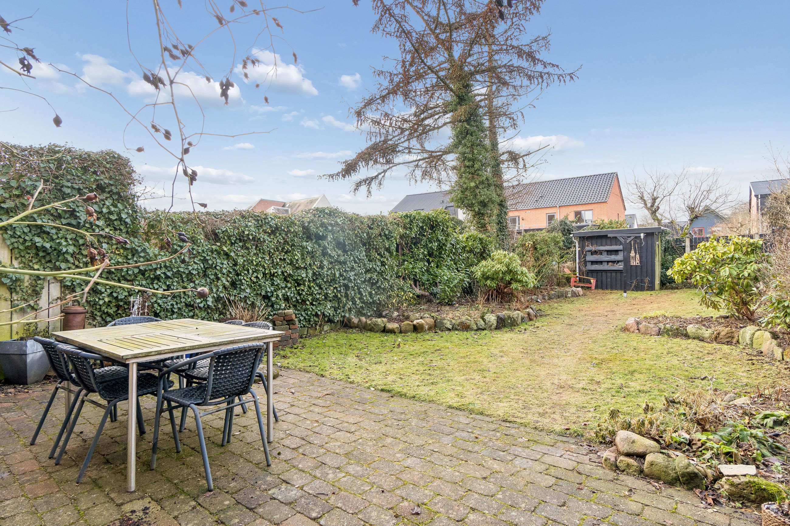 De tre lejligheder har opdelt brugsretten til haven, sådan at de to lejligheder i 18A, deles om den største del af den meget hyggelige og solrige vestvendte have.