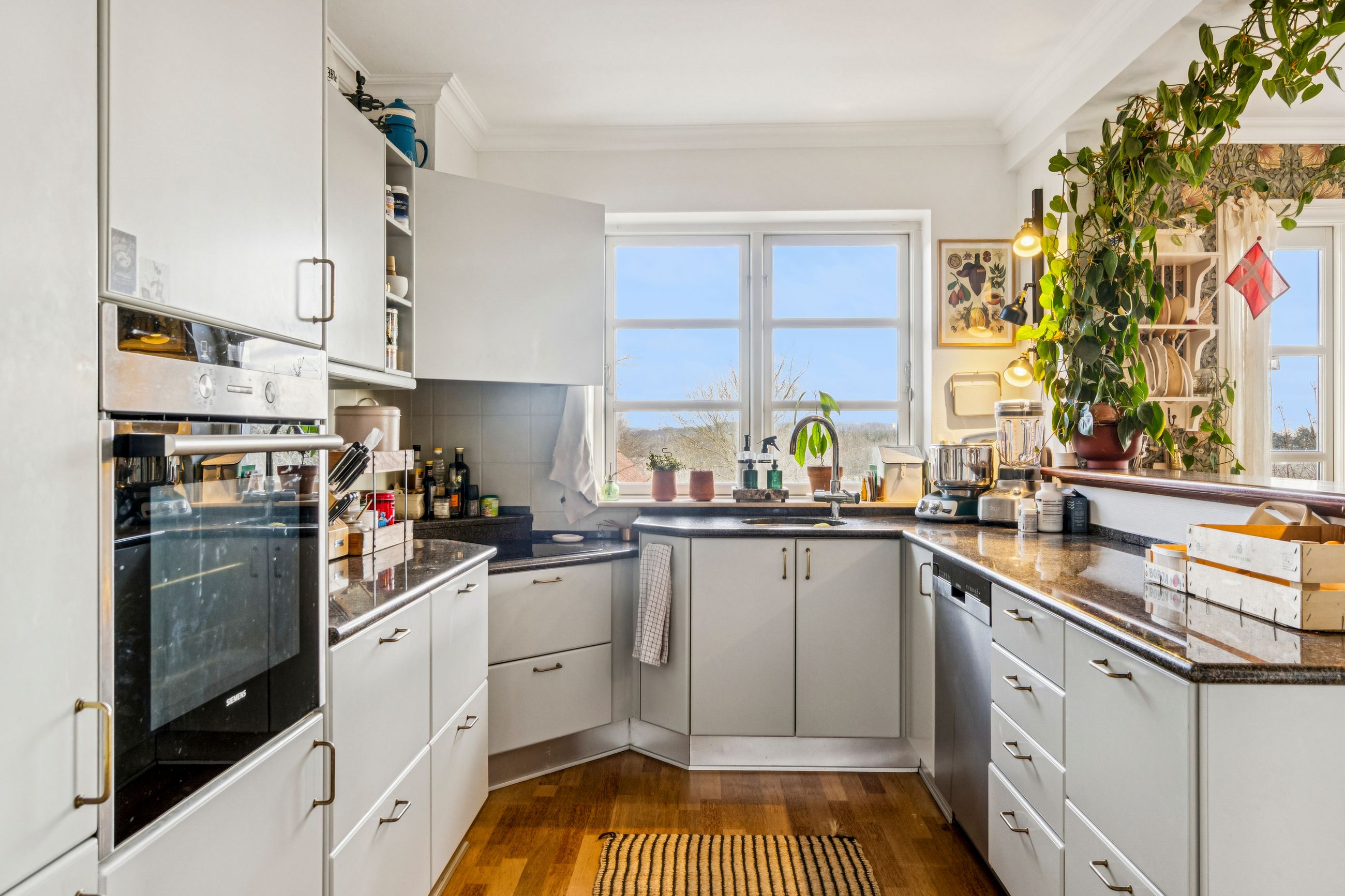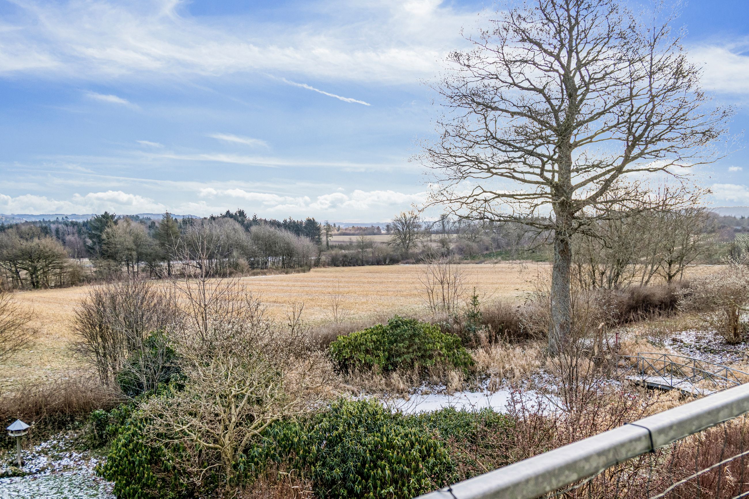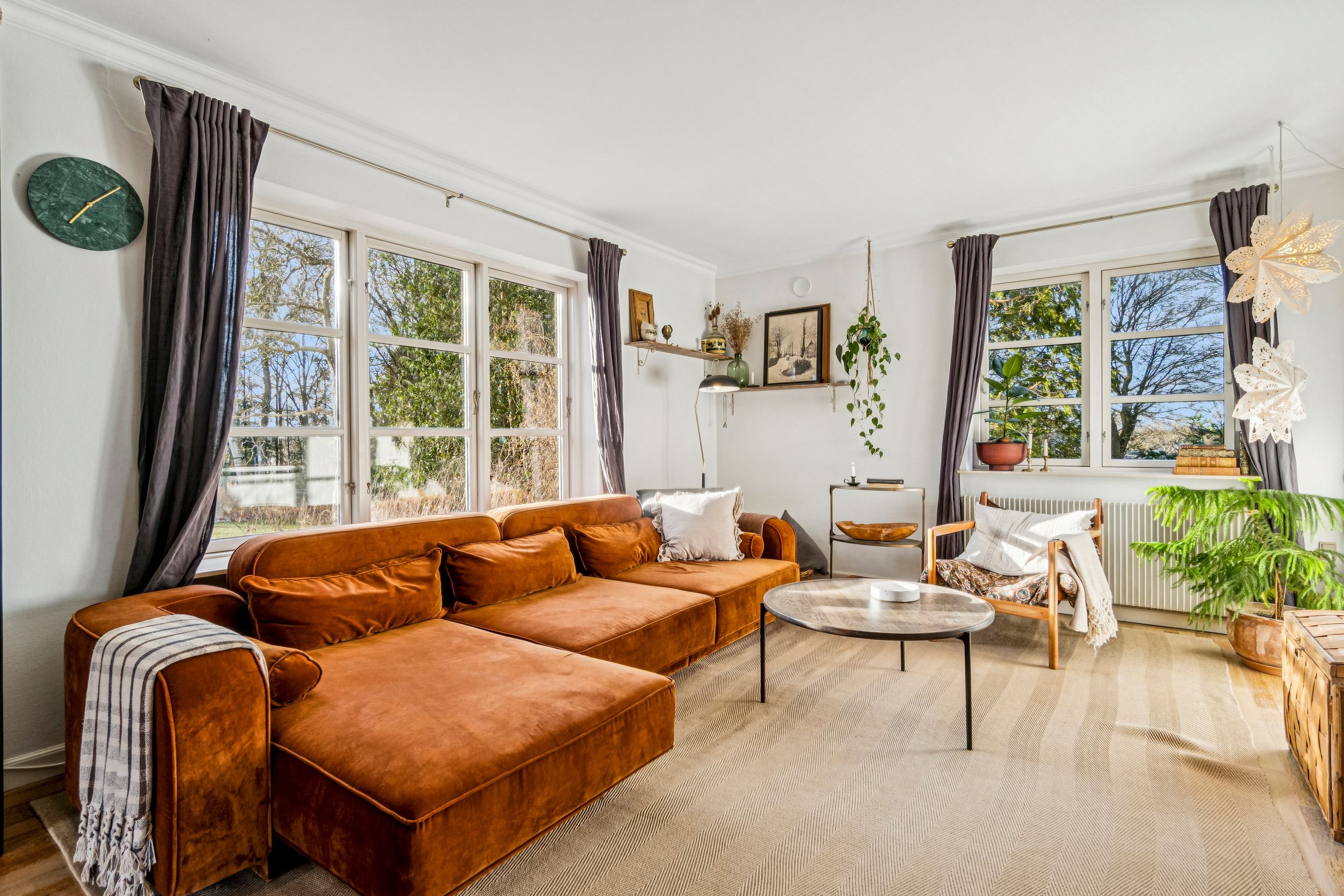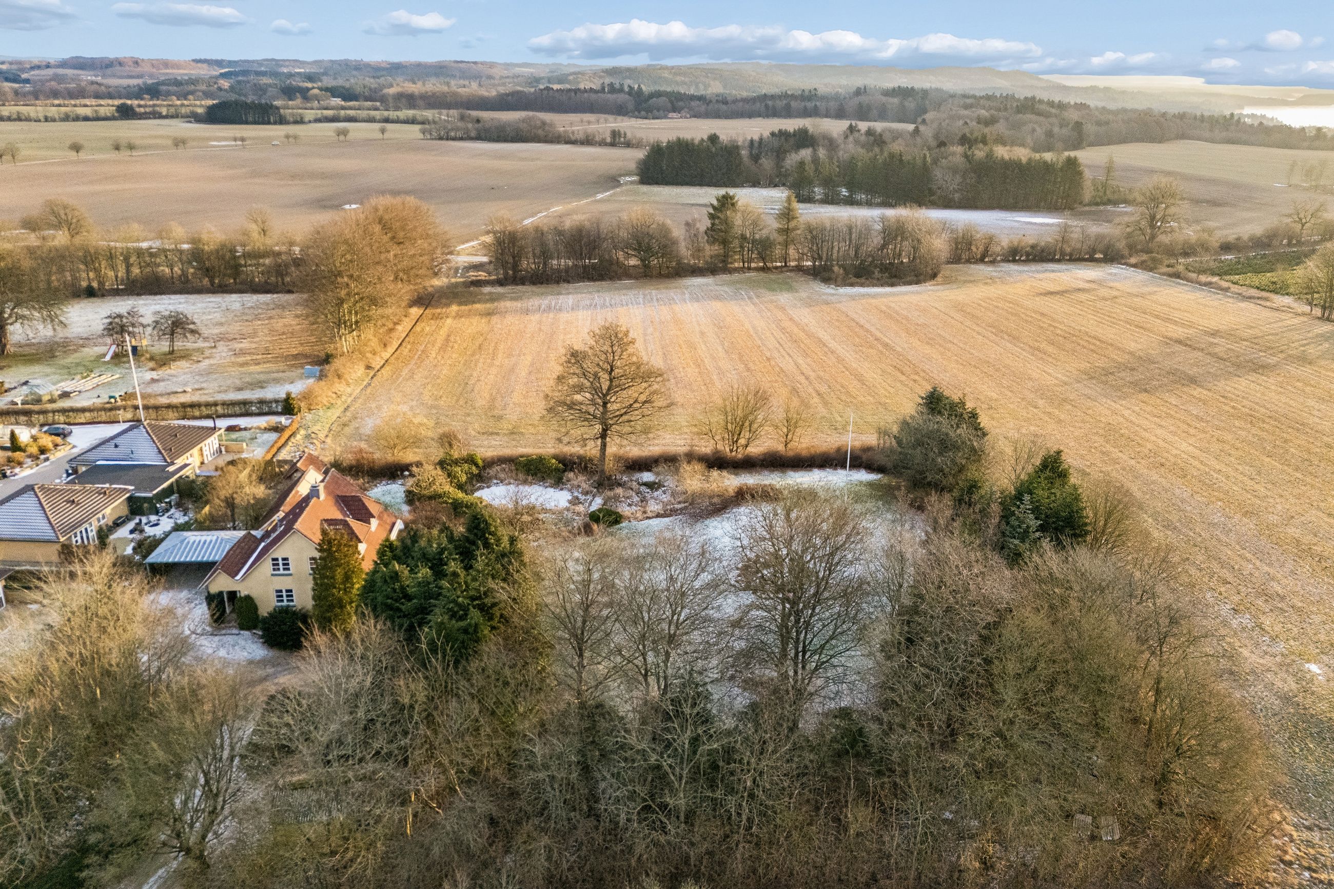 Indvendigt mødes I af hyggelige opholdsrum med en varm og hjemlig atmosfære. Her er plads til både samvær og fordybelse, og flere steder i boligen kan I nyde udsigten til det omkringliggende landskab, som skifter karakter med årstiderne. De store vinduespartier trækker naturen helt ind i hjemmet og understreger den landlige charme.