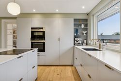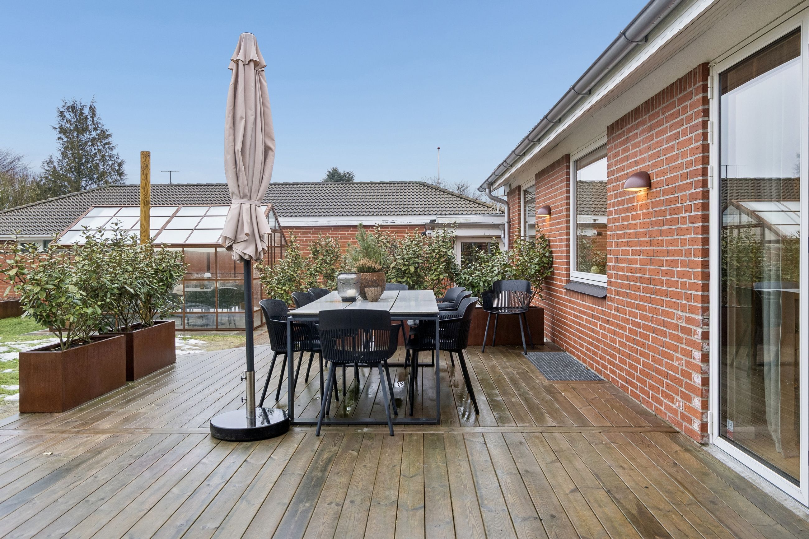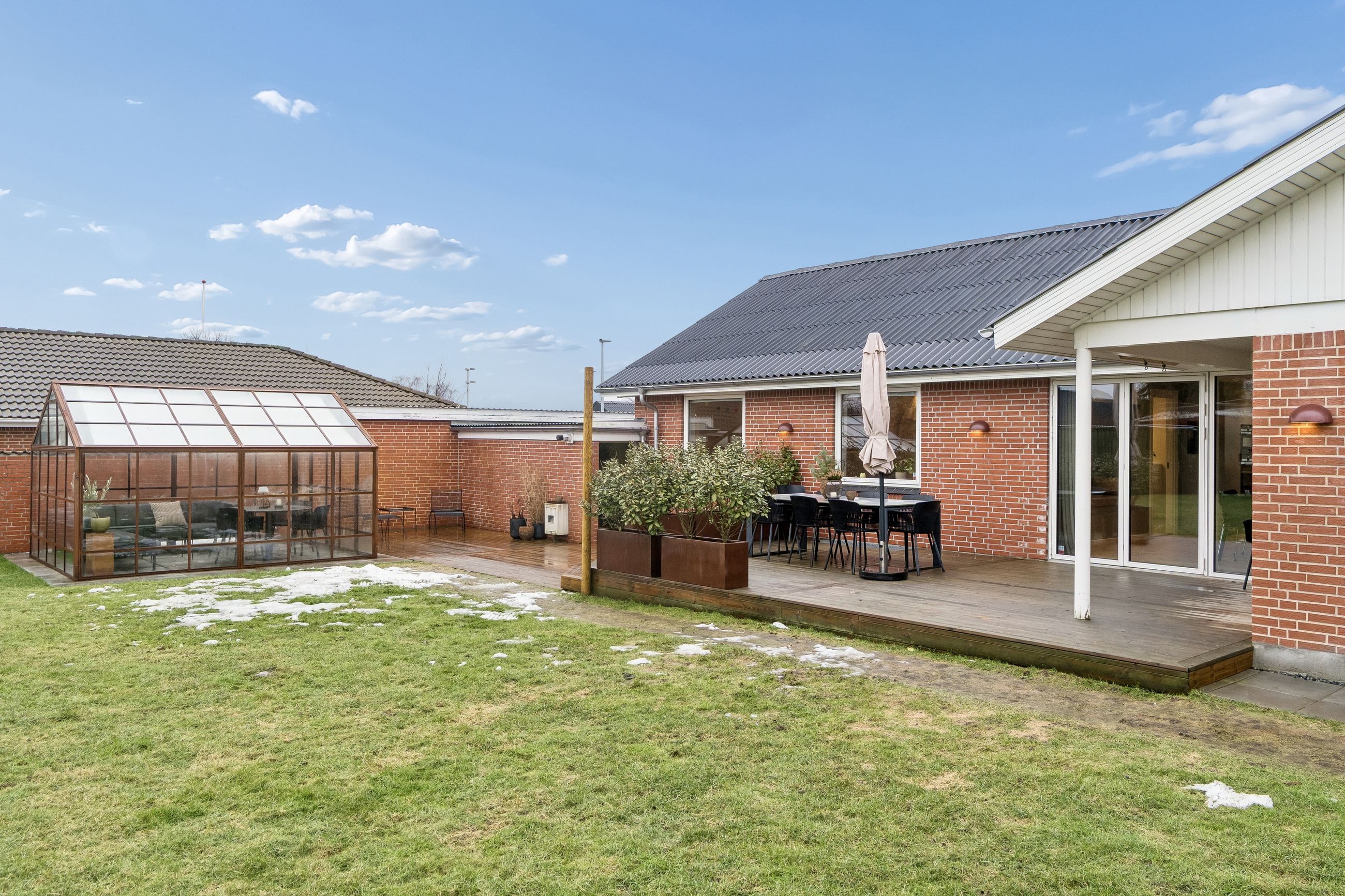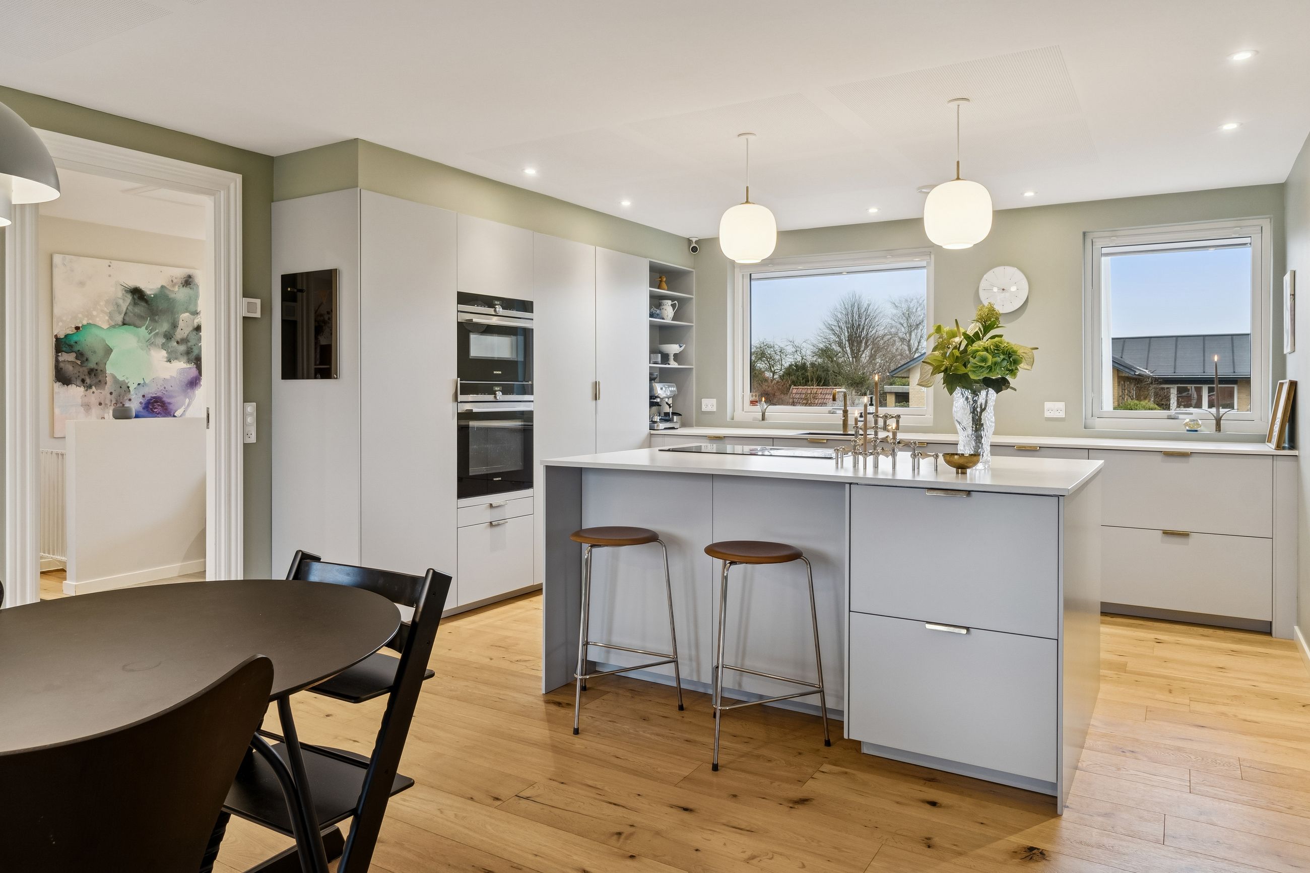 Husets naturlige samlingspunkt er det store og indbydende køkken/alrum, som ligger i åben forbindelse med stuen. Her strømmer lyset ind og skaber en skøn atmosfære – perfekt til både hverdag og gæstebud. Fra alrummet er der direkte udgang til en dejlig terrasse og en hyggelig, afskærmet have, hvor udelivet kan nydes i fulde drag.