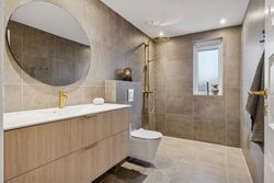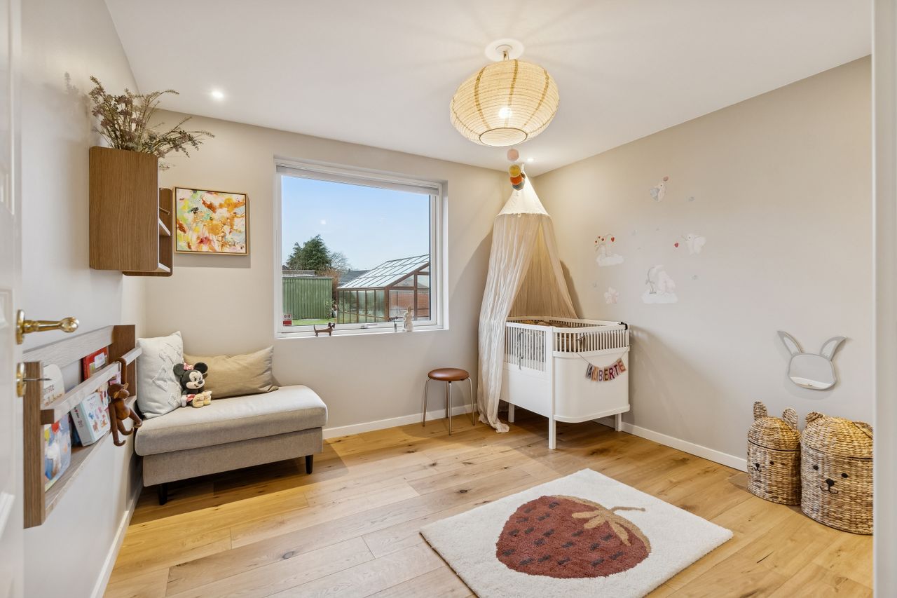 I den modsatte ende af huset finder I en separat børneafdeling med tre gode og regulære værelser samt endnu et flot badeværelse – ideelt til familiens yngste eller som kombination af børne- og kontorafdeling.
