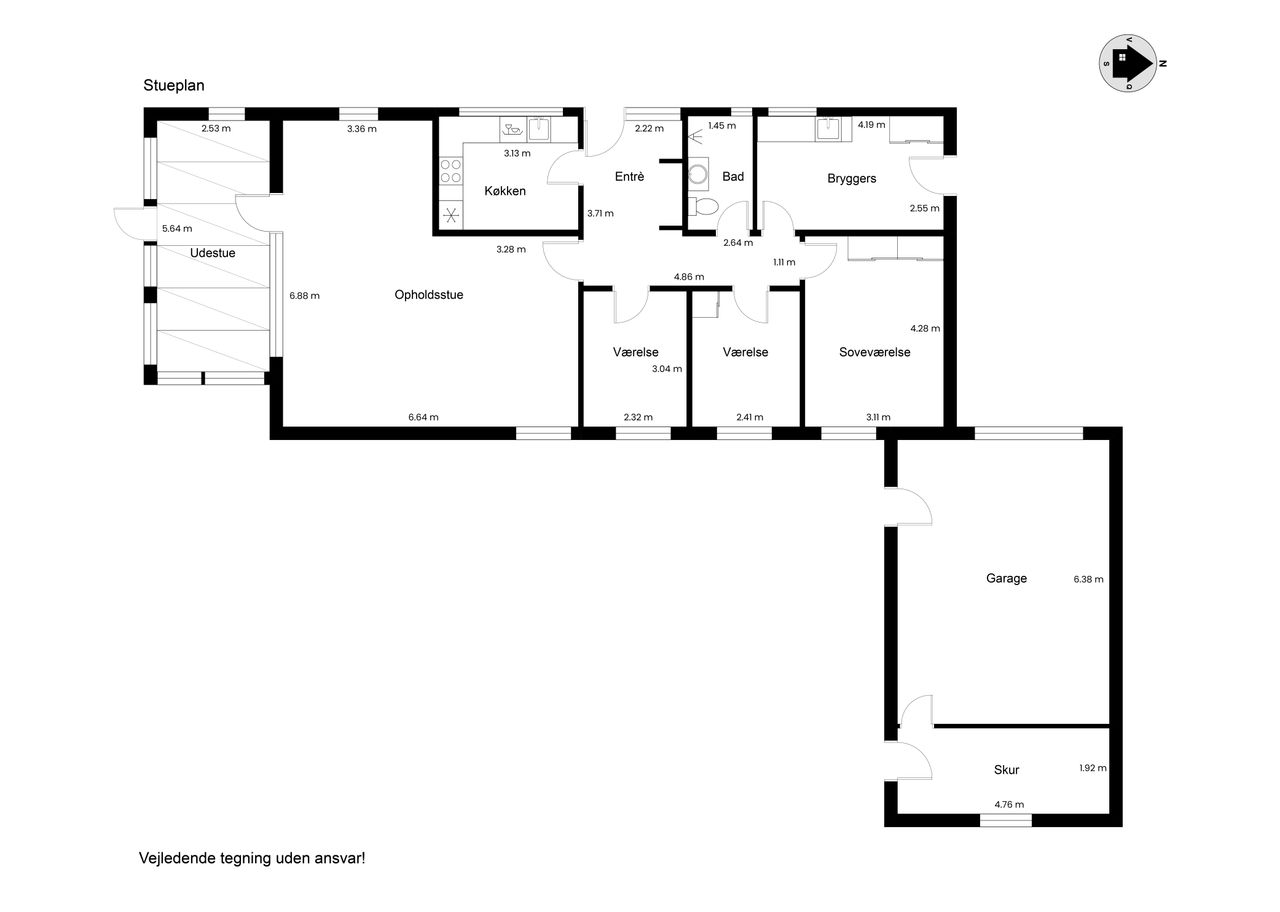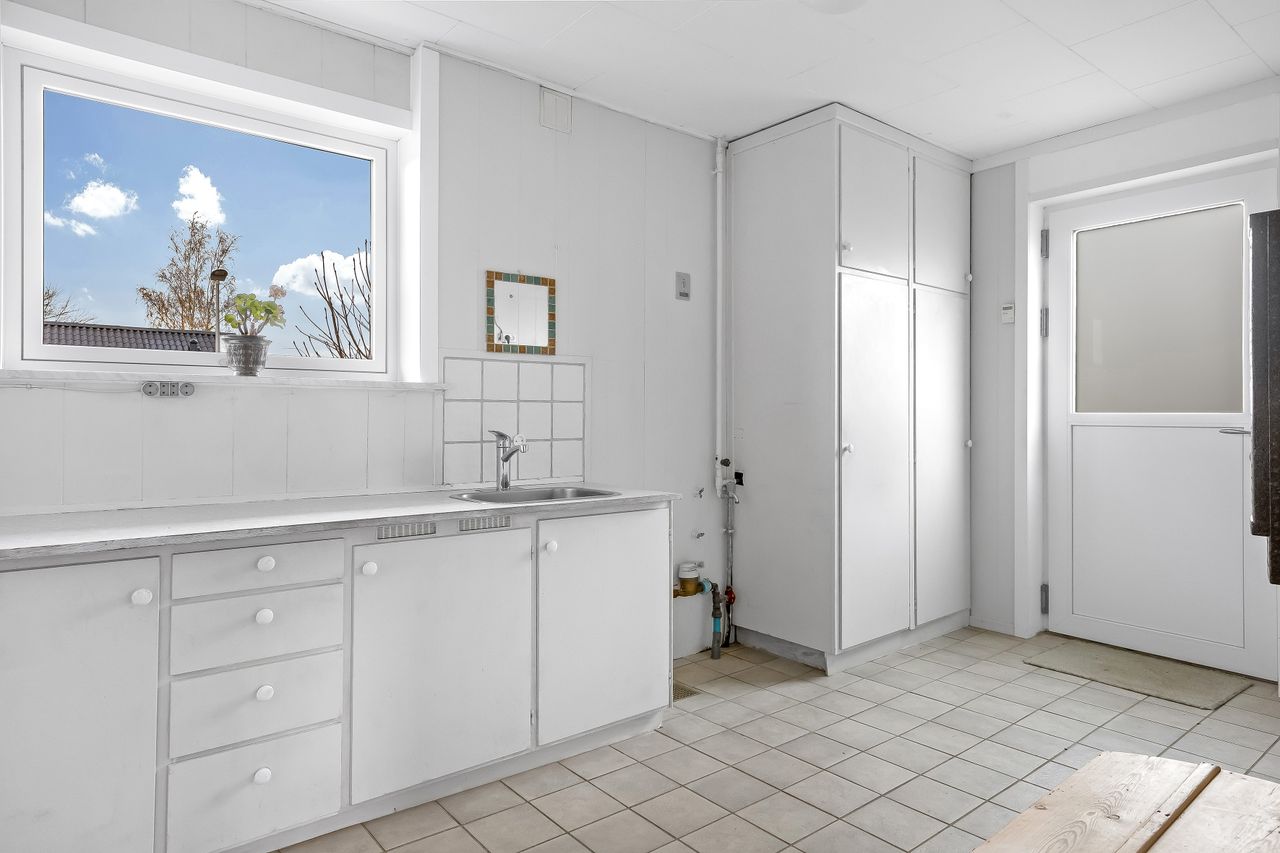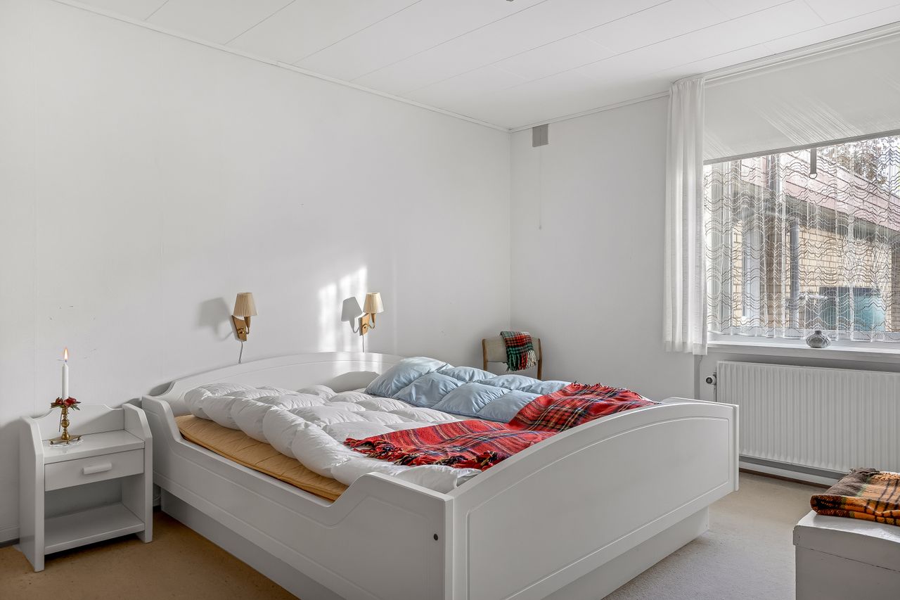 Indenfor byder villaen på en praktisk entre, hvorfra du har adgang til alle husets rum. Baggangen fungerer også som bryggers, hvilket gør det nemt at håndtere hverdagens gøremål. Soveværelset er rummeligt og indbydende, mens de to lyse børneværelser giver masser af plads til familiens yngste medlemmer eller kan bruges som kontor eller hobbyrum.