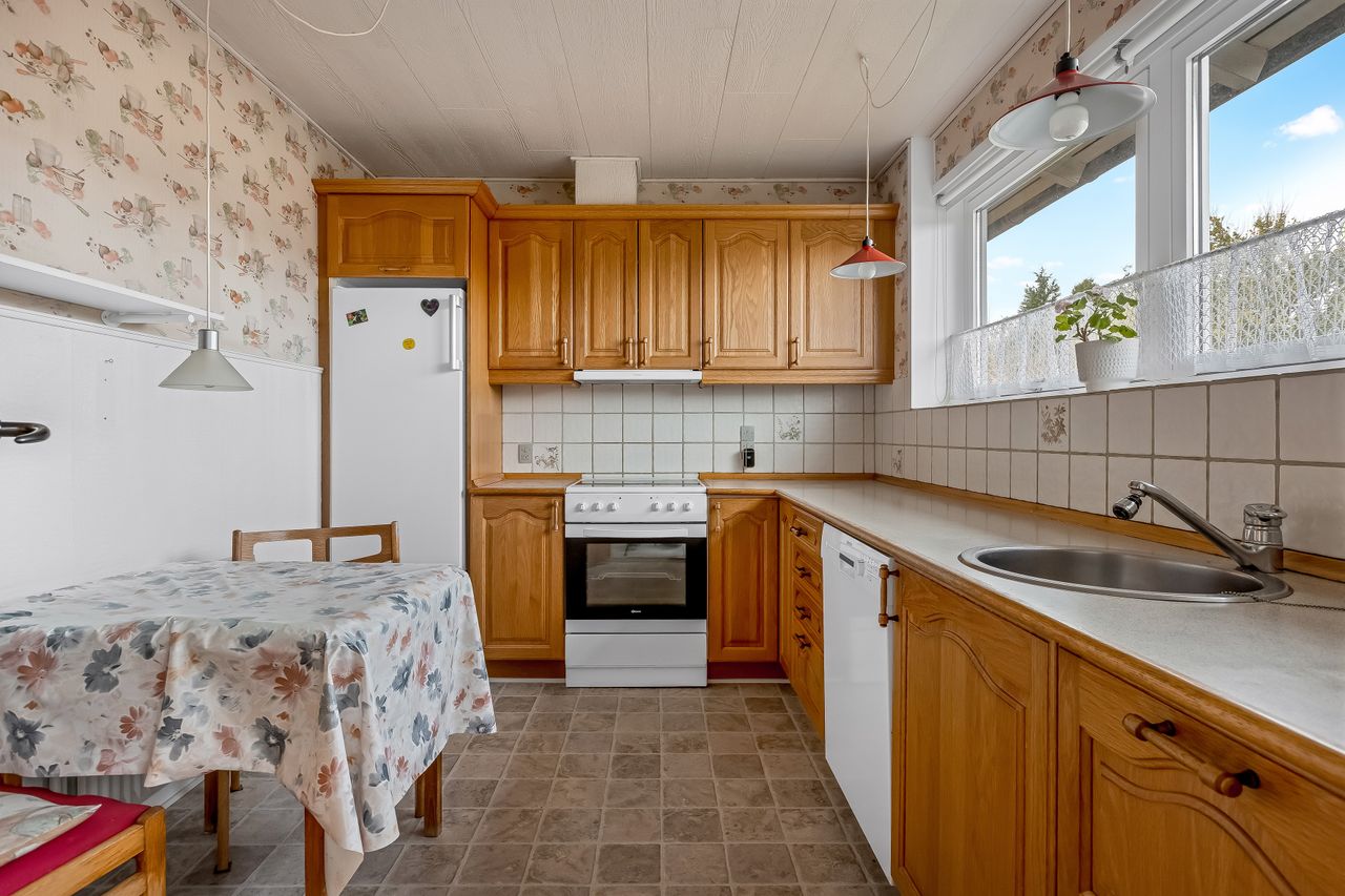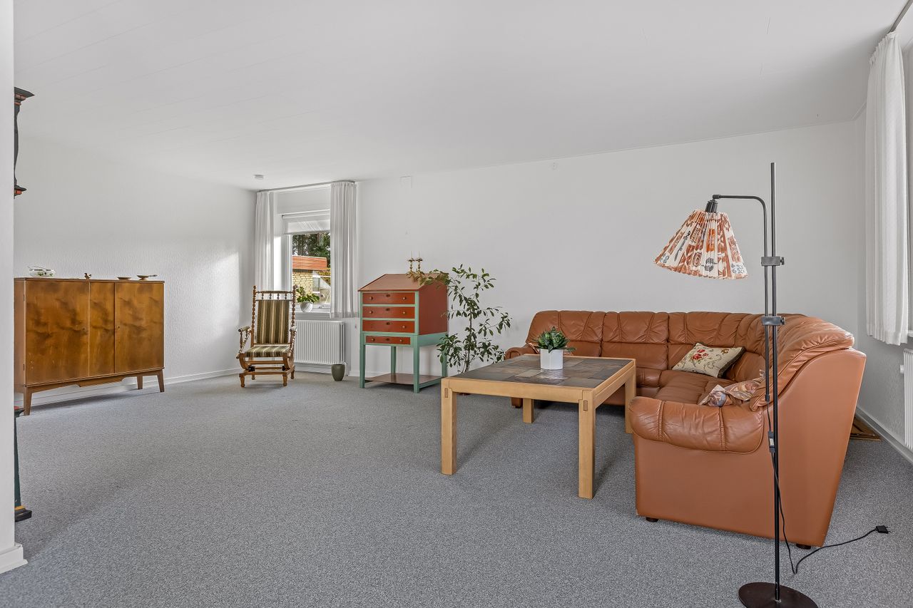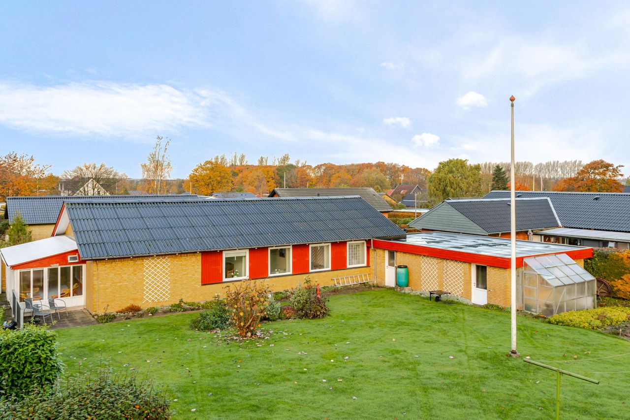 Vi byder velkommen til denne dejlige villa fra 1972, der har gennemgået en løbende modernisering og nu fremstår som et dejligt hjem. Med et boligareal på 118 kvadratmeter tilbyder denne ejendom både komfort og funktionalitet i rolige omgivelser. Her er der kræset for detaljerne med opdateringer såsom køkken, vinduer og døre samt indlagt fjernvarme, hvilket sikrer et energivenligt hjem.