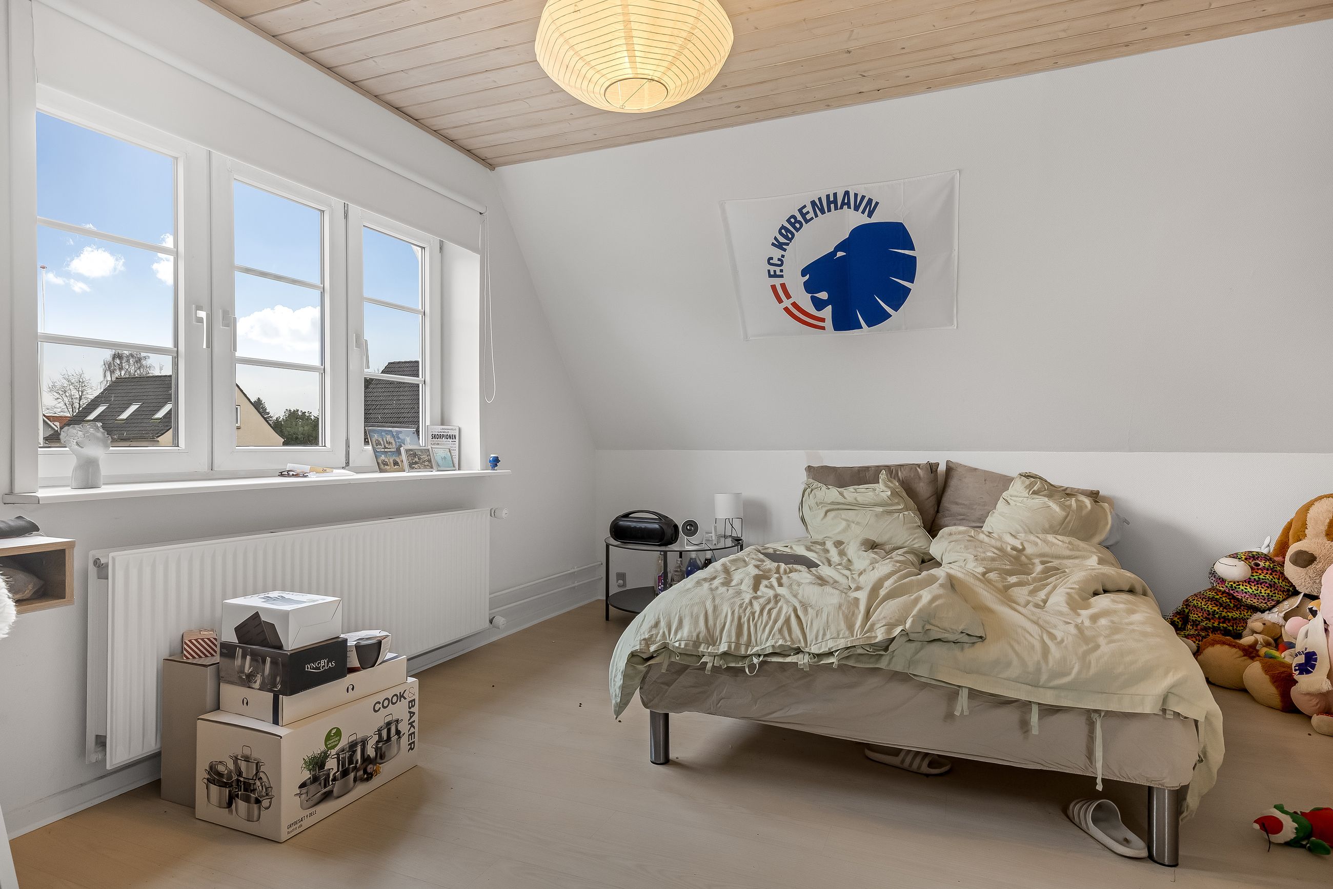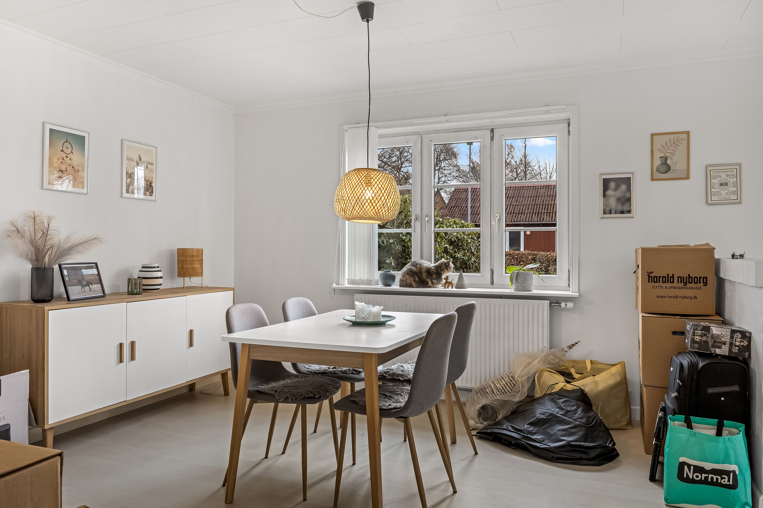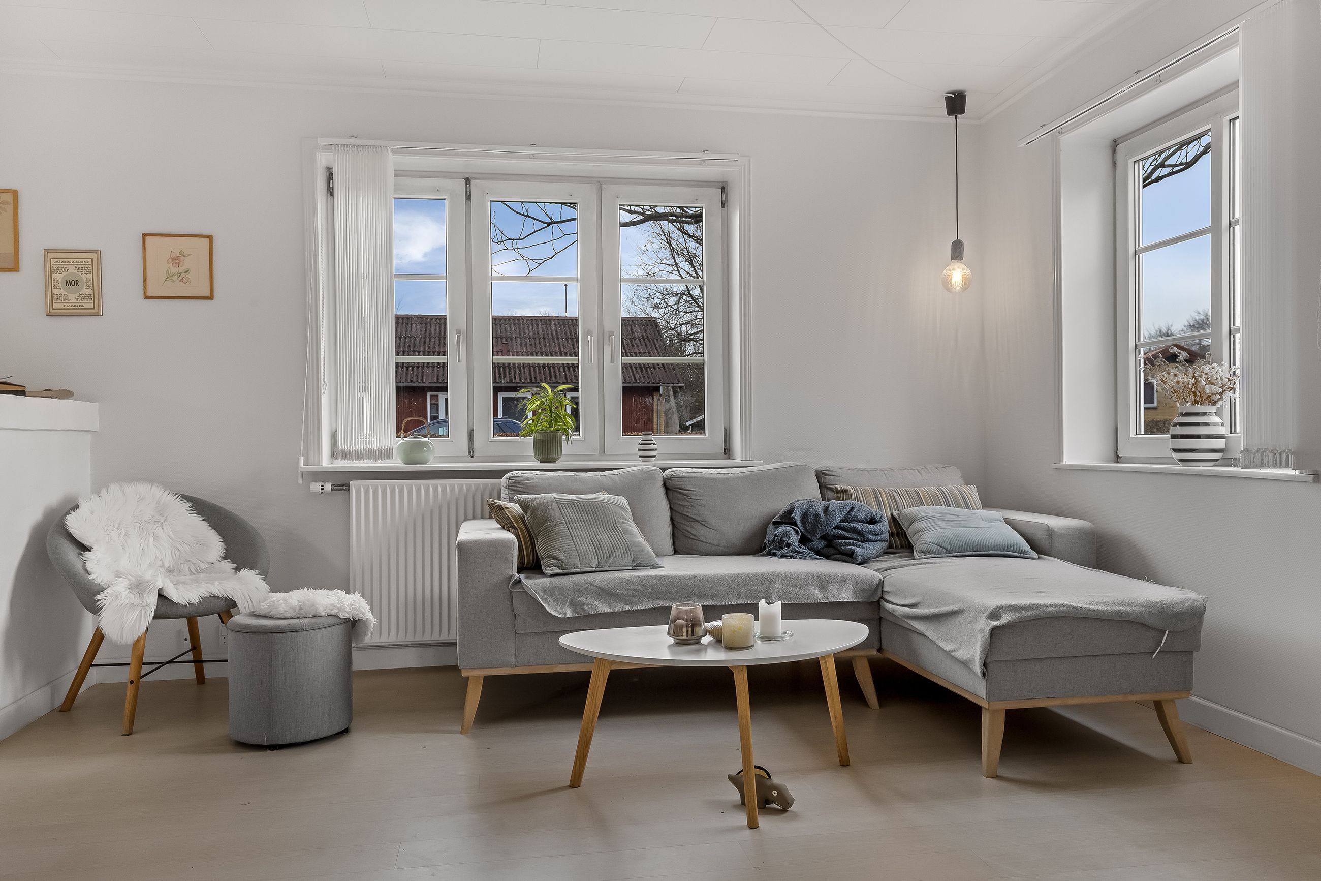 Opholdsstuen fremstår som boligens oase af ro, hvor naturligt lys strømmer ind gennem vinduerne og skaber en varm atmosfære. Her kan du nyde hyggelige stunder med familie eller venner eller blot slappe af med en god bog.