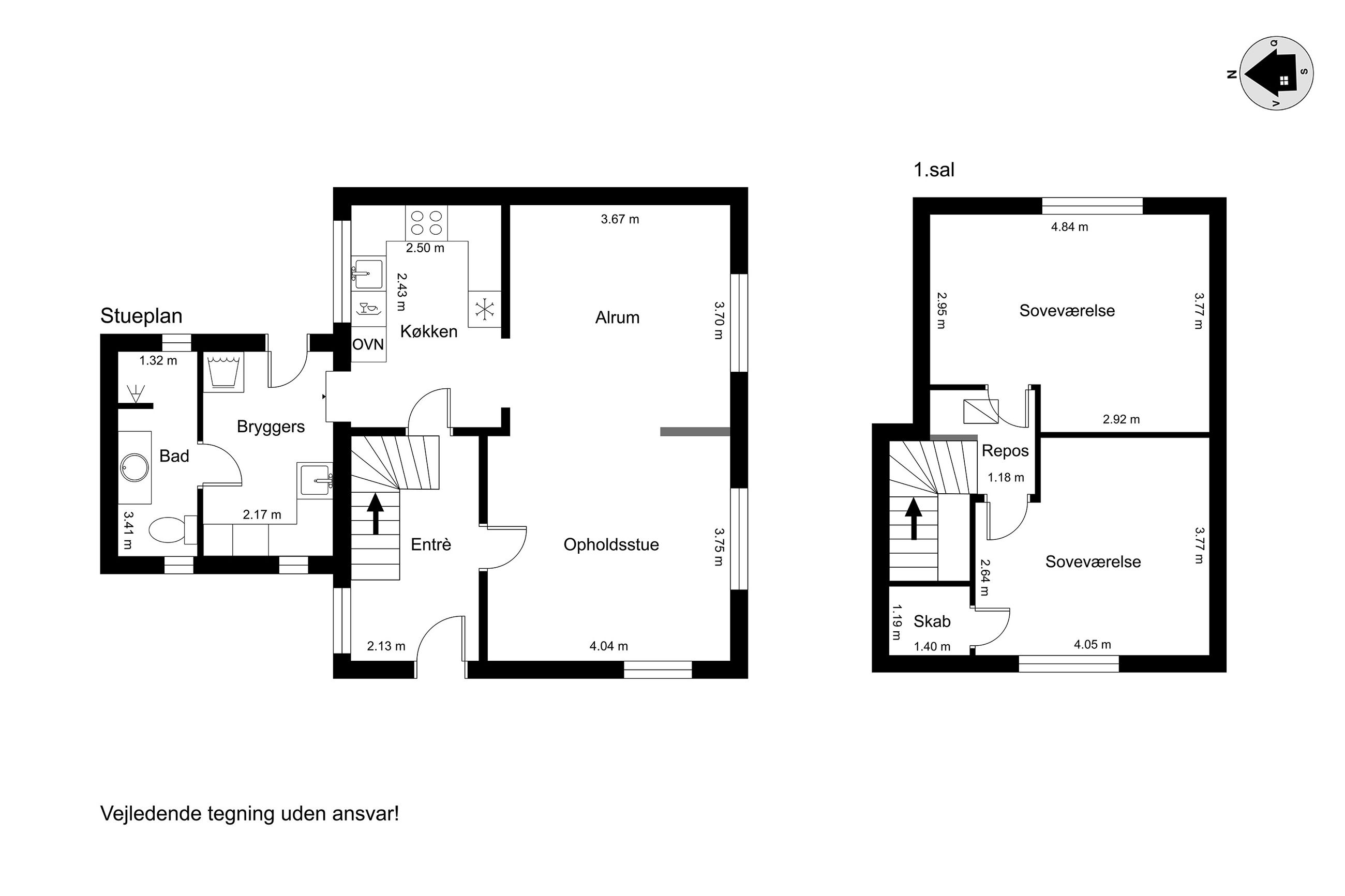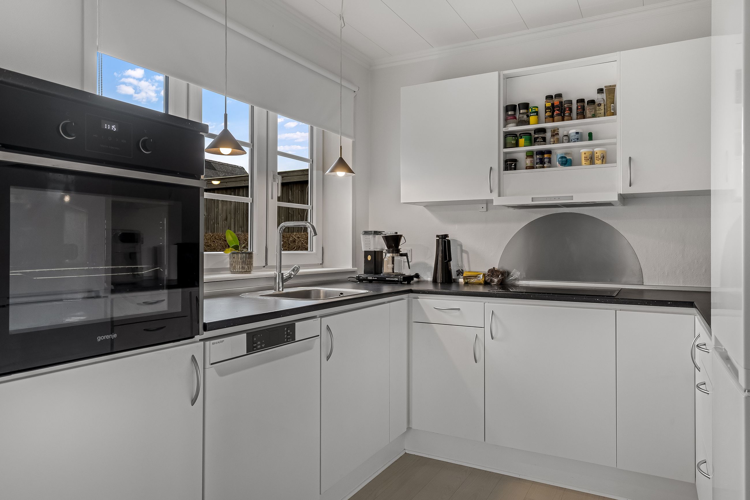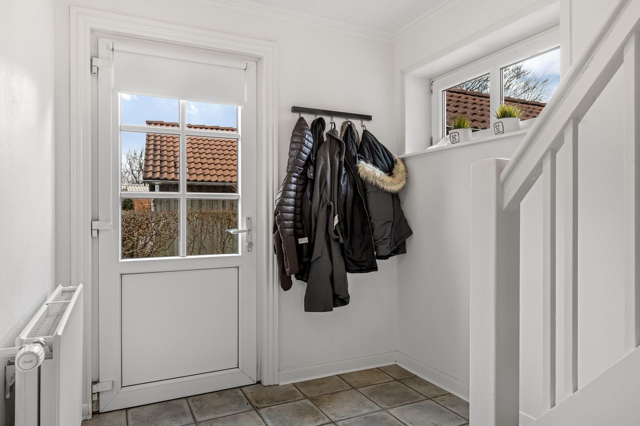 Indenfor byder villaen på en god forentre og en praktisk baggang/bryggers. Det lyse køkken er hjertet i hjemmet, hvor moderne design møder funktionalitet – perfekt til både hverdagsmadlavning og gæstfri sammenkomster. Badeværelset er ligeledes lyst og indbydende med sit elegante bademiljø og de to soveværelser tilbyder rigeligt med plads til afslapning og hvile efter en lang dag.
