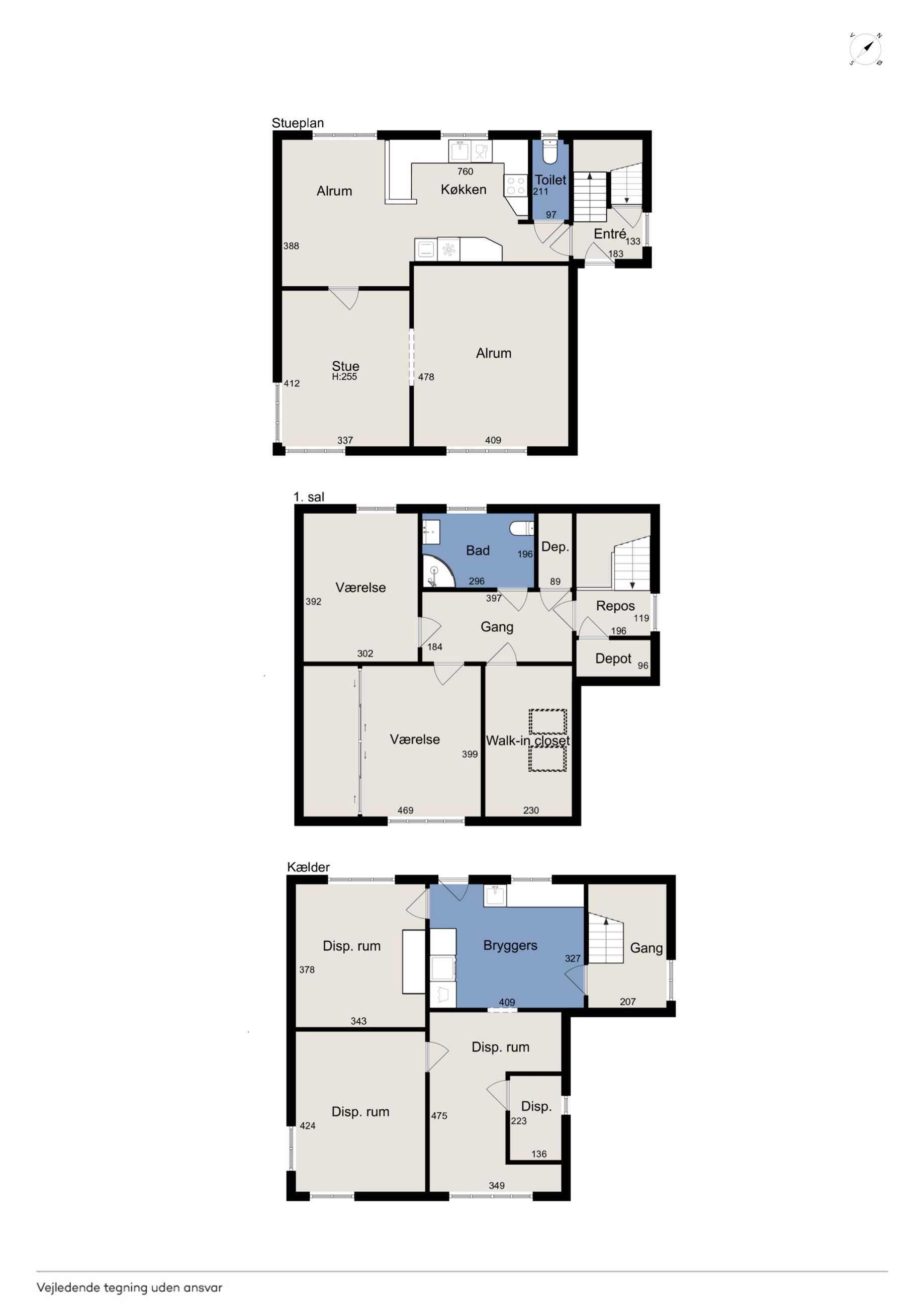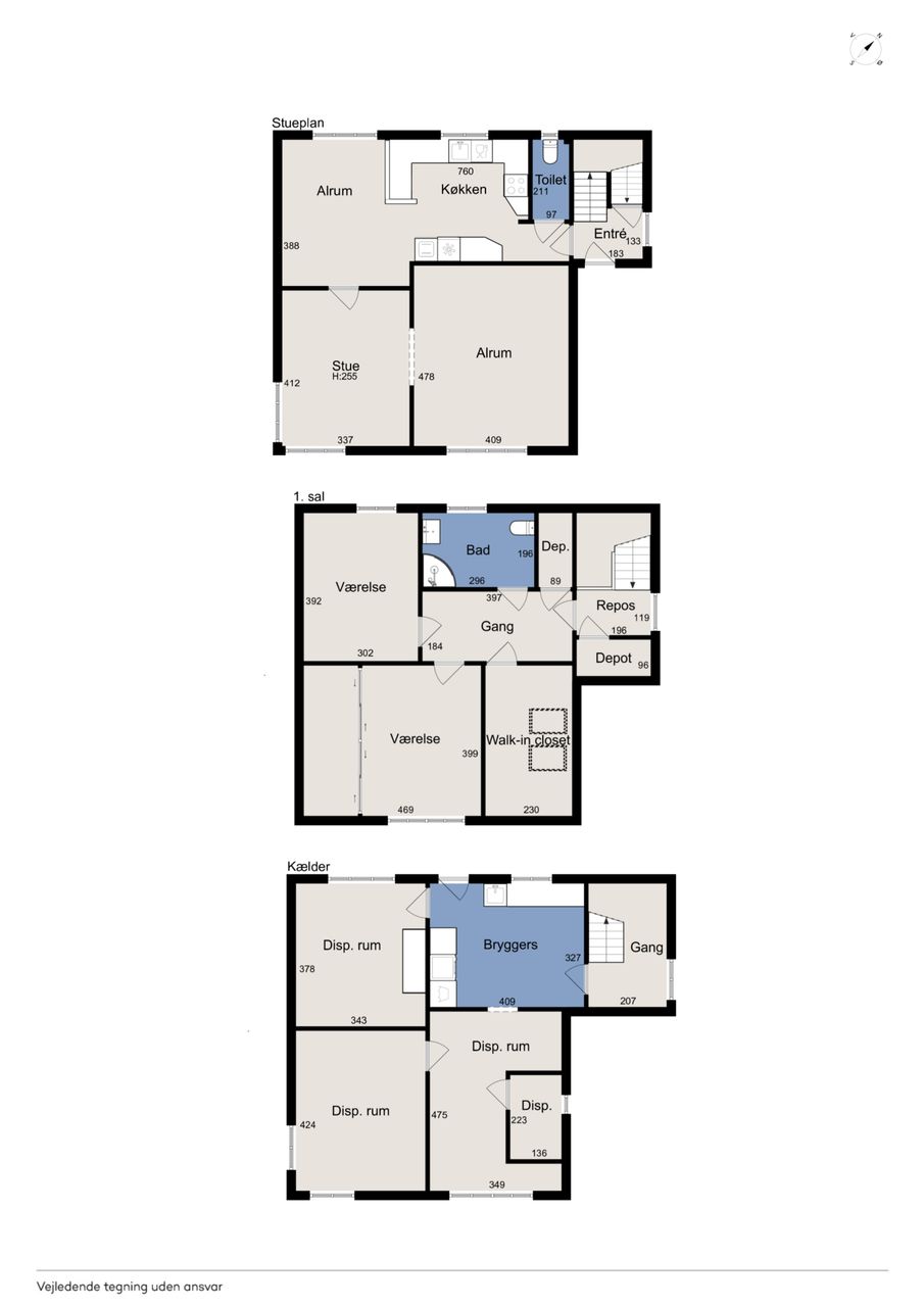 Førstesalen rummer boligens private afdeling med to gode værelser og et ekstra stort soveværelse. Et rummeligt badeværelse som fuldender etagen, og de to depotrum samt repos og gang giver masser af opbevaringsmuligheder.
