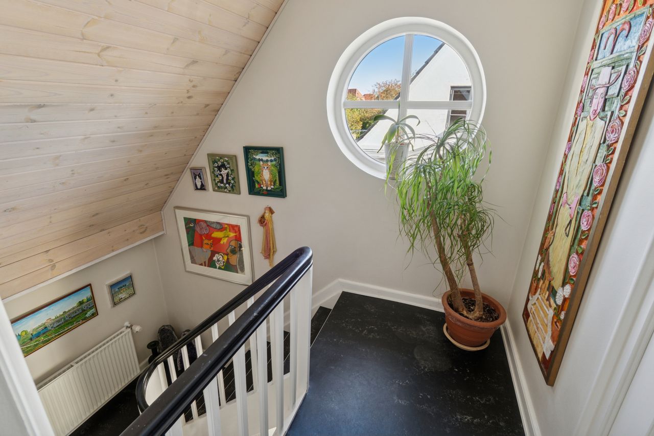 I stueplan træder I ind i en lys entré. Herfra åbner huset sig op i et skønt og lyst køkken, der ligger i åben forbindelse med et stort alrum – ideelt til både hverdag og gæstebesøg. I forlængelse heraf findes en dobbelt stue med god plads til afslapning og hygge. Det er et oplagt samlingspunkt for familien. Du finder desuden et gæstetoilet i stueetagen.