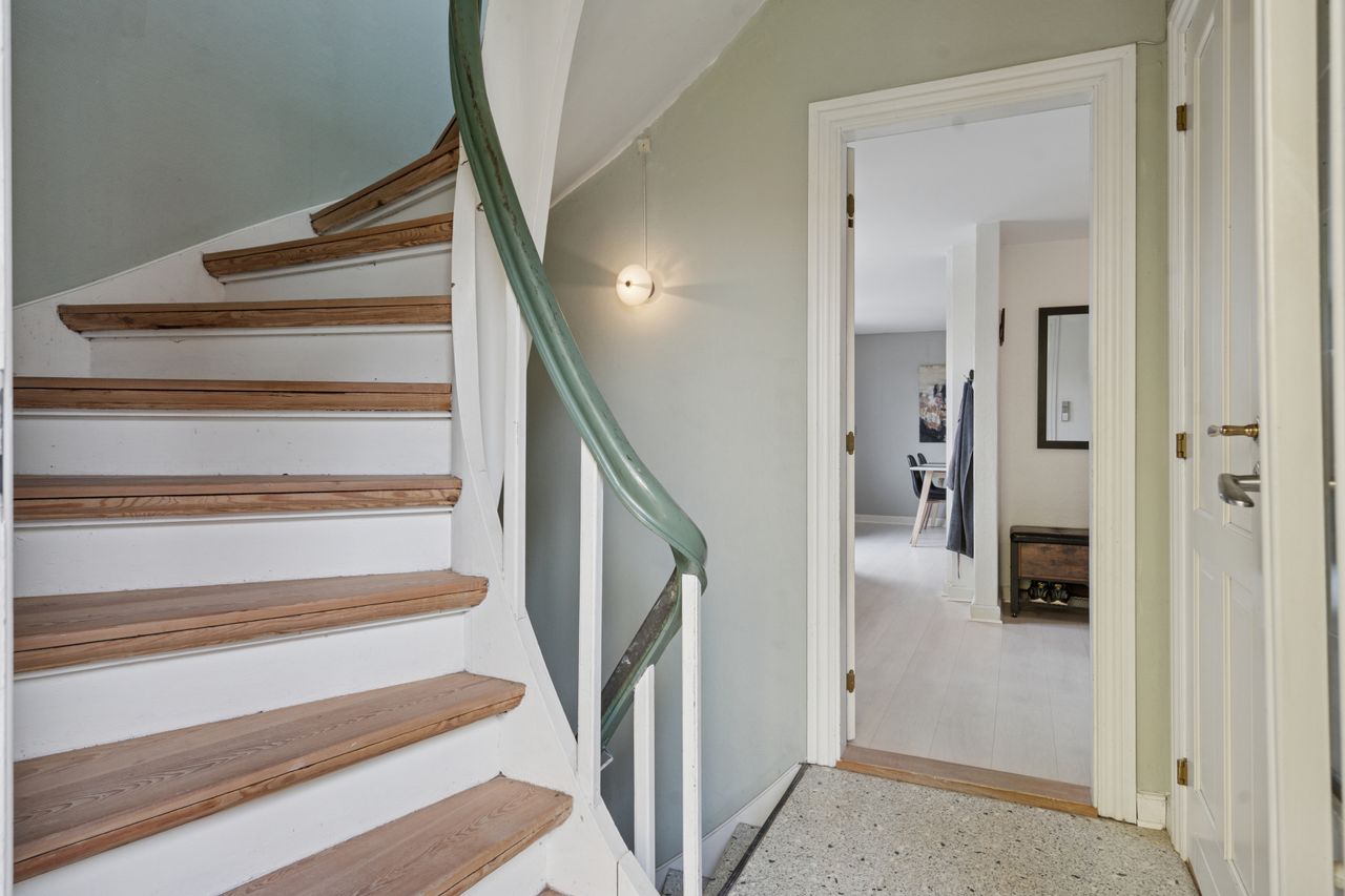 - Entre med trappe til kælder og 1. salen