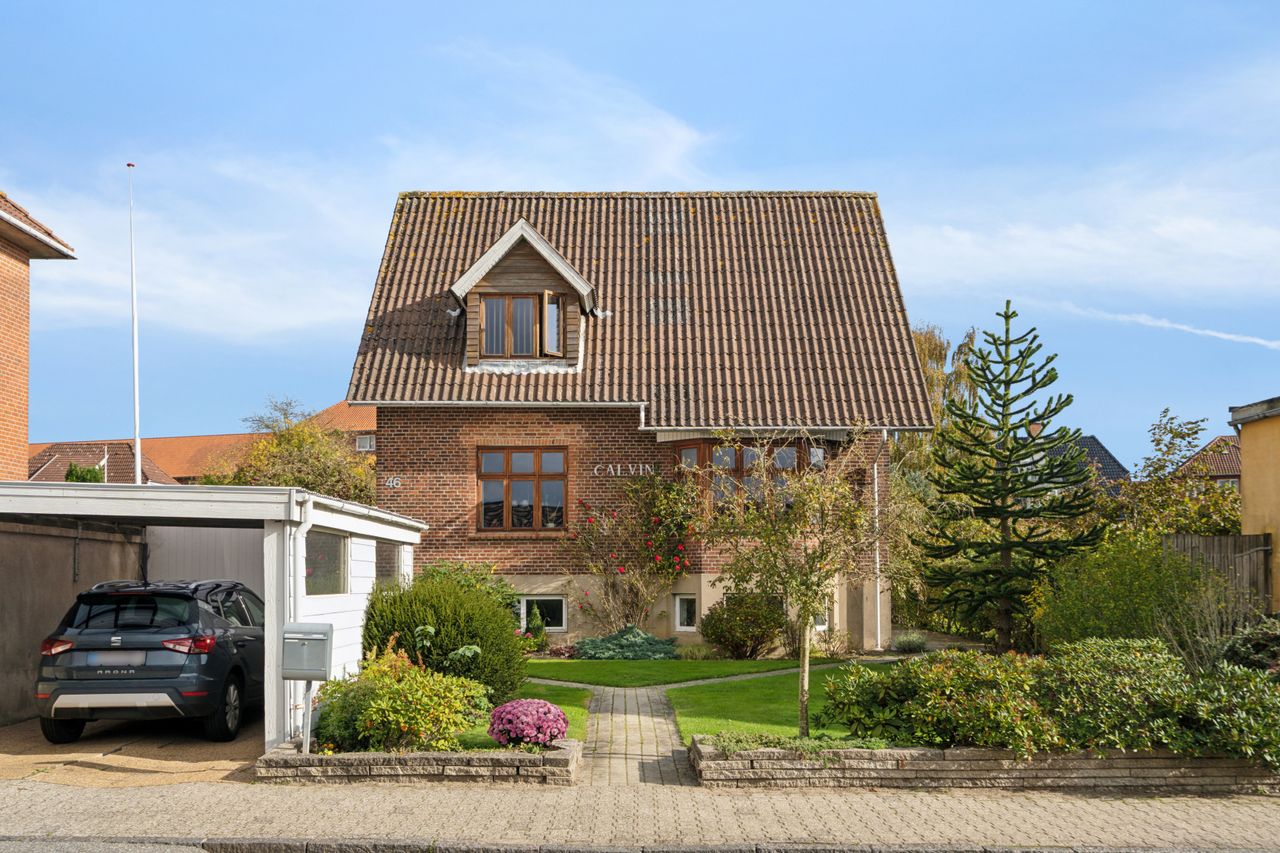 Nu udbydes til salg denne meget charmerende og velholdte bolig i 3 plan på hele 226 etagemeter på Calvinsvej 46. Ejendommen ligger i det meget attraktive og centrale område på Calvinsvej, hvorfra man har kort afstand til centrum, det skønne Voldanlæg, banegård, handlemuligheder, skoler, daginstitutioner samt Madsbyparken m.m. - Alt indenfor rækkevidde til hverdagens fornødenheder.