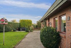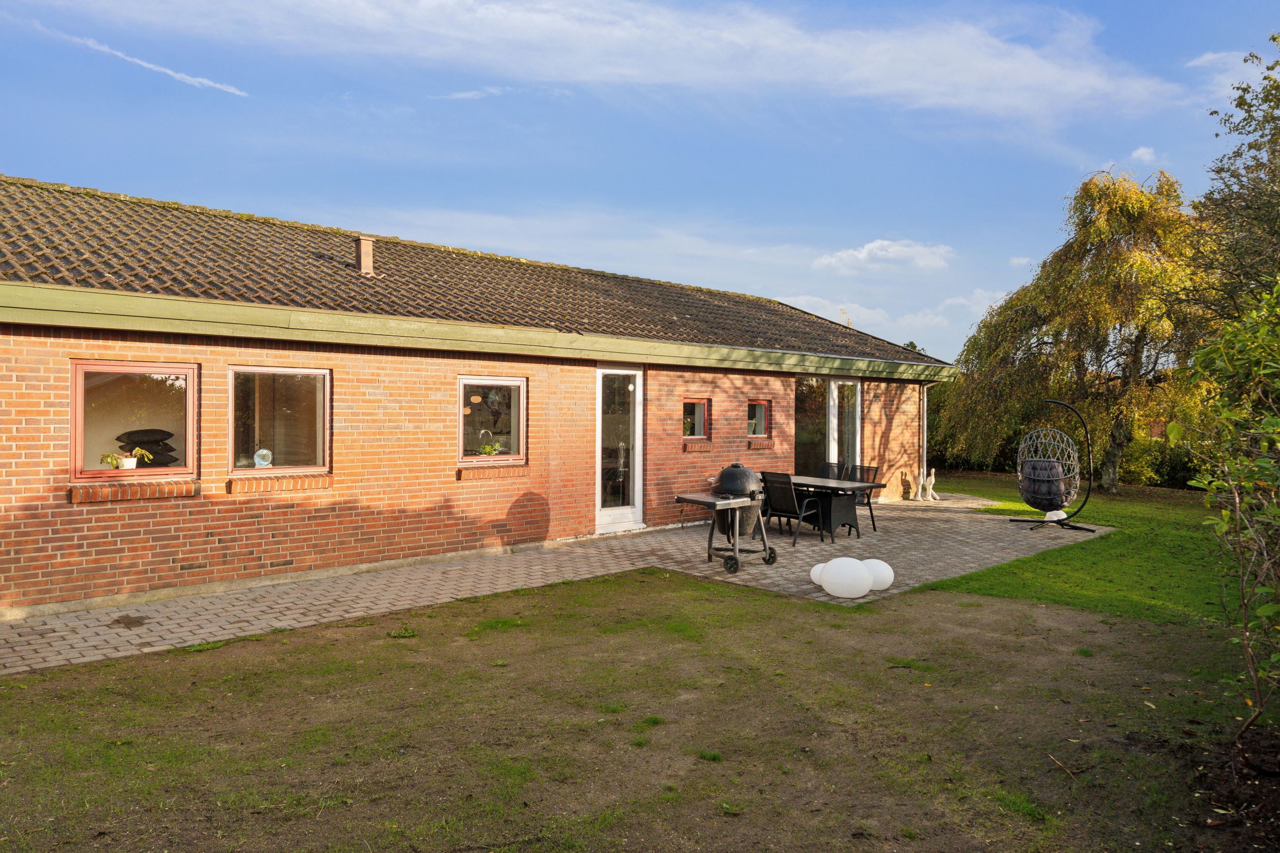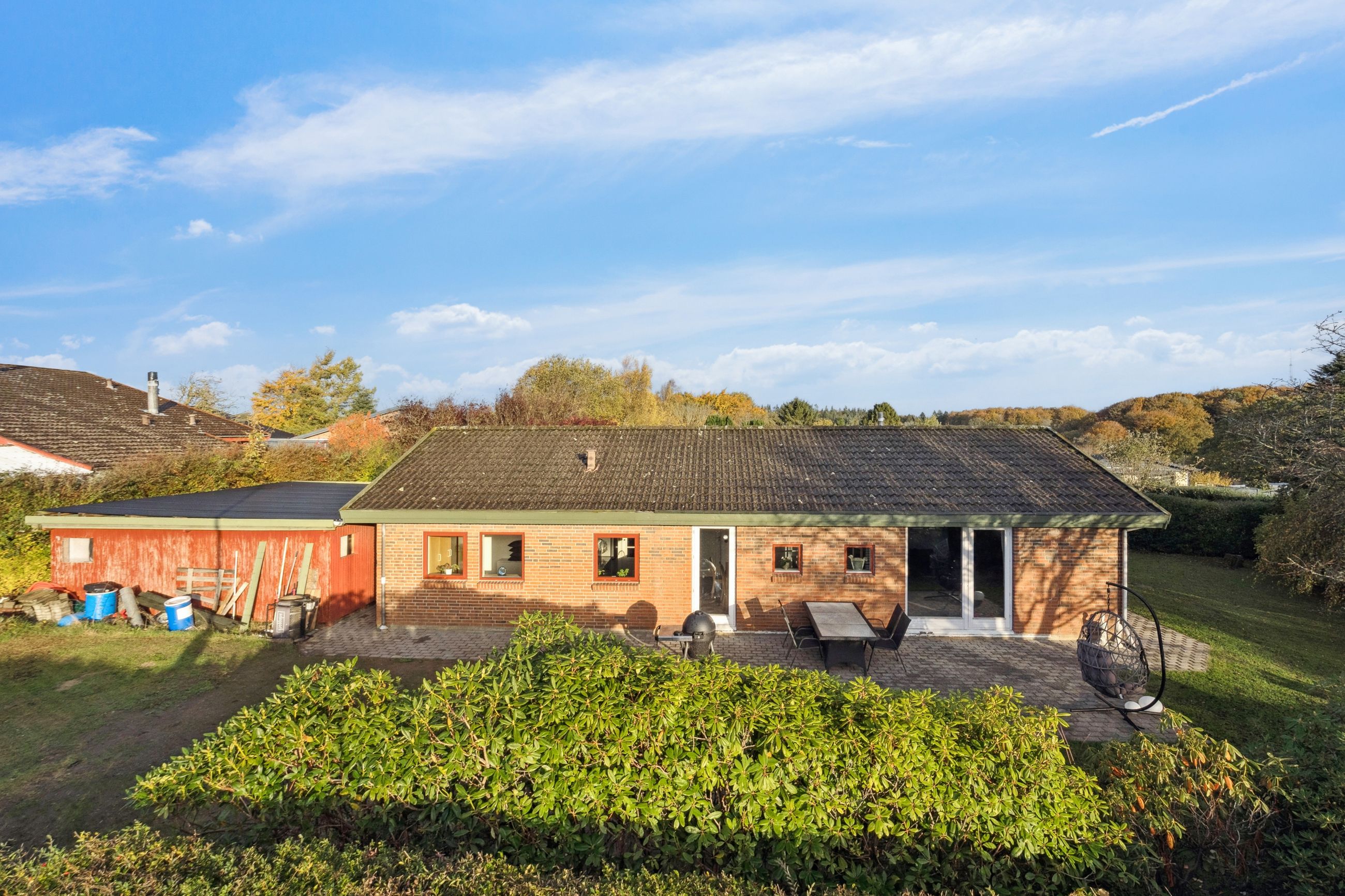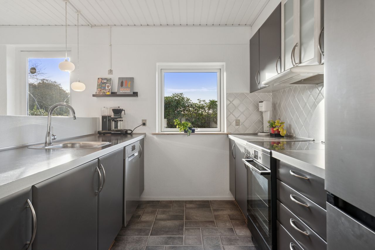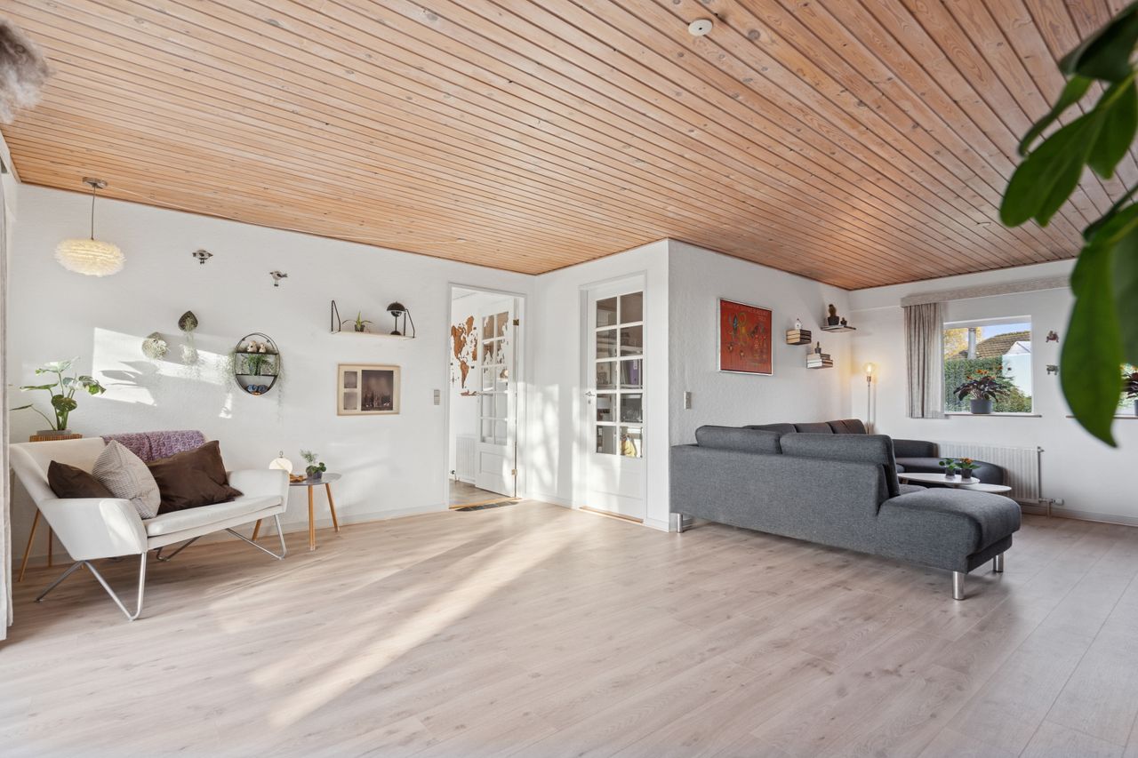 Her kan du bo helt centralt i Erritsø med kort afstand til Hannerup Skov, kun 10 minutters gang til strand og derfra videre hen til det hyggelige lystbådehavne-miljø, og fra boligen er der stisystemer til det meste. Der er gode handlemuligheder på Erritsø Butikstorv, mange aktiviteter i Erritsø Idrætscenter, hvor der bl.a. er svømmehal og padelbaner - og ikke mindst kort afstand til de to skoler i området samt daginstitutioner. På en lukket villavej, hvor der også herfra er adgang til stisystem rundt i området, er denne etplansvilla netop udbudt til salg. Boligen er et velindrettet Eurodan-hus med bl.a. børneafdeling, bestående af to værelser - et badeværelse med gulvvarme, klassisk køkkenalrum og en god vinkelstue med mulighed for at etablere ekstra værelse. Endvidere er der soveværelse med skabsvæg, praktisk bryggers samt en entré, som i dag bruges til kontor. Derudover er der et stort carport-anlæg med tilhørende udhus, en dejlig nem anlagt have med flere gode terrasser.