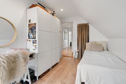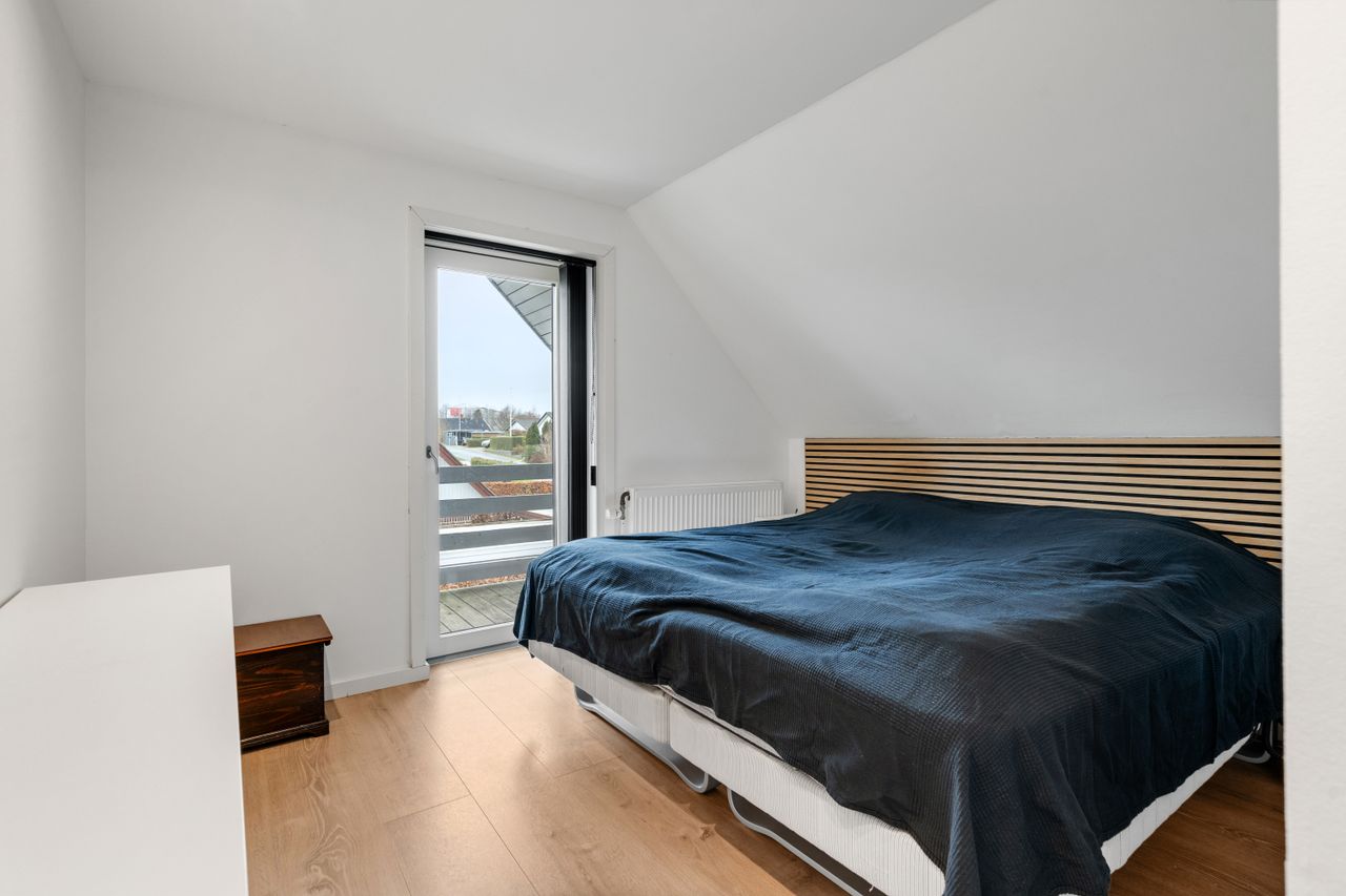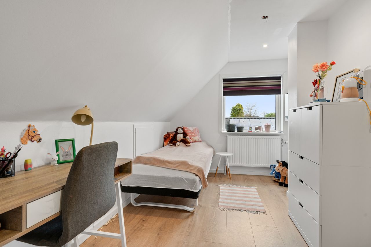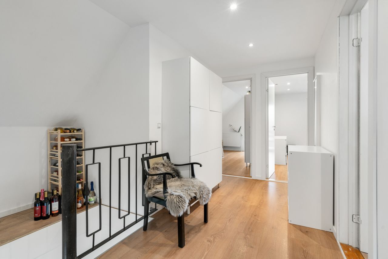 På førstesalen finder du boligens med soveværelse, to ekstra værelser. Alle værelser har walk-in-closet. Herudover et repos samt badeværelse – en ideel indretning for familien, der ønsker separate afdelinger.
