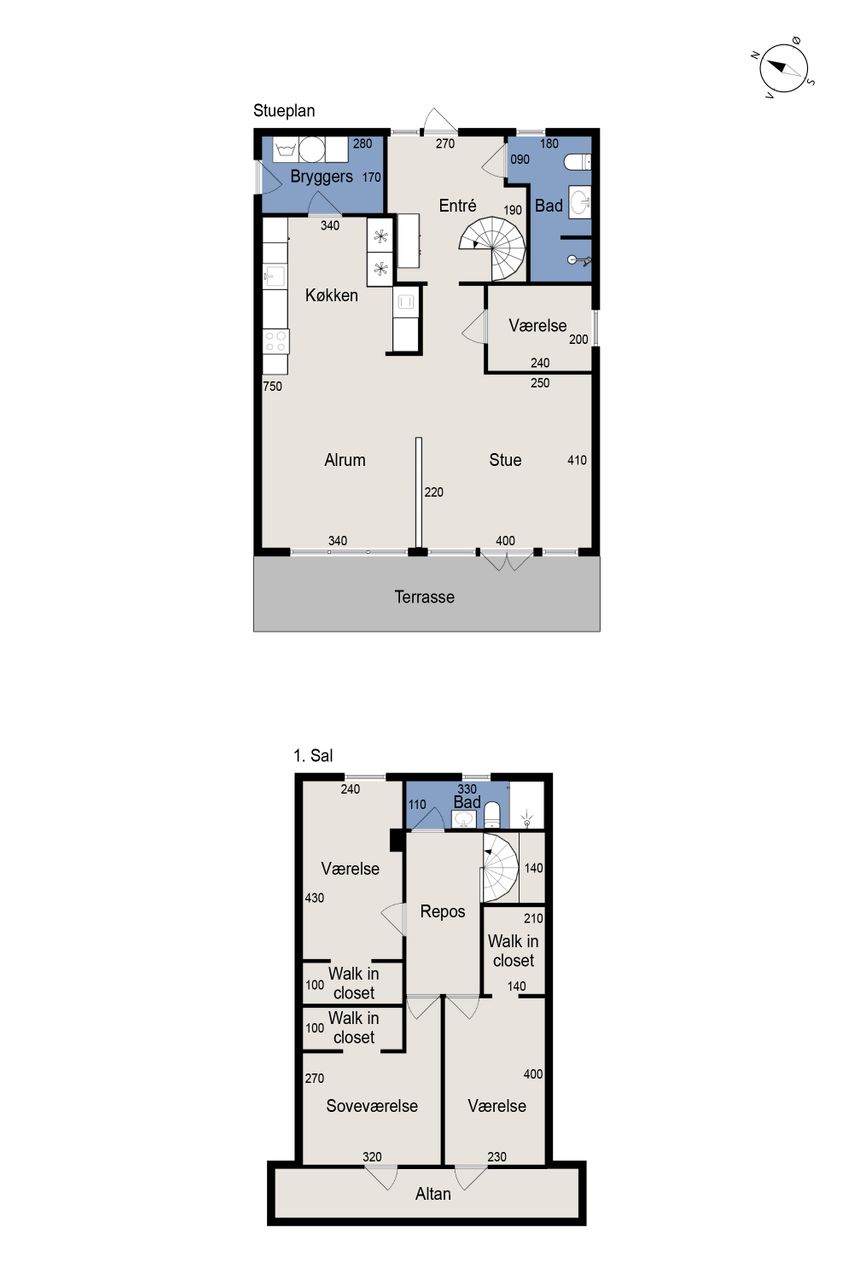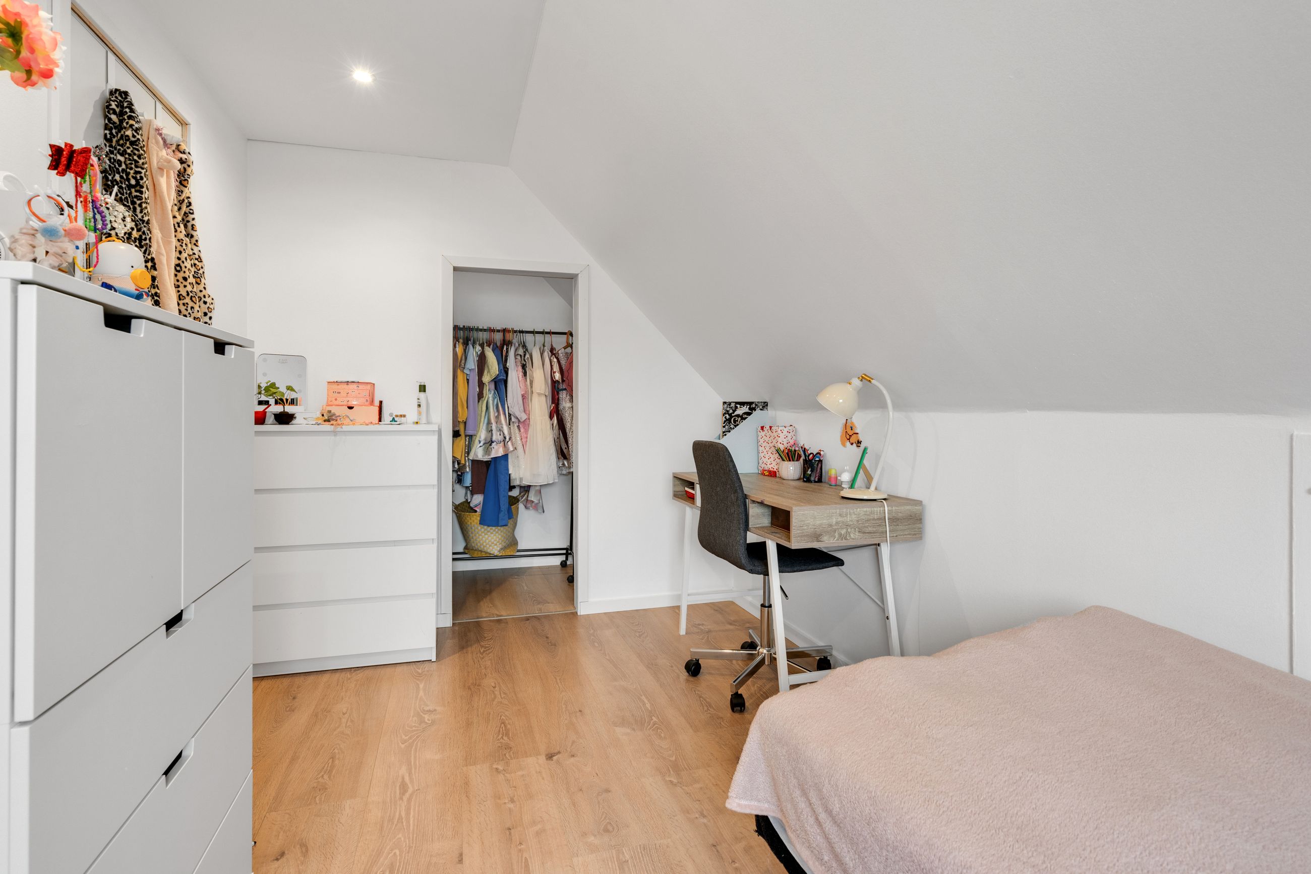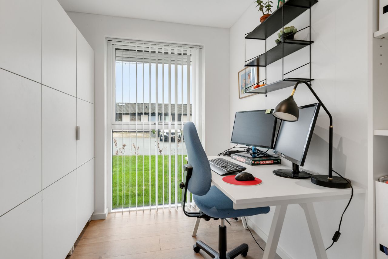 På førstesalen finder du boligens med soveværelse, to ekstra værelser. Alle værelser har walk-in-closet. Herudover et repos samt badeværelse – en ideel indretning for familien, der ønsker separate afdelinger.