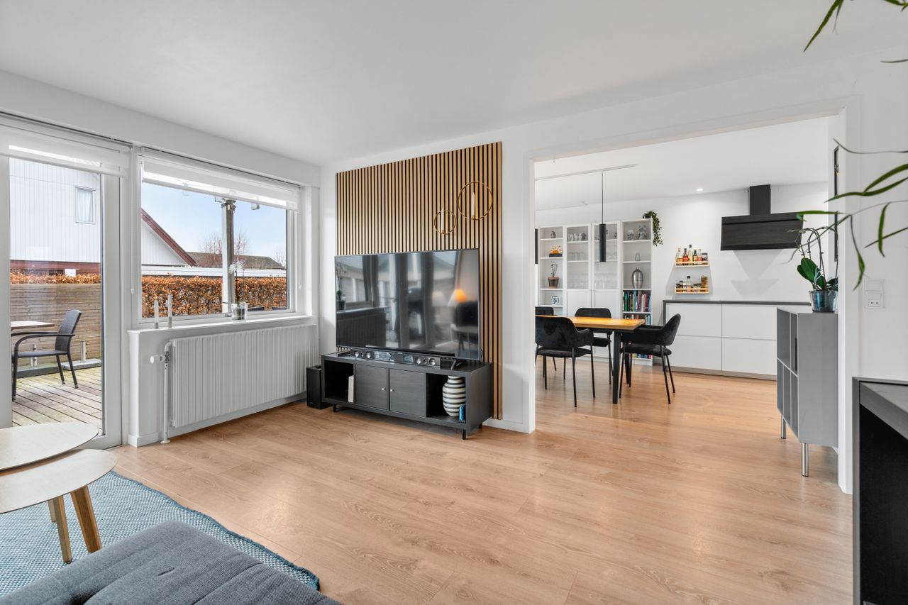 På et roligt og lukket vænge finder du denne velholdte og løbende renoveret villa på 140 m2 med fire værelser. Her får du en bolig, hvor de store og bekostelige renoveringer allerede er udført, og hvor både planløsning og materialevalg matcher nutidens krav til komfort og funktionalitet. Som en ekstra bonus bliver husets tag malet, og sælger afholder udgiften hertil, så boligen fremstår endnu mere indbydende.