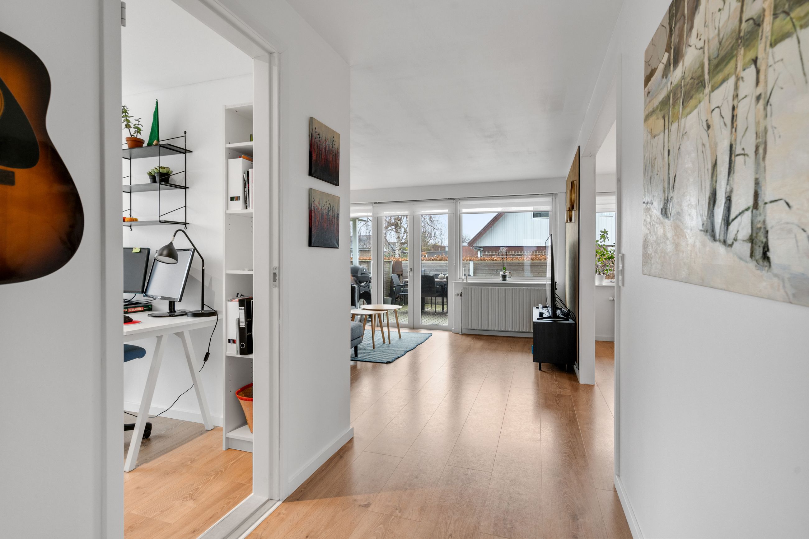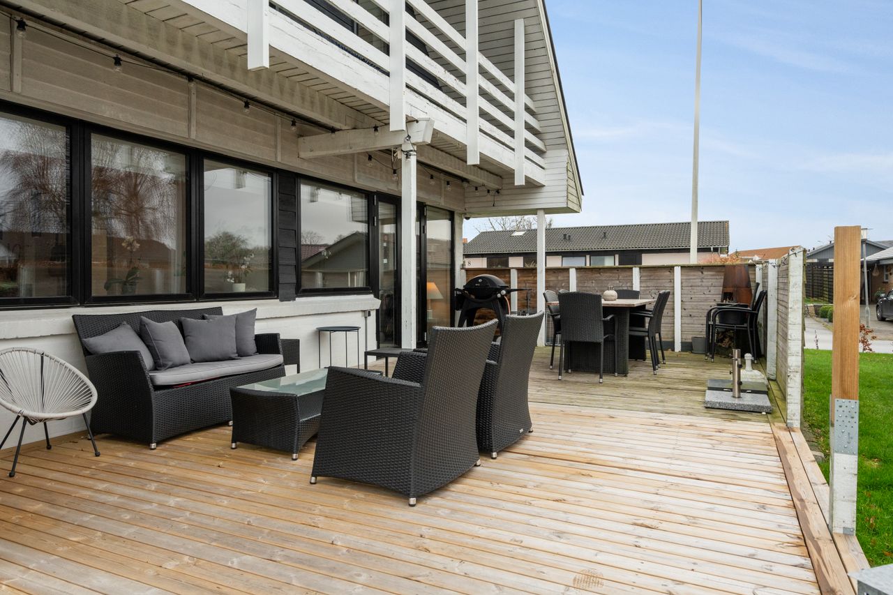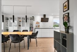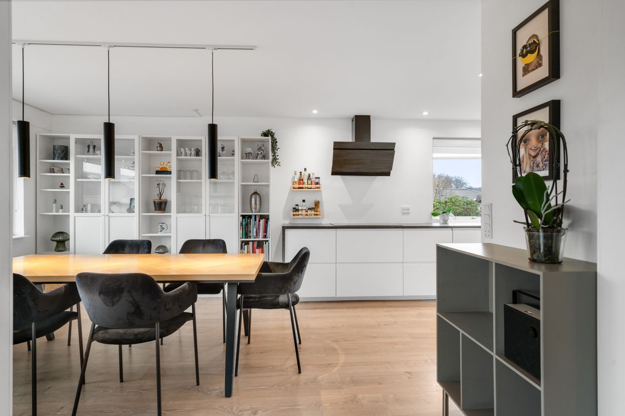 Boligen byder på en gennemtænkt og funktionel planløsning. Husets naturlige samlingspunkt er det åbne og lyse køkken/alrum, som ligger i direkte forbindelse med stuen. Her er god plads til både hverdagsliv og gæster, og de store vinduespartier sikrer et dejligt lysindfald.