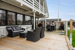 Stueplan rummer desuden entré, bryggers, værelse, badeværelse samt stue med udgang til terrasse og have.
