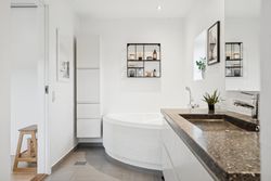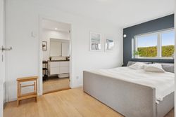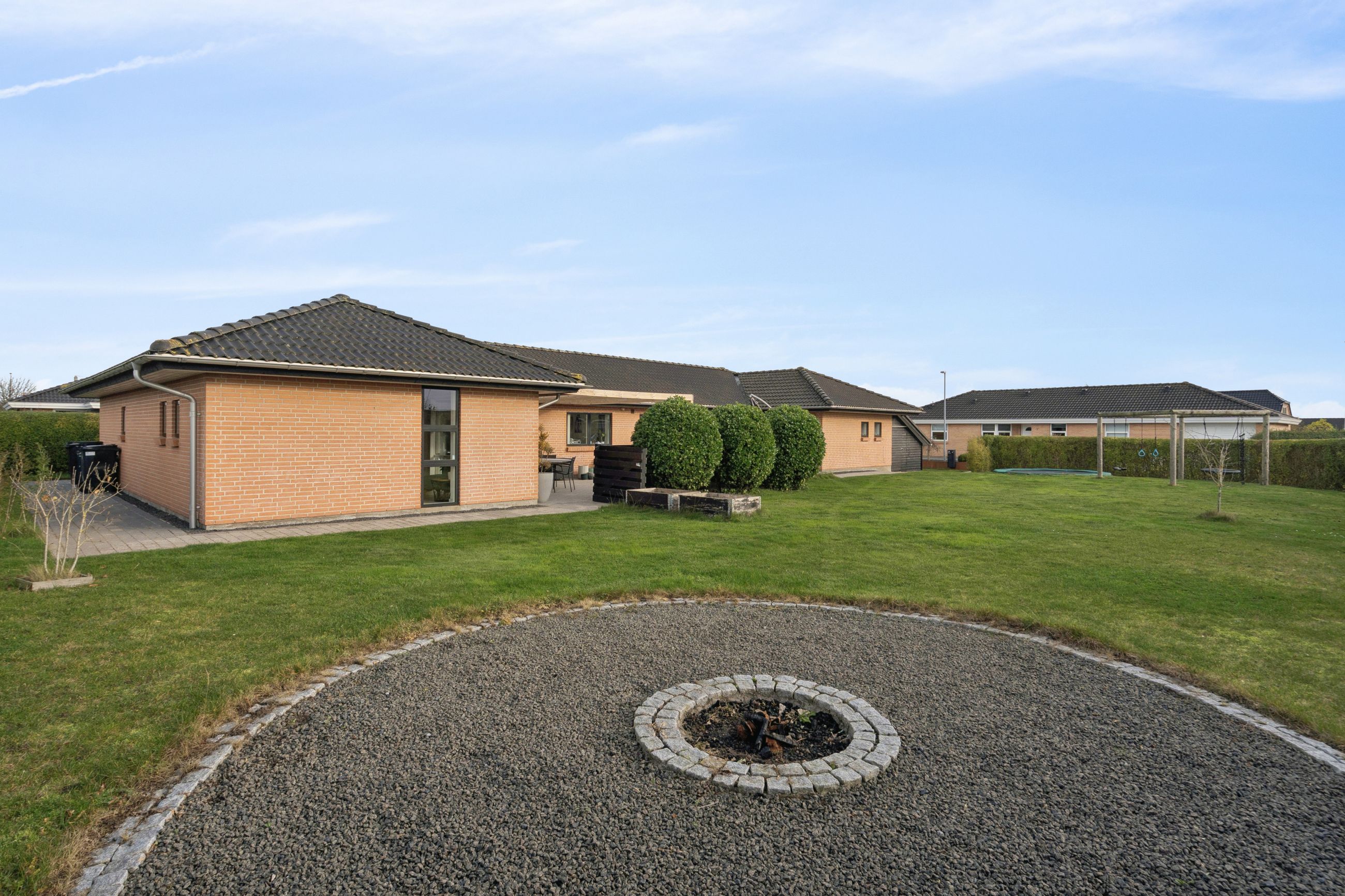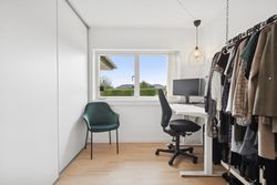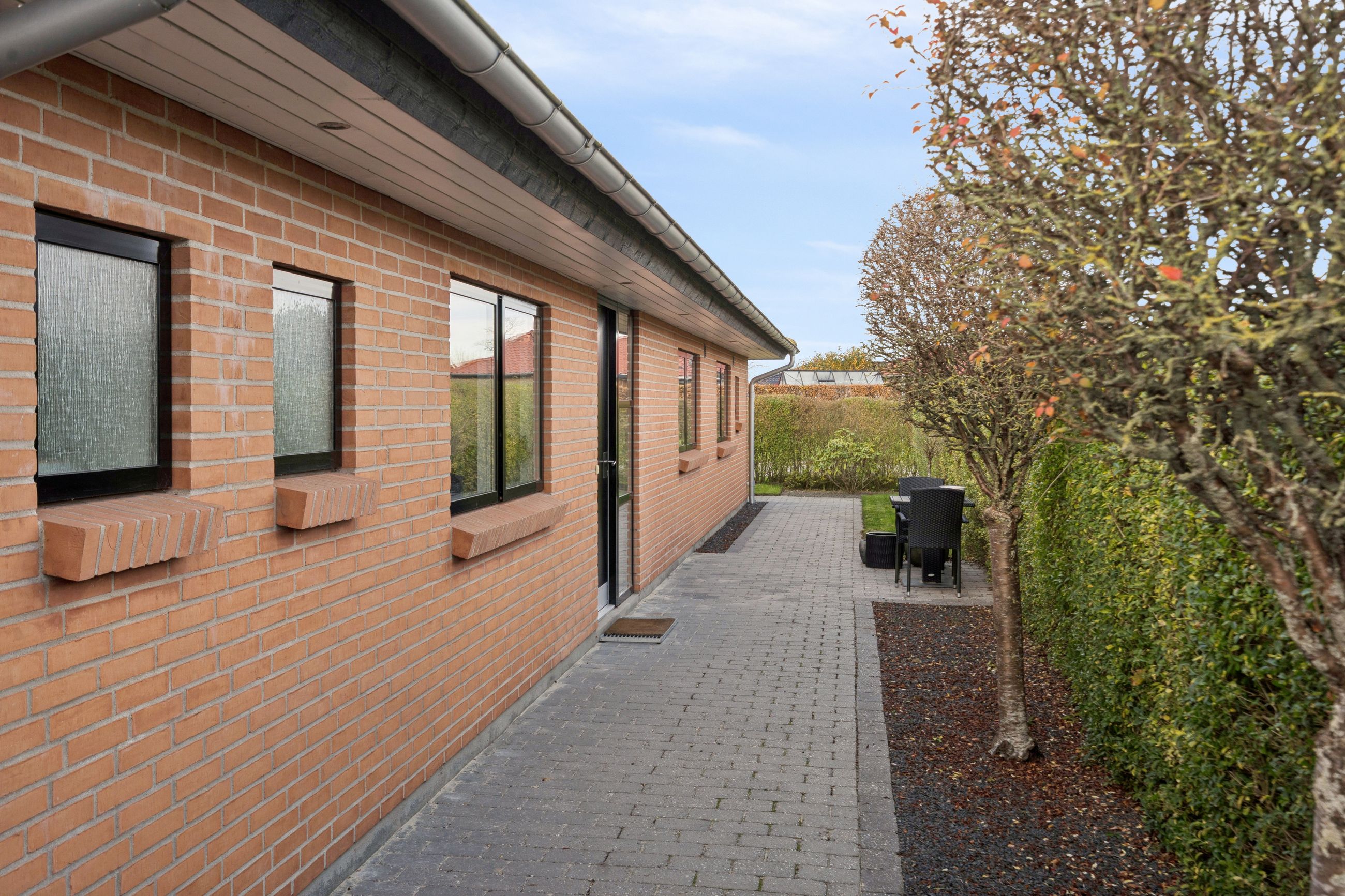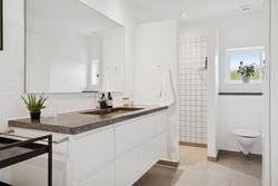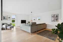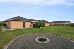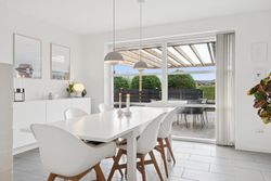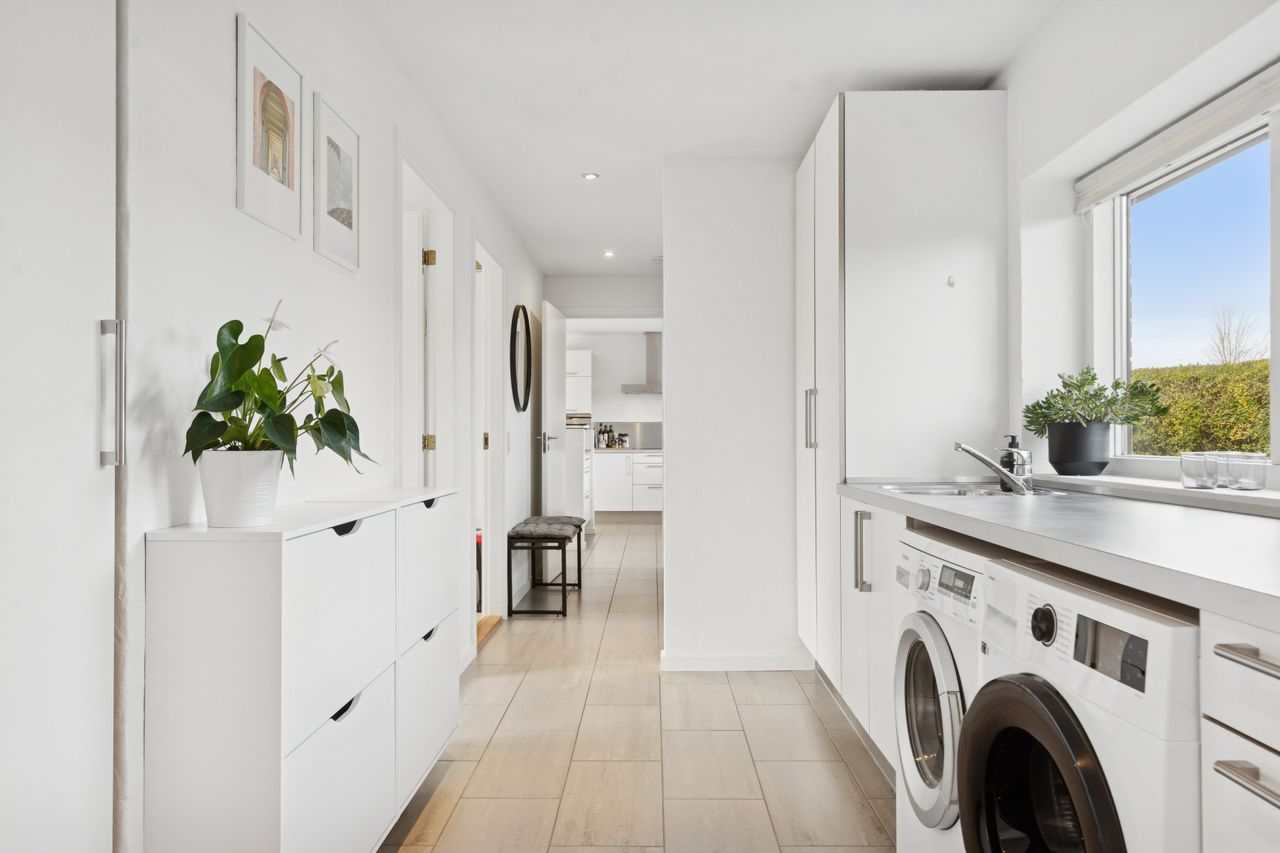 Det er et hus med mange kvaliteter, der venter de nye ejere af denne flotte og velholdte bolig beliggende på lukket vænge i en nyere udstykning i Vestbyen af Fredericia. Bliver det jer, kan I se frem til en villa opført i 2007 med et samlet bebygget areal på hele 207 m2, der ikke bare fremstår indflytningsklar med flot finish og god plads, men som prikken over iét har villaen adresse i et attraktivt kvarter, hvor børnene får de bedste rammer om opvæksten. Der er tale om et rigtigt børnevenligt område, gode fælles arealer og endvidere ligger man tæt på infrastruktur, indkøb, skoler, daginstitution, golfbanen samt ca. 6 minutters kørsel til Fredericia Centrum. Villaen fremstår logisk indrettet, hvilket giver en god sammenhæng imellem opholdsrum og værelser og har med sine 4 værelser og 2 badeværelser en opdeling af børneafdeling, centrale opholdsrum og forældreafdeling. Der kan yderligere nævnes, at der er gulvvarme i hele huset. Villaen indeholder: Stor entre i tilknytning til bryggerset med vaskefaciliteter og håndvask samt flere skabe til opmagasinering. I forlængelse af bryggerset ligger det ene af to badeværelser i tilknytning til børneafdelingen med sine 3 værelser, hvoraf det ene værelse i dag anvendes til kontor. Centralt placeret køkken/alrum med udgang til sydvendt terrasse, med plads til hele familien. Køkkenet fremstår pænt og velholdt og sammen med alrummet udgør det hjerterummet i huset. Soveværelset støder op til alrummet og her får man sit eget badeværelse med både bruseniche og karbad. Alrummet ligger i åben forbindelse til stuen. Nem have med minimal vedligeholdelse da haven ses opført primært med græsplæne. Endvidere er der tilhørende integreret carport samt 2 rummelige udehuse og til sidst men ikke mindst får man flisebelægning rundt om hele huset. Skulle ovenstående have vakt din nysgerrighed, så kontakt din lokale Realmæglerne Boligbutikken Fredericia på tlf.nr. 88 44 20 70 for en fremvisning af denne skønne bolig.