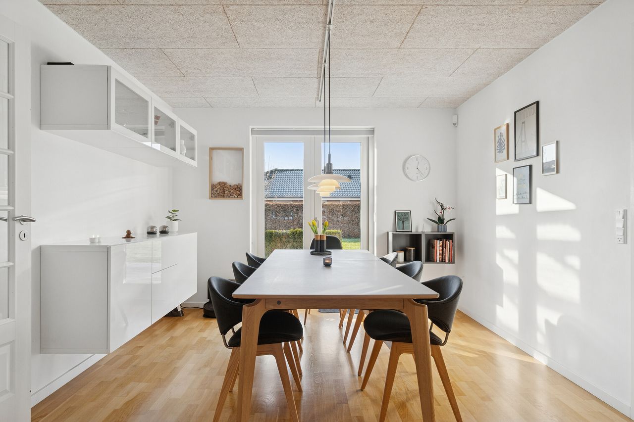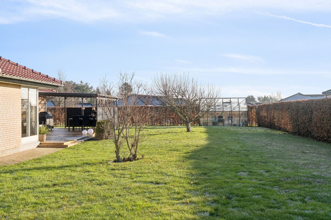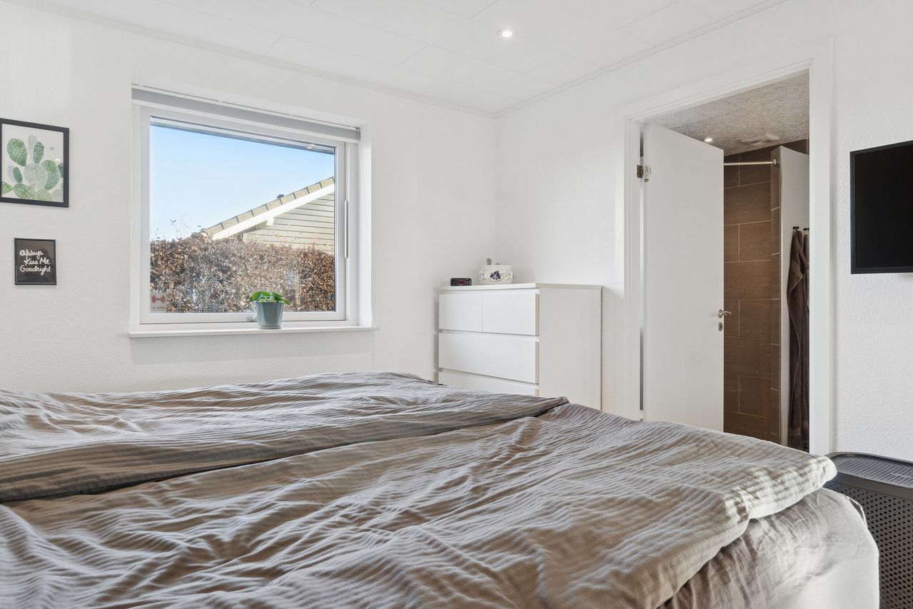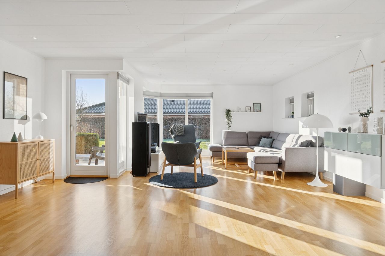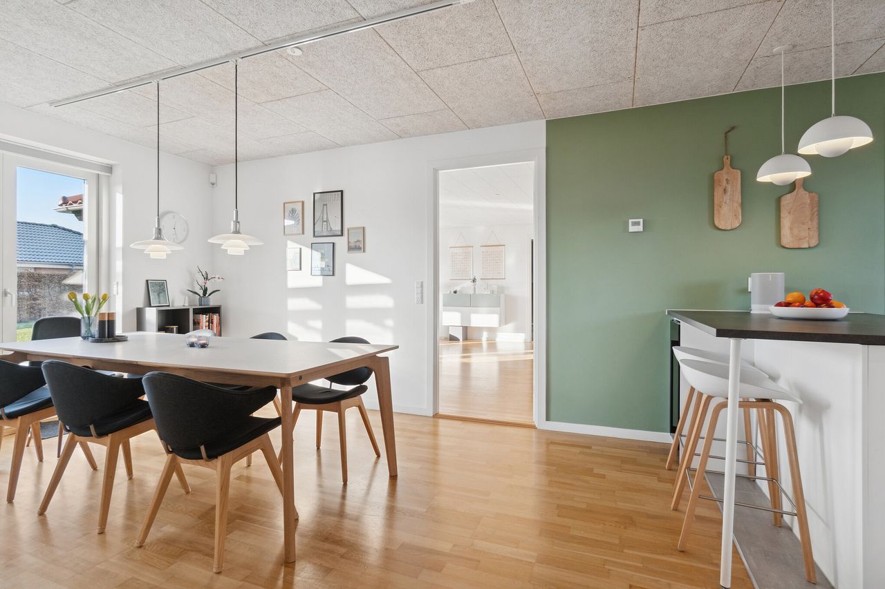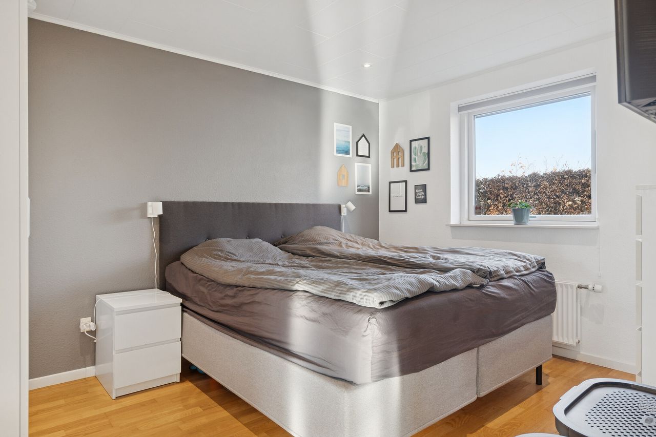 Velkommen til Peder Bøgvads Vej 4 i Vestbyen af Fredericia - moderne familievilla beliggende på lukket vænge, som fremstår indflytningsklar! Ejendommen fremstår med et bebygget areal på hele 188 m2 samt garage med el-port på 29 m2. Ejendommen ligger trygt og fredeligt på lukket vænge i Fredericias spændende nyere nybyggerkvarter - helt perfekt for en børnefamilie, som der allerede er mange af i kvarteret. Villaen er logisk indrettet, hvilket giver en god sammenhæng i mellem opholdsrum og værelser og huset har optimal planløsning i børneafdeling, centrale opholdsrum samt forældreafdeling. Selvom huset er opført i 2006 har der allerede været udskiftning og renovering af nyere køkken fra 2019, bryggers i 2019 samt badeværelse i 2022. Endvidere er der opført stort udehus på 18 m2 i 2023 samt anlagt ny træterrasse i 2024. Der er gulvvarme i det meste af huset i leverummene såsom stuen, køkken/alrummet, begge badeværelser samt bryggers. Ejendommen indeholder: Kombineret entré i åben forbindelse til bryggers med masser af skabsplads og klinkegulv. Fra bryggers er der videre adgang til hjerterummet i huset fine køkken/alrum med direkte udgang til den sydvendte terrasse med plads til hele familien eller i gode venners lag. Stor lys stue med masser af lysindfald fra de store vinduespartier med tilstødende kontor/værelse samt soveværelse med tilstødende badeværelse. Børneafdelingen med 2 rummelige værelser samt centralt placeret badeværelse. Haven fremstår meget velplejet, primært med græsplæne og godt med plads til leg og boldspil med børnene samt udehus med plads til opmagasinering eller værksted eller til hobby behov. Book en fremvisning hos din lokale RealMælger Boligbutikken Fredericia på tlf.nr. 88 44 20 70