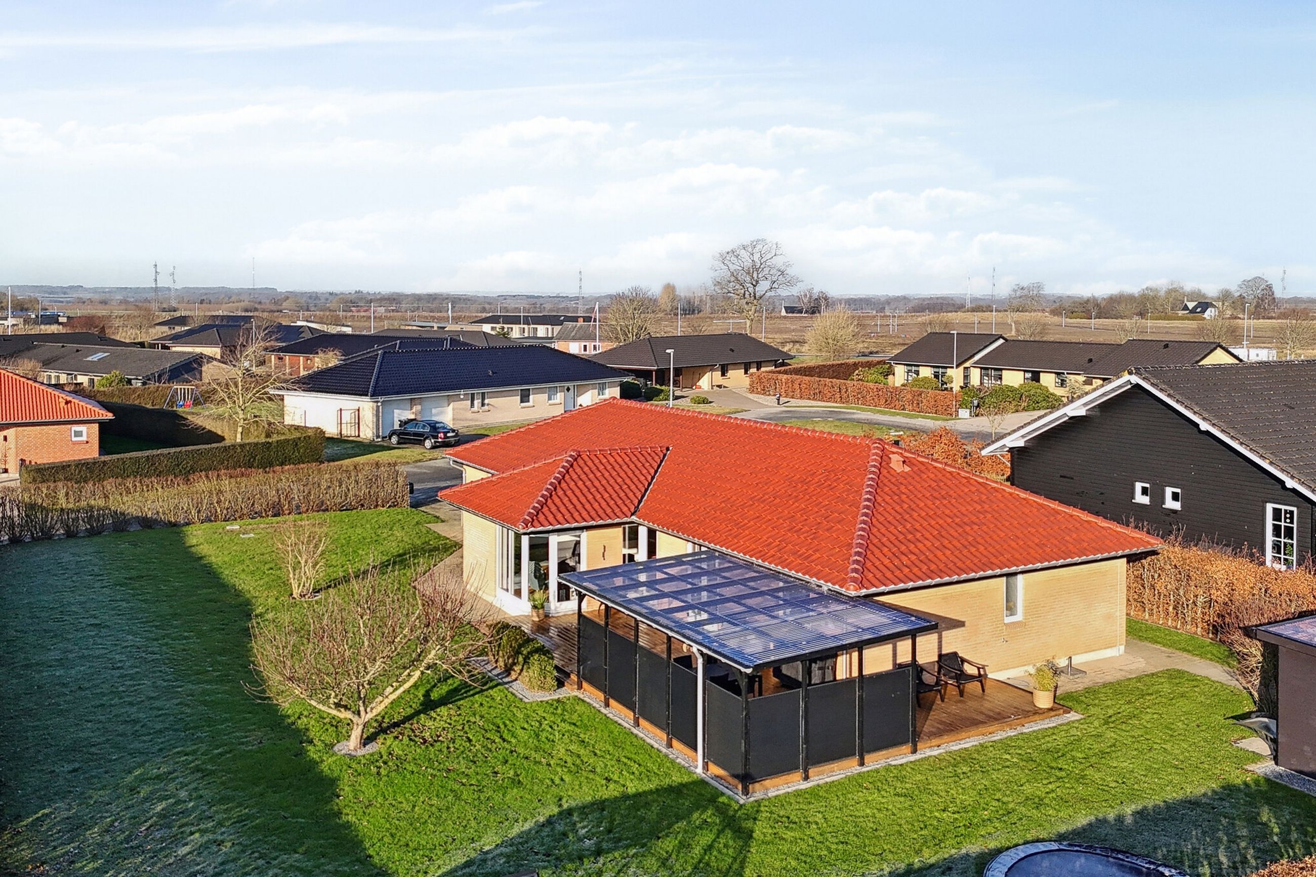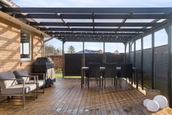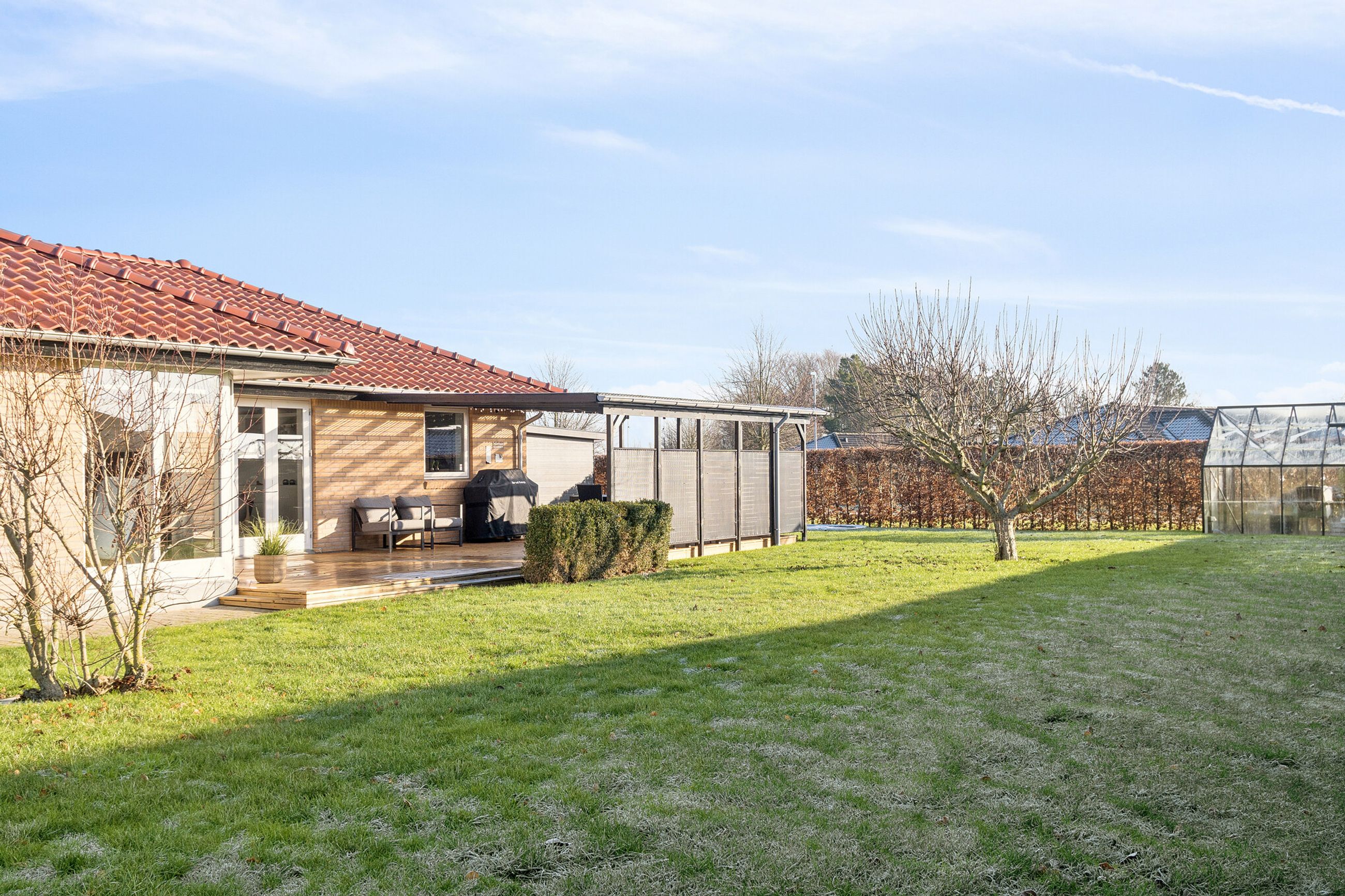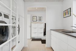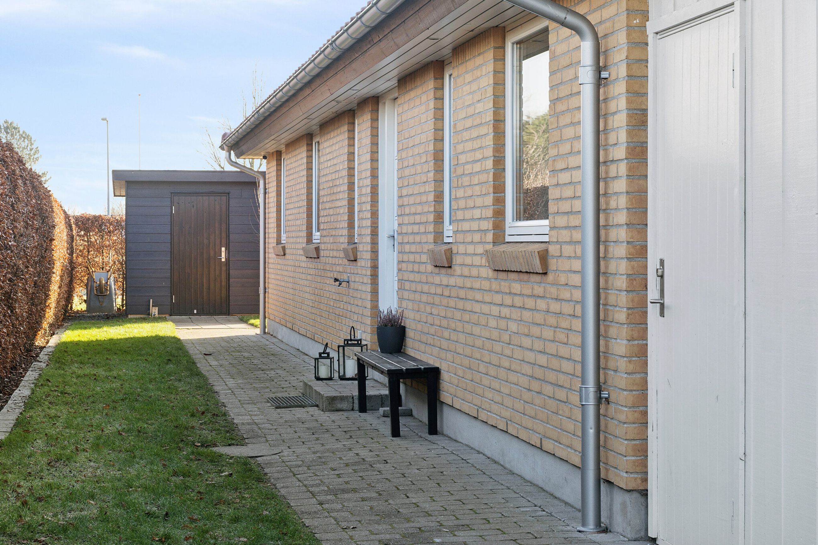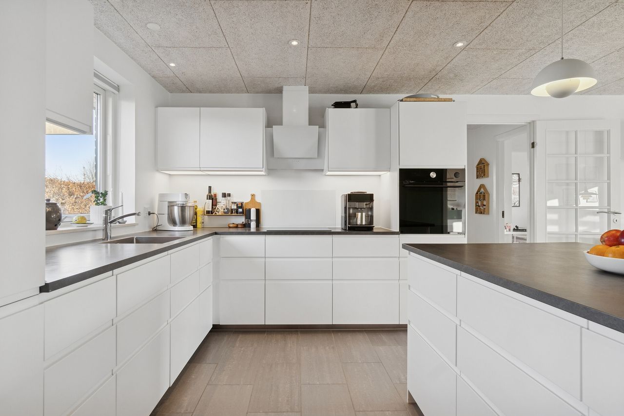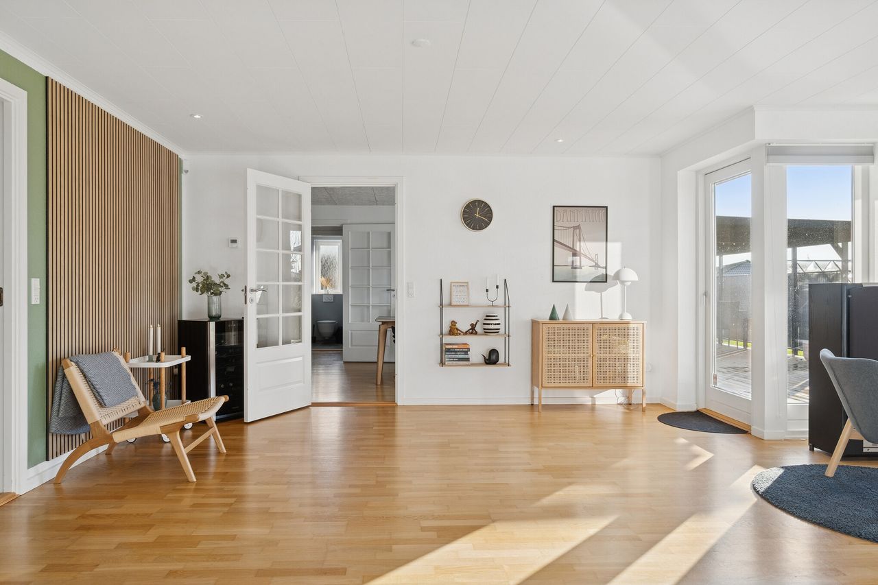 Velkommen til Peder Bøgvads Vej 4 i Vestbyen af Fredericia - moderne familievilla beliggende på lukket vænge, som fremstår indflytningsklar! Ejendommen fremstår med et bebygget areal på hele 188 m2 samt garage med el-port på 29 m2. Ejendommen ligger trygt og fredeligt på lukket vænge i Fredericias spændende nyere nybyggerkvarter - helt perfekt for en børnefamilie, som der allerede er mange af i kvarteret. Villaen er logisk indrettet, hvilket giver en god sammenhæng i mellem opholdsrum og værelser og huset har optimal planløsning i børneafdeling, centrale opholdsrum samt forældreafdeling. Selvom huset er opført i 2006 har der allerede været udskiftning og renovering af nyere køkken fra 2019, bryggers i 2019 samt badeværelse i 2022. Endvidere er der opført stort udehus på 18 m2 i 2023 samt anlagt ny træterrasse i 2024. Der er gulvvarme i det meste af huset i leverummene såsom stuen, køkken/alrummet, begge badeværelser samt bryggers. Ejendommen indeholder: Kombineret entré i åben forbindelse til bryggers med masser af skabsplads og klinkegulv. Fra bryggers er der videre adgang til hjerterummet i huset fine køkken/alrum med direkte udgang til den sydvendte terrasse med plads til hele familien eller i gode venners lag. Stor lys stue med masser af lysindfald fra de store vinduespartier med tilstødende kontor/værelse samt soveværelse med tilstødende badeværelse. Børneafdelingen med 2 rummelige værelser samt centralt placeret badeværelse. Haven fremstår meget velplejet, primært med græsplæne og godt med plads til leg og boldspil med børnene samt udehus med plads til opmagasinering eller værksted eller til hobby behov. Book en fremvisning hos din lokale RealMælger Boligbutikken Fredericia på tlf.nr. 88 44 20 70