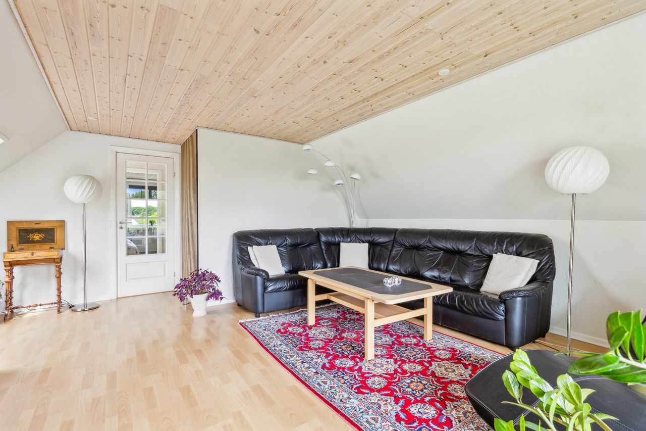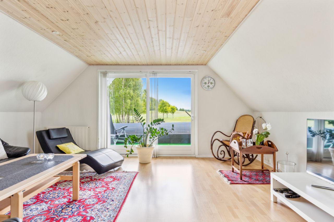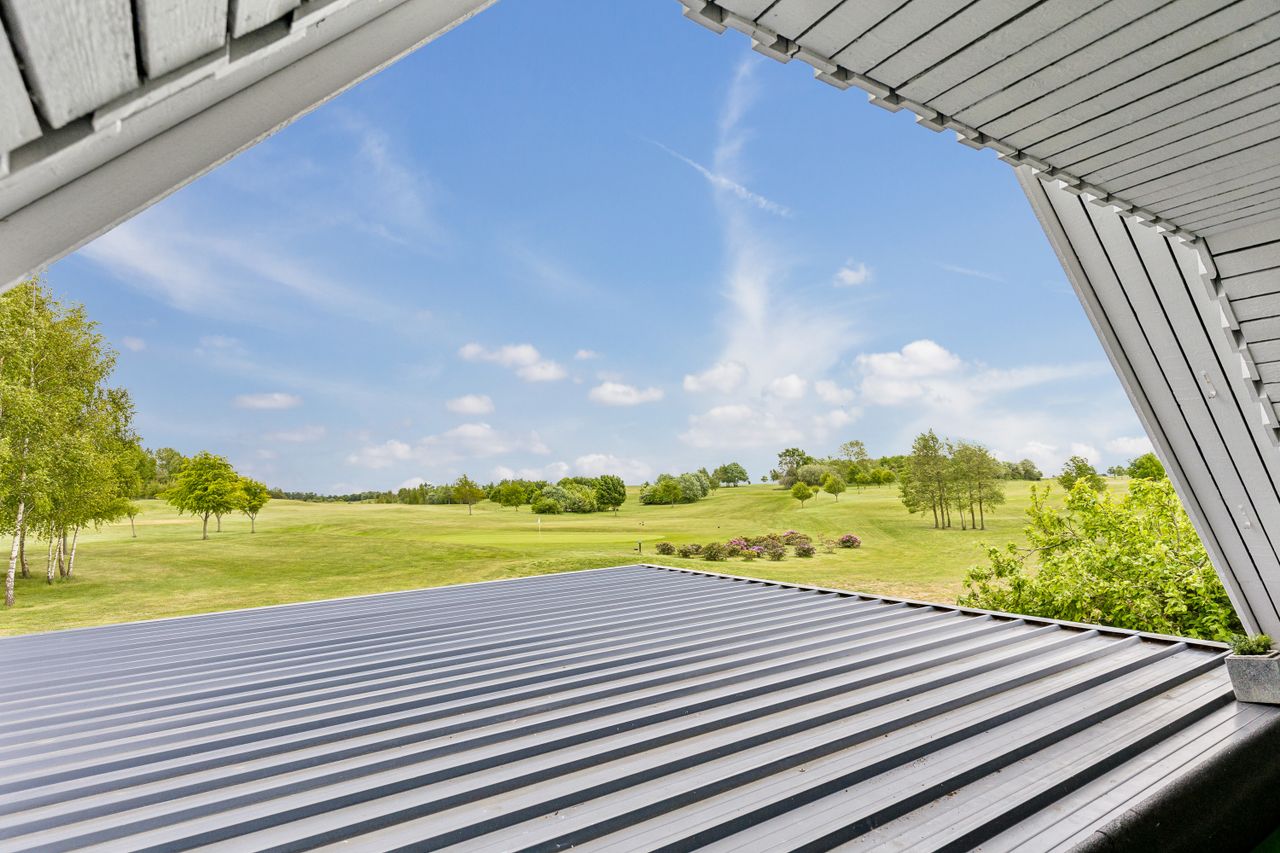 Drømmer du om ro, udsigt og direkte adgang til naturskønne omgivelser? Så er denne velindrettede og charmerende bolig på 145 kvm lige noget for dig! Beliggende i første række til golfbanen, midt i fredelige og grønne omgivelser, tilbyder hjemmet en helt særlig kombination af komfort, funktionalitet og naturnær luksus. Boligen indeholder:· Et stort og lyst køkken/alrum, som indbyder til både hverdagsliv og hyggelige sammenkomster. De store vinduespartier giver et skønt lysindfald og udsigt mod det grønne.· Tre gode soveværelser, alle med plads til både seng og opbevaring – ideelle som børneværelser, kontor eller gæsteværelse.· Et praktisk bryggers med god plads til vaskefaciliteter og opbevaring – perfekt til en aktiv hverdag.· En stue på 1. sal, hvor panoramaudsigten over golfbanen virkelig kommer til sin ret. Her kan du nyde roen, udsigten og de smukke solnedgange fra første parket.· Der findes to badeværelser i huset, et på hver etage. Værd at fremhæve: Til ejendommen hører også en ekstraordinær garage med højt til loftet. Her er der rigeligt med plads til både værksted, opbevaring og eventuelt en lift til bilen – en drøm for både gør-det-selv-folk og bilentusiaster. Denne bolig er oplagt for dem, der ønsker en harmonisk hverdag med naturen og fritidsmulighederne lige uden for døren – og uden at gå på kompromis med plads og funktionalitet.