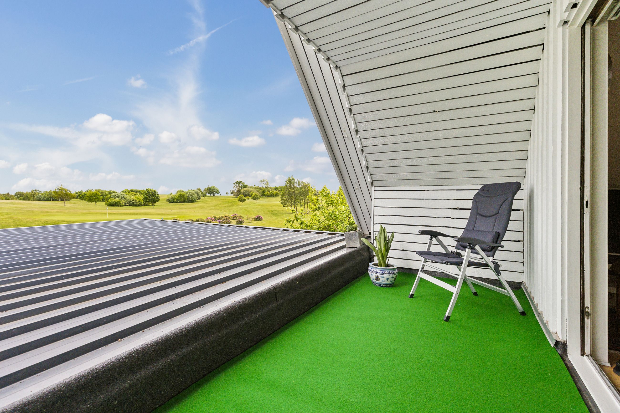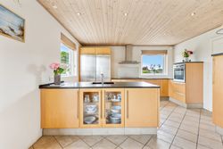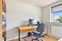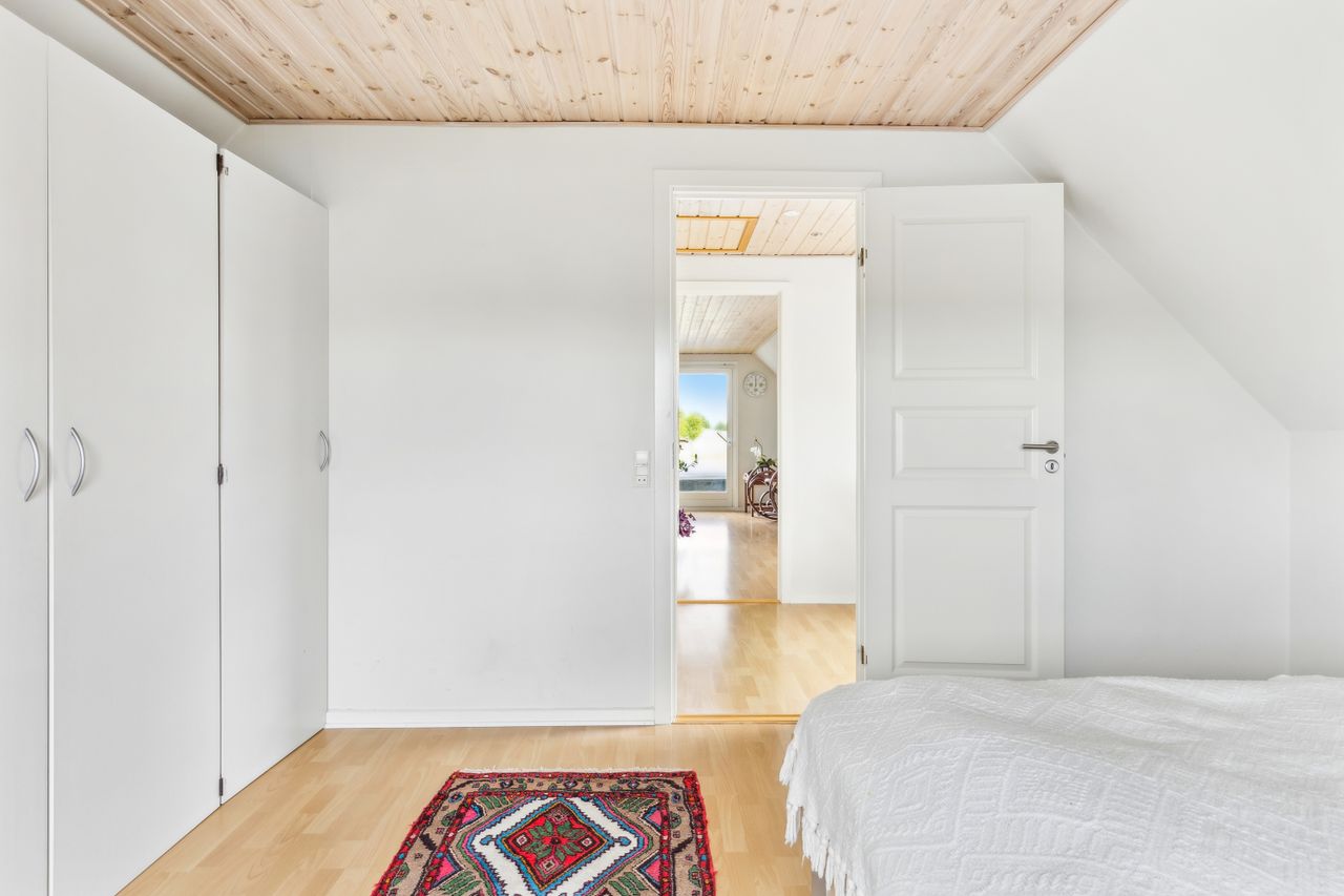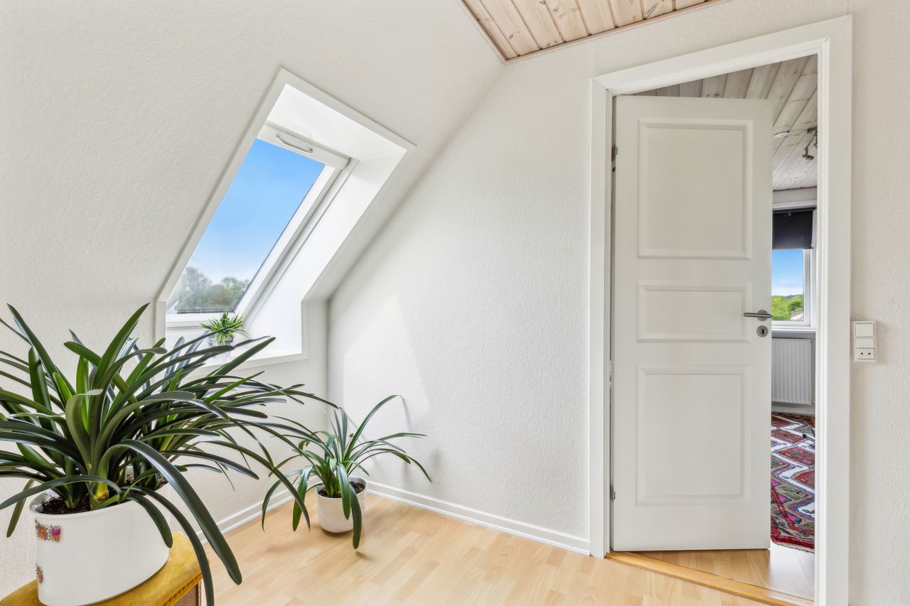 Drømmer du om ro, udsigt og direkte adgang til naturskønne omgivelser? Så er denne velindrettede og charmerende bolig på 145 kvm lige noget for dig! Beliggende i første række til golfbanen, midt i fredelige og grønne omgivelser, tilbyder hjemmet en helt særlig kombination af komfort, funktionalitet og naturnær luksus. Boligen indeholder:· Et stort og lyst køkken/alrum, som indbyder til både hverdagsliv og hyggelige sammenkomster. De store vinduespartier giver et skønt lysindfald og udsigt mod det grønne.· Tre gode soveværelser, alle med plads til både seng og opbevaring – ideelle som børneværelser, kontor eller gæsteværelse.· Et praktisk bryggers med god plads til vaskefaciliteter og opbevaring – perfekt til en aktiv hverdag.· En stue på 1. sal, hvor panoramaudsigten over golfbanen virkelig kommer til sin ret. Her kan du nyde roen, udsigten og de smukke solnedgange fra første parket.· Der findes to badeværelser i huset, et på hver etage. Værd at fremhæve: Til ejendommen hører også en ekstraordinær garage med højt til loftet. Her er der rigeligt med plads til både værksted, opbevaring og eventuelt en lift til bilen – en drøm for både gør-det-selv-folk og bilentusiaster. Denne bolig er oplagt for dem, der ønsker en harmonisk hverdag med naturen og fritidsmulighederne lige uden for døren – og uden at gå på kompromis med plads og funktionalitet.
