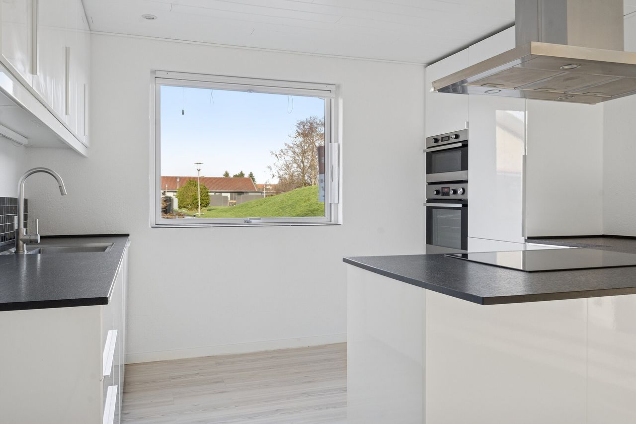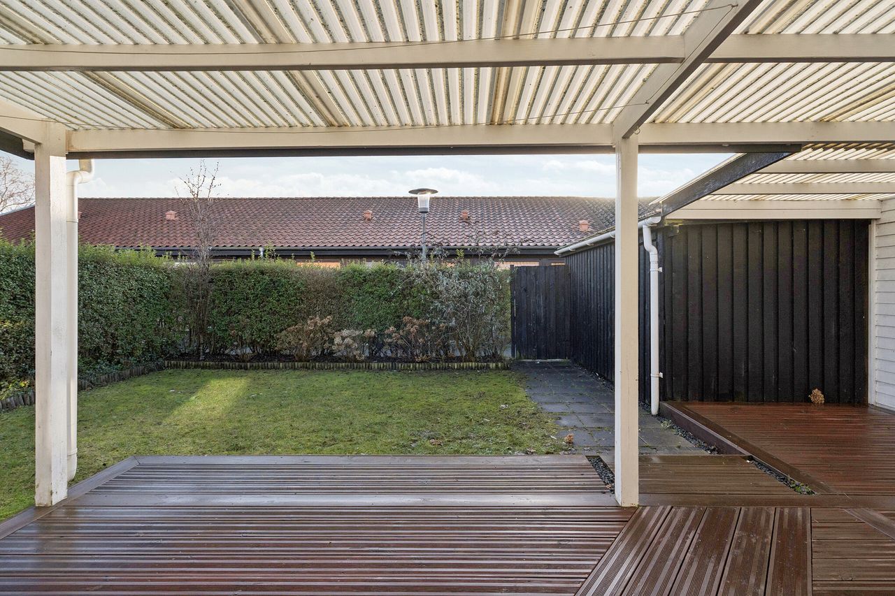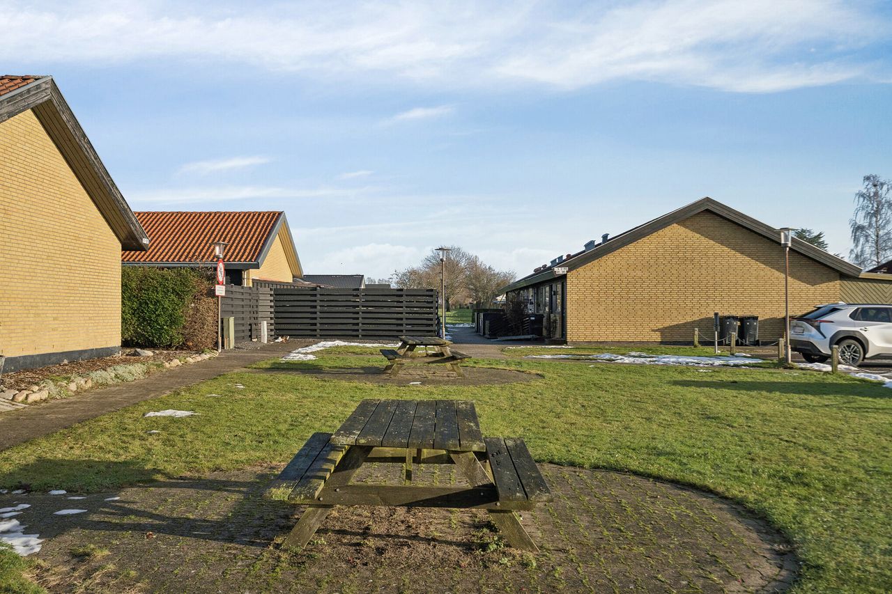 Nu udbydes velholdt og indflytningsklart rækkehus i Nordbyen. Ejendommen ligger på lukket vænge og med kun få minutters gang til gode gåture på Fælleden i et naturskønt område. Huset er med mange kvaliteter og løbende moderniseret. Rækkehuset er logisk indrettet med ingen spildplads, hvilket giver en god sammenhæng i mellem opholdsrum og værelser. Tilhørende rækkehuset får man flot anlagt have som fremstår velplejet og nem at overskue. Stor ugeneret træterrasse med plads til hele familien og i gode venners lag hvor man kan nyde solens varme på den vestvendte terrasse. Boligen henvender sig til førstegangskøberen, det ældre segment, den enlige forældre med barn eller en- eller tosomheden. Alt i alt en ejendom til det bredepublikum. Ejendommen indeholder:Stort klinkebelagt bryggers med masser af skabsplads. Fra bryggerset er der videre adgang til stort køkken/alrum i åben forbindelse til stuen, som er hjerterummet i huset. Fra stuen er der udgang til haven og den sydvendte terrasse. Der er tilhørende soveværelse samt børneværelse med et centralt beliggende stort badeværelse med bruseniche og klinker, der fremstår meget velholdt. Book en fremvisning hos din lokale RealMæglerne Boligbutikken Fredericia på tlf.nr. 88 44 20 70