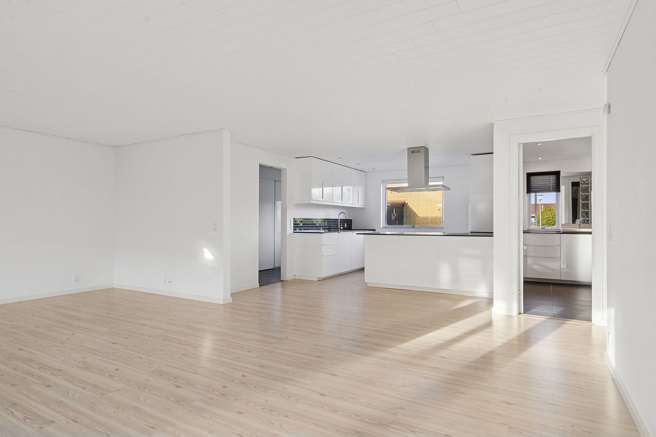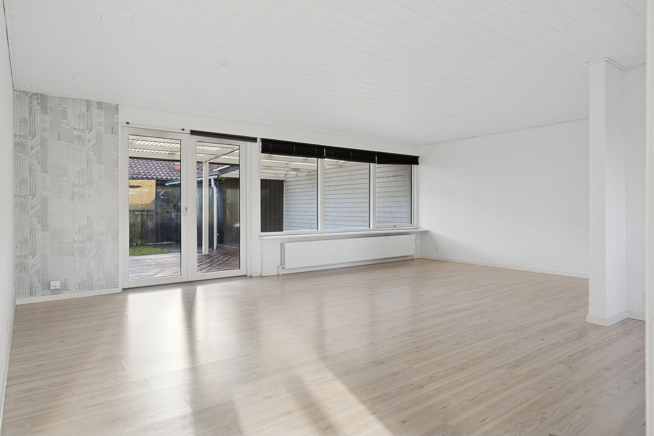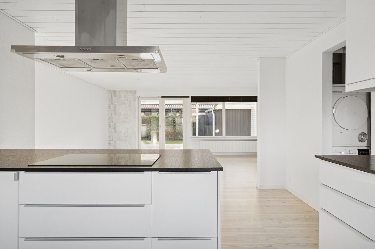 Nu udbydes velholdt og indflytningsklart rækkehus i Nordbyen. Ejendommen ligger på lukket vænge og med kun få minutters gang til gode gåture på Fælleden i et naturskønt område. Huset er med mange kvaliteter og løbende moderniseret. Rækkehuset er logisk indrettet med ingen spildplads, hvilket giver en god sammenhæng i mellem opholdsrum og værelser. Tilhørende rækkehuset får man flot anlagt have som fremstår velplejet og nem at overskue. Stor ugeneret træterrasse med plads til hele familien og i gode venners lag hvor man kan nyde solens varme på den vestvendte terrasse. Boligen henvender sig til førstegangskøberen, det ældre segment, den enlige forældre med barn eller en- eller tosomheden. Alt i alt en ejendom til det bredepublikum. Ejendommen indeholder:Stort klinkebelagt bryggers med masser af skabsplads. Fra bryggerset er der videre adgang til stort køkken/alrum i åben forbindelse til stuen, som er hjerterummet i huset. Fra stuen er der udgang til haven og den sydvendte terrasse. Der er tilhørende soveværelse samt børneværelse med et centralt beliggende stort badeværelse med bruseniche og klinker, der fremstår meget velholdt. Book en fremvisning hos din lokale RealMæglerne Boligbutikken Fredericia på tlf.nr. 88 44 20 70