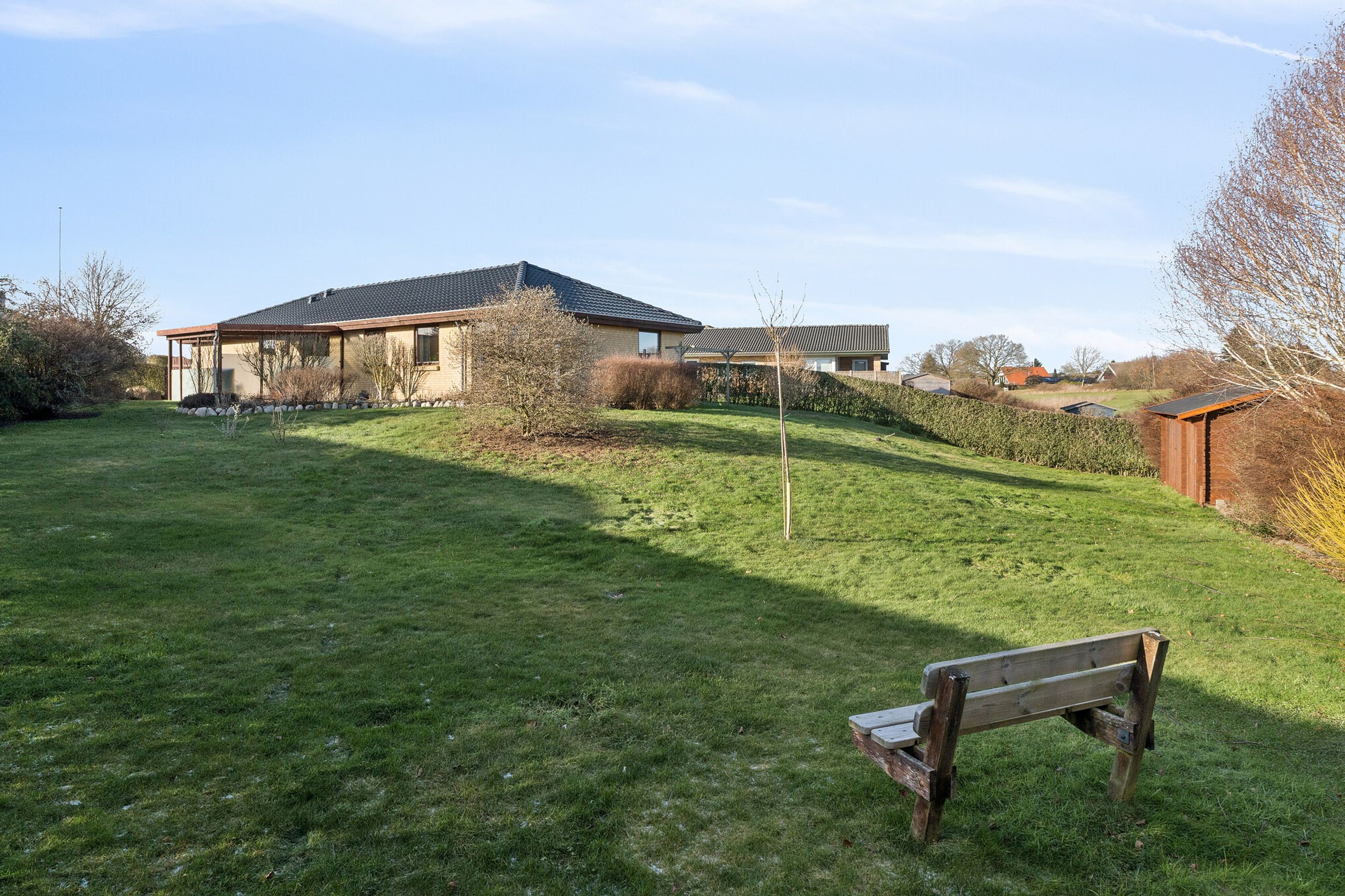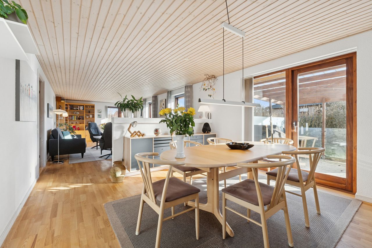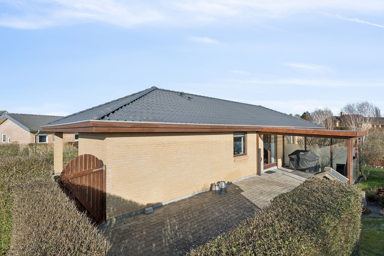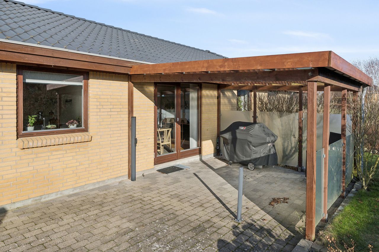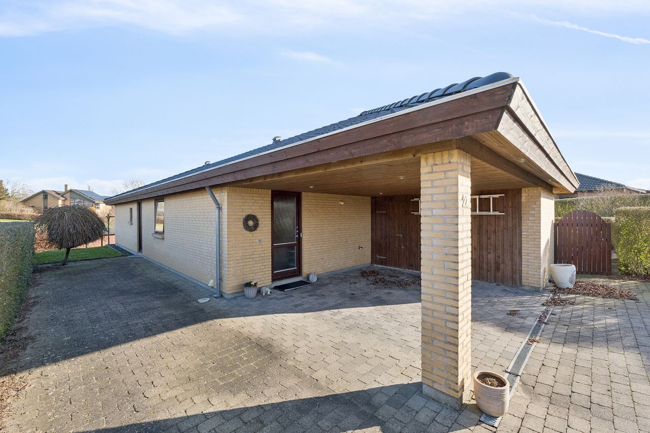 Her er villaen for jer, der drømmer om den skønneste beliggenhed tæt på Elbodalen i hyggelige Bredstrup. Ejendommen fremstår indflytningsklar og er en gennemført bolig beliggende i rolige og børnevenlige omgivelser. Her får man nemlig en virkelig velindrettet villa, i gåafstand fra skole og idrætshal, tæt på skønne naturområder og bare ti minutters kørsel fra Fredericia midtby. Villaen er opført i 2004 af Preben Jørgensen Huse og alt er utrolig velholdt og fremstår i flot og indflytningsklar stand med en gennemtænkt planløsning med en lys og moderne indretning, der falder i de flestes smag. Ejendommen er logisk indrettet, hvilket giver en god sammenhæng imellem opholdsrum og værelser. Det bebyggede areal på 146 kvadratmeter er godt udnyttet og der er gulvvarme i bryggers, gang samt badeværelse. Der er i 2020 udskiftet ny bordplade i køkken til en flot sort skiffer bordplade samt er taget på huset renset og malet i 2022. Ejendommen indeholder: Klinkebelagt brygers med plads til vaskefaciliteter samt godt med skabsplads. Fra bryggerset træder man videre ind i det store køkken/alrum i åben forbindelse til stuen, som uden tvivl er huset hjerterum. Her er masser af plads til familien samt i gode venners lag. Fra køkken/alrummet er der direkte adgang til overdækket terrasse, hvor man kan sidde helt ugeneret. Endvidere klinkebelagt entré med tilstødende soveværelse samt stort badeværelse og endnu et værelse, som i dag ses kombineret som gæsteværelse/kontor. Boligens udendørsarealer dækker over en terrasse hvoraf en del er overdækket, hvilket er integreret til huset. Herudover hører en integreret carport på 22m2 med indbygget redskabsrum på 12 m2. En flot stor have primært anlagt med græsplæne, hvor alle sommerens aftener kan nydes. Har boligen din interesse, så kontakt Realmæglerne Boligbutikken på 88 44 20 70.