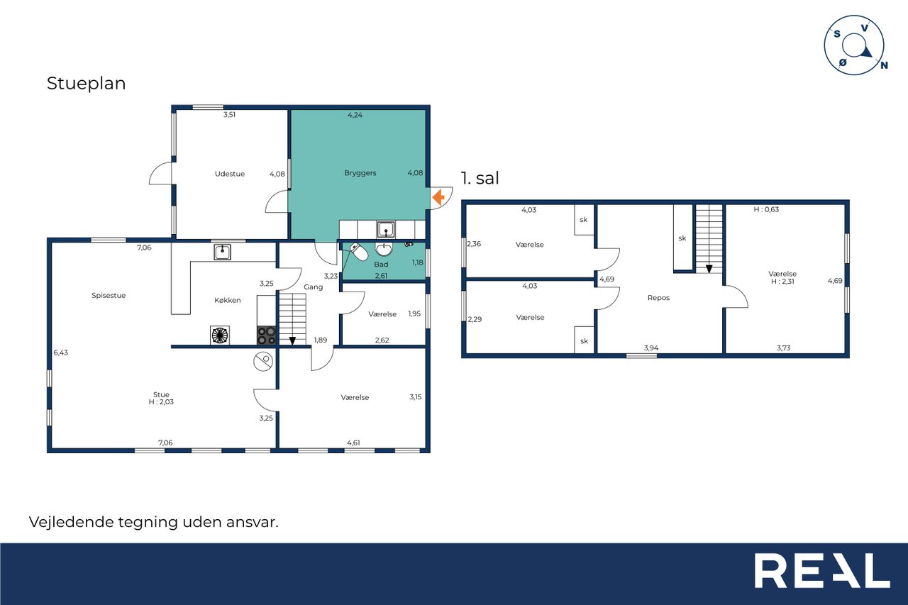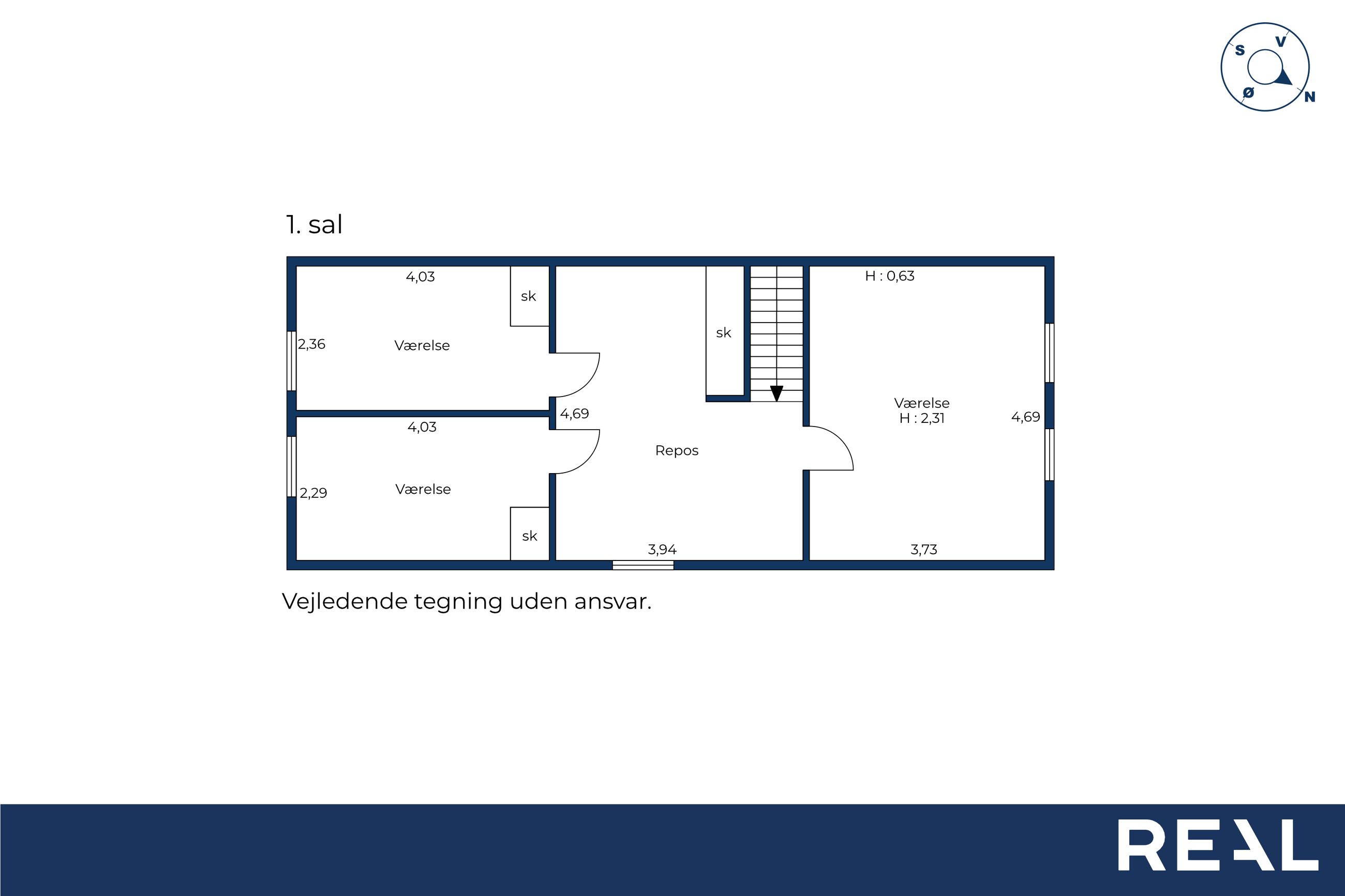 På førstesalen venter et stort repos, som kan indrettes som kontor eller multirum, og herudover finder du tre gode værelser med mange anvendelsesmuligheder – hvad enten du har brug for børneværelser, gæsteværelse eller hobbyrum.