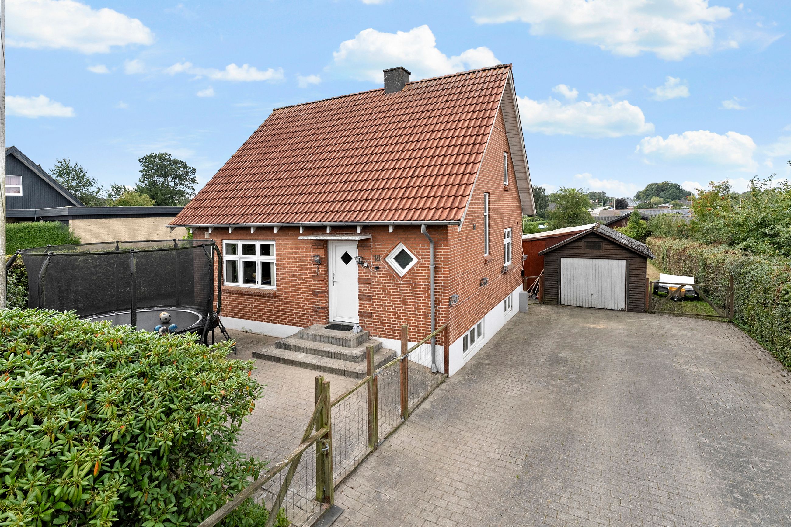 Velkommen til denne charmerende, røde mustensvilla. Denne villa er det perfekte hjem for dem, der søger ro, lys og et afslappet liv i et hyggeligt miljø. Den røde murstensfacade står i smuk kontrast til de grønne omgivelser og giver huset et indbydende og charmerende udtryk, der straks vækker følelse af hjemlig varme.