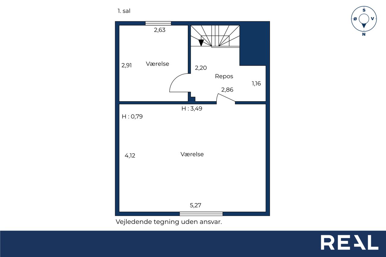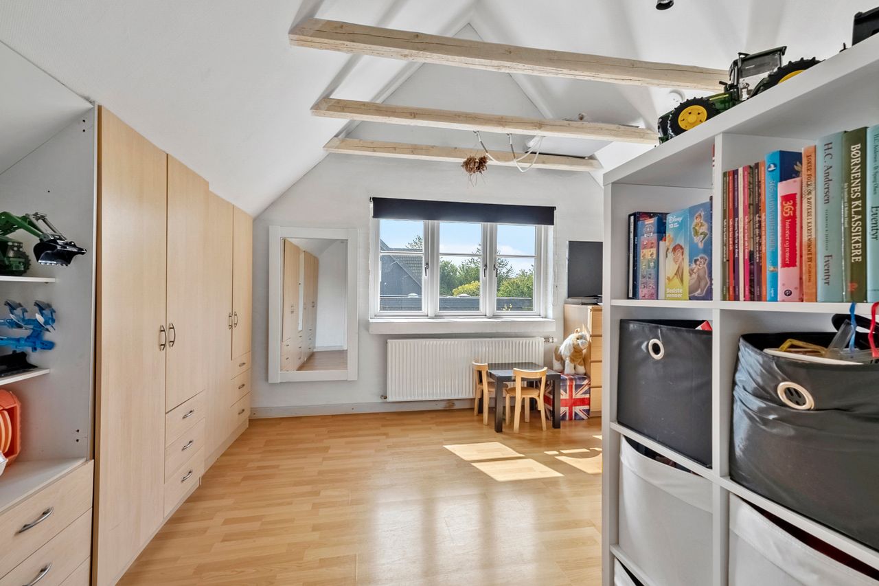 På 1. sal finder du to dejlige værelser, som tilbyder en perfekt oase af ro og privatliv. Det er nemt at dele det ene værelse, og få i alt 3 værelser. Værelserne er lyse og luftige, med masser af plads til både opbevaring og indretning efter egen smag. De er ideelle som soveværelser, børneværelser eller et hjemmekontor, og de giver mulighed for at skabe et personligt og fredfyldt rum.