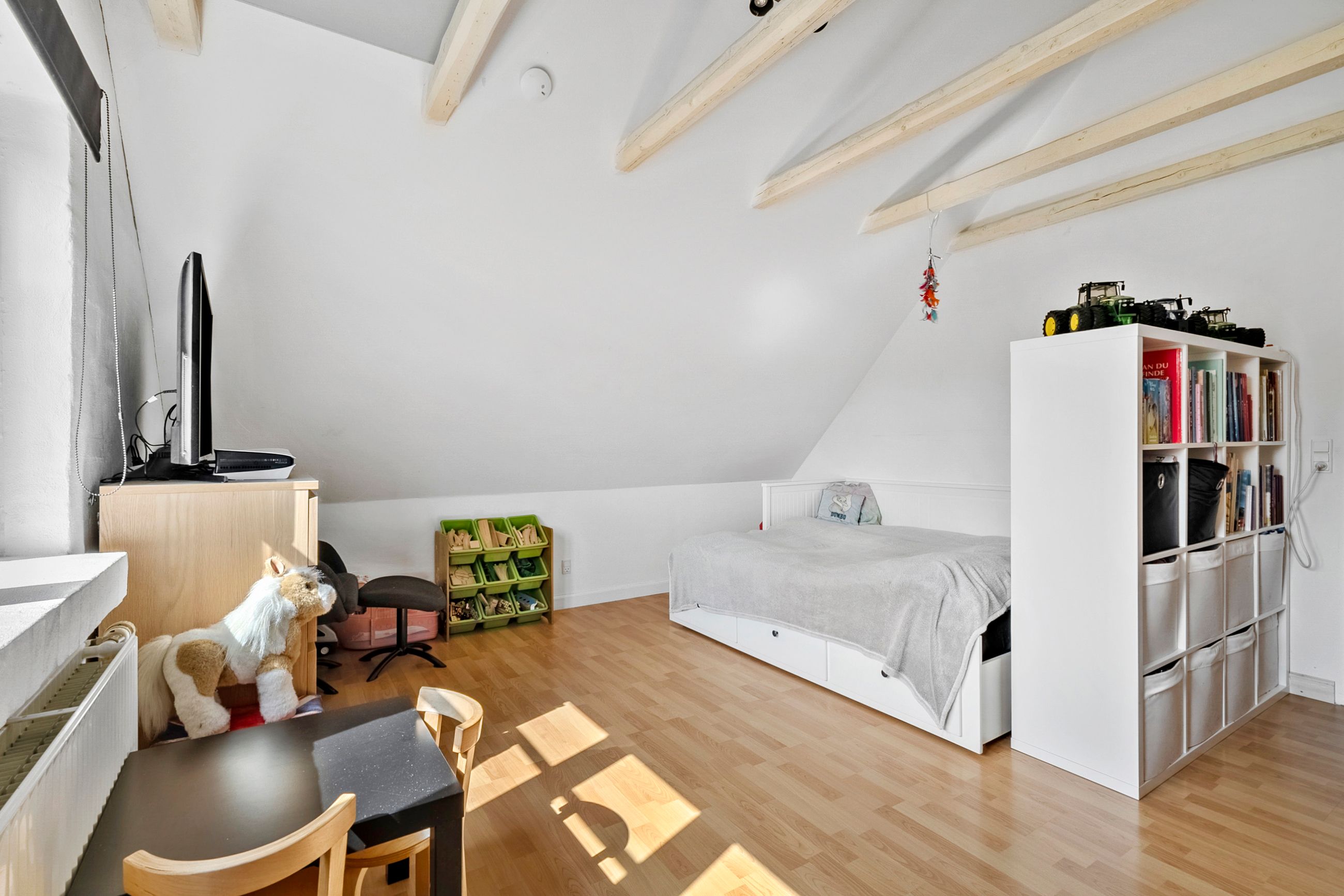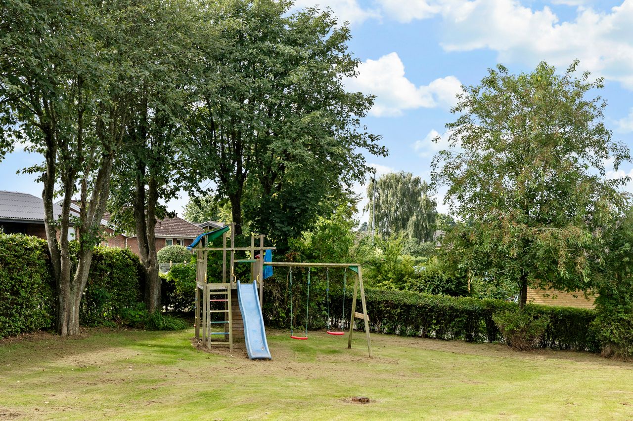 En af husets helt store fordele er den dejlige, store have, som er et sandt fristed for både børn og voksne. Haven byder på masser af plads til udendørs aktiviteter, såsom boldspil, leg eller blot afslapning på en solrig eftermiddag. Her er både plads til at dyrke sine egne planter eller blot nyde naturens skønhed. Den rummelige have er perfekt til sommerens grillfester, hyggelige stunder med venner og familie eller bare til at finde ro i grønne omgivelser.