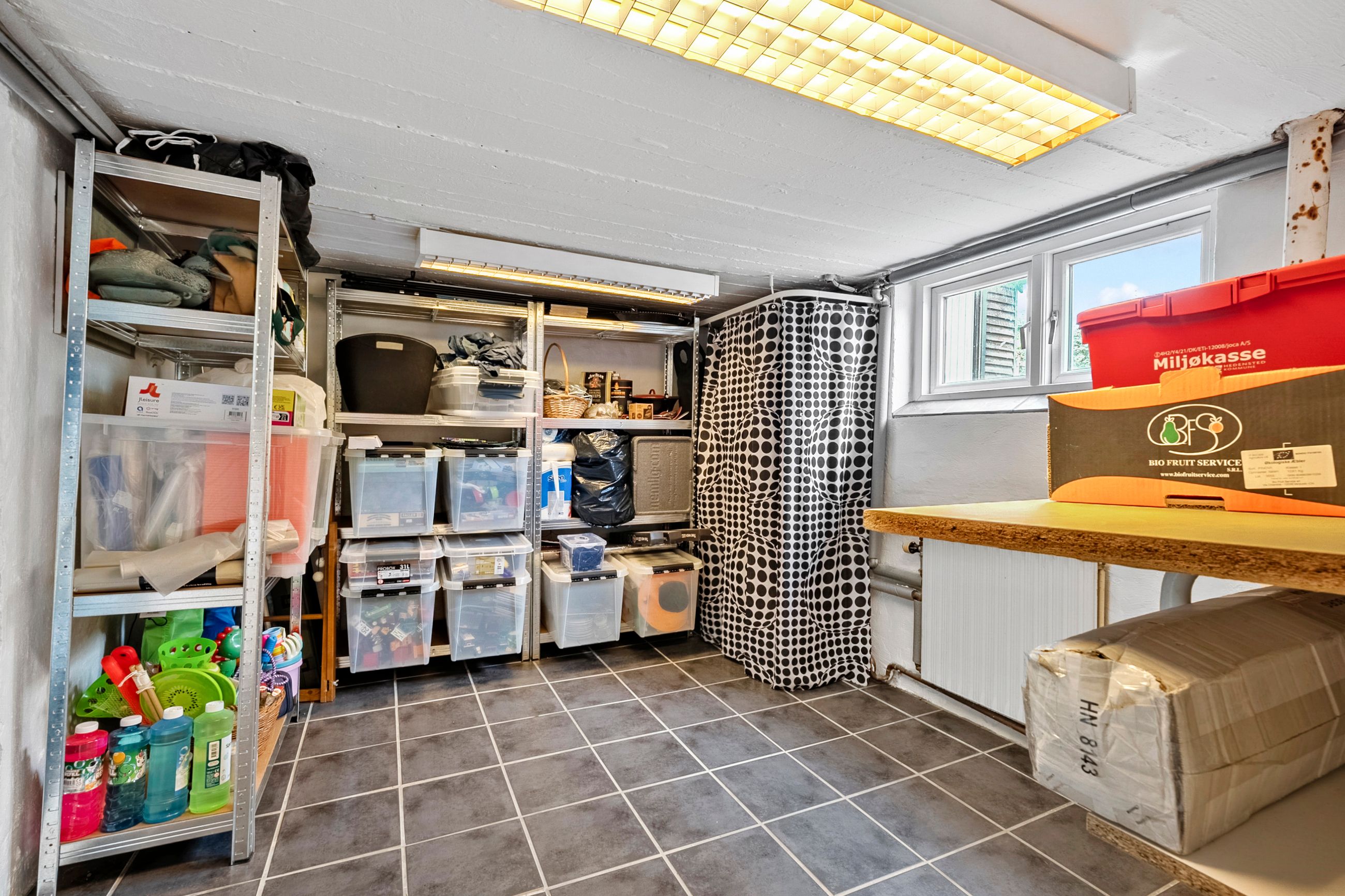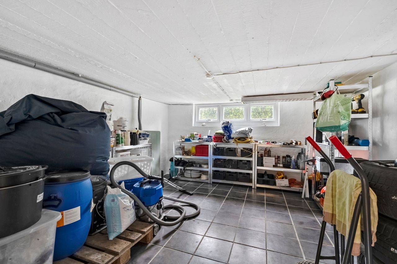 Den 61 kvm. anvendelige kælder, fremstår lys, brugbar, ventileret og opvarmet.
