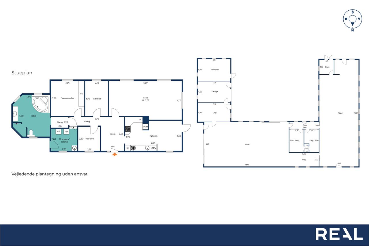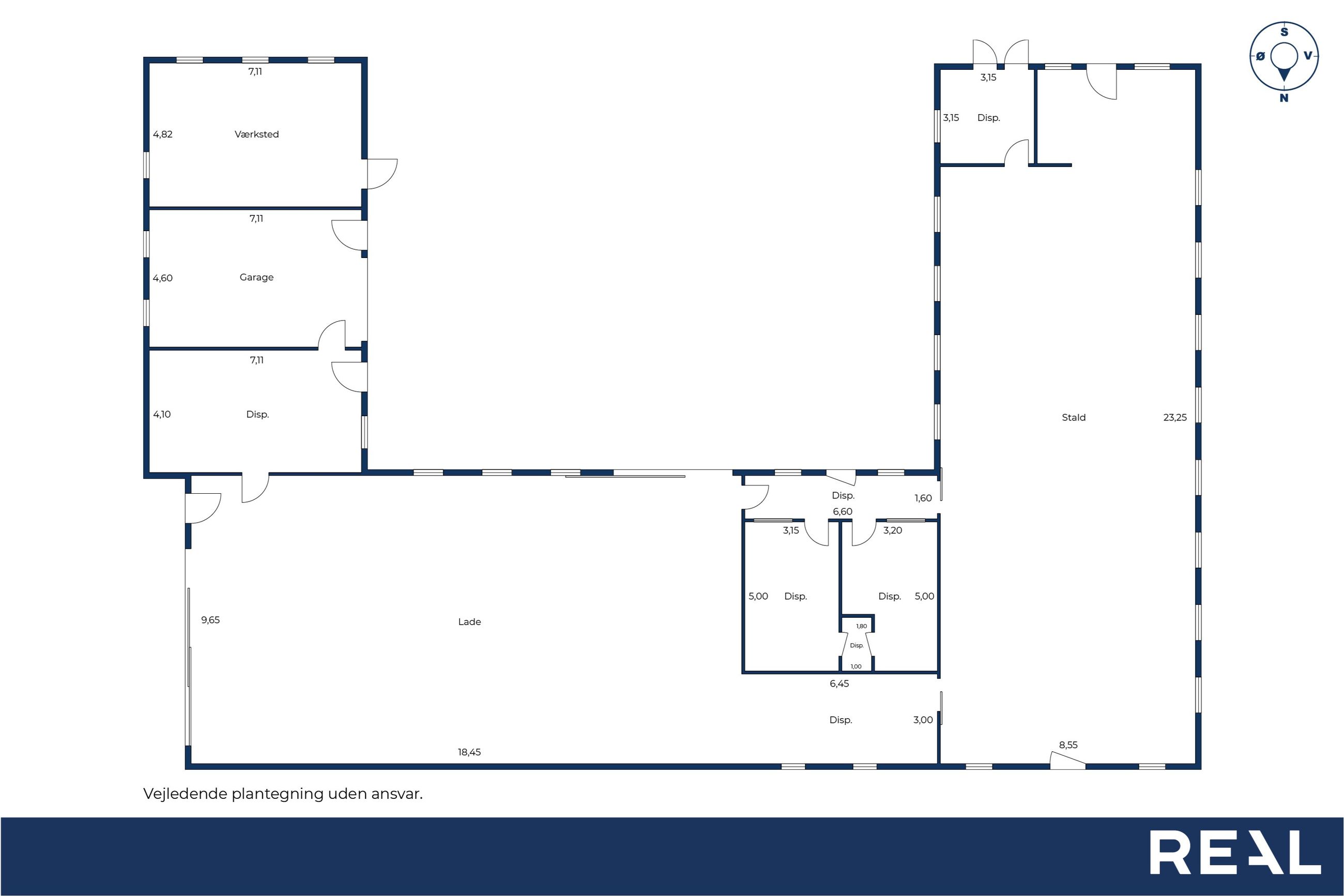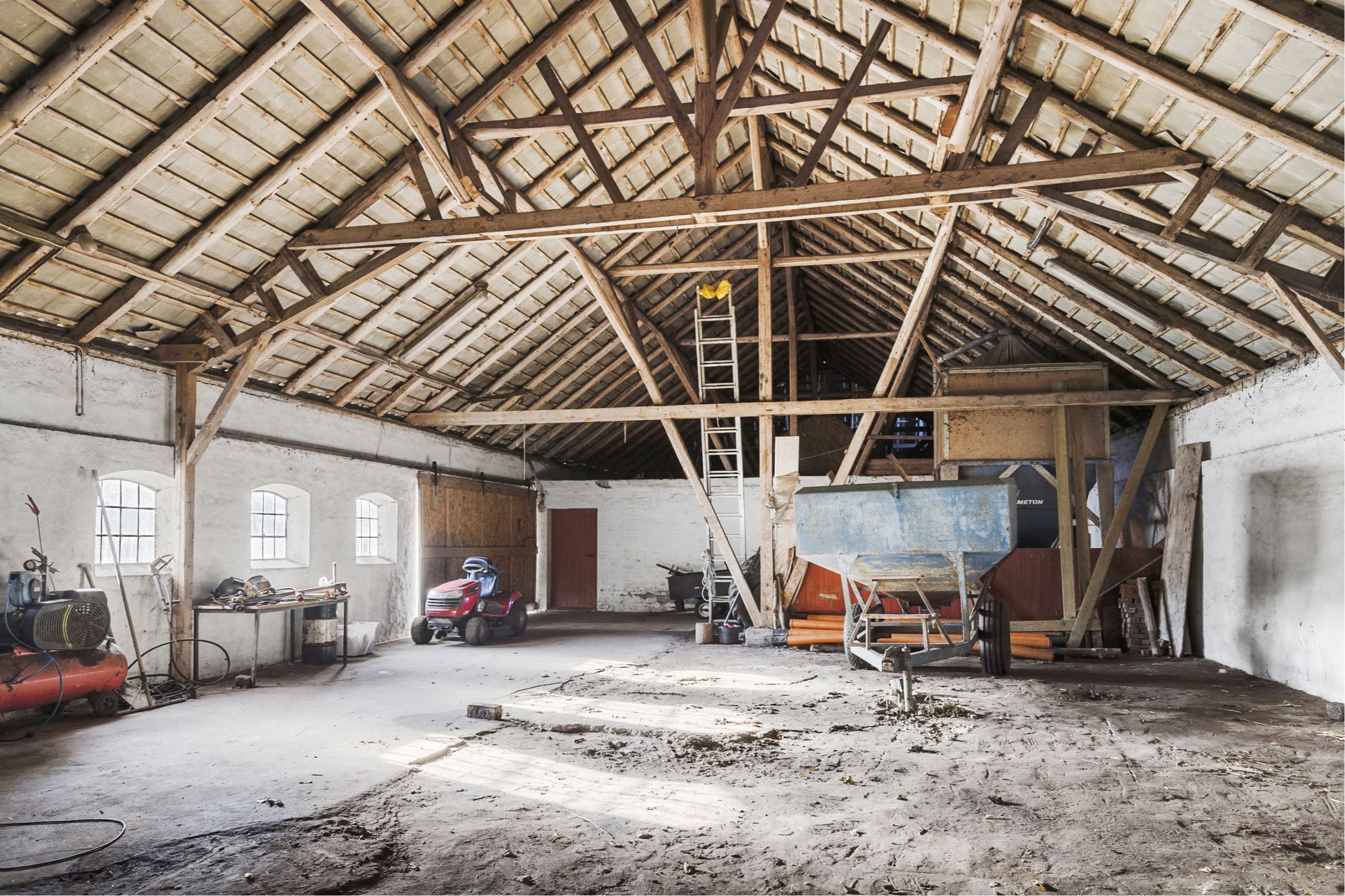 Ejendommens garage giver sikker parkering for bilen, mens værkstedet inviterer gør-det-selv-entusiasten indenfor. Den store lade/maskinhal har potentiale til mange formål – lige fra landbrugsmaskiner til kreative projekter – ligesom staldbygningen åbner op for dyrehold eller anden anvendelse efter ønske.