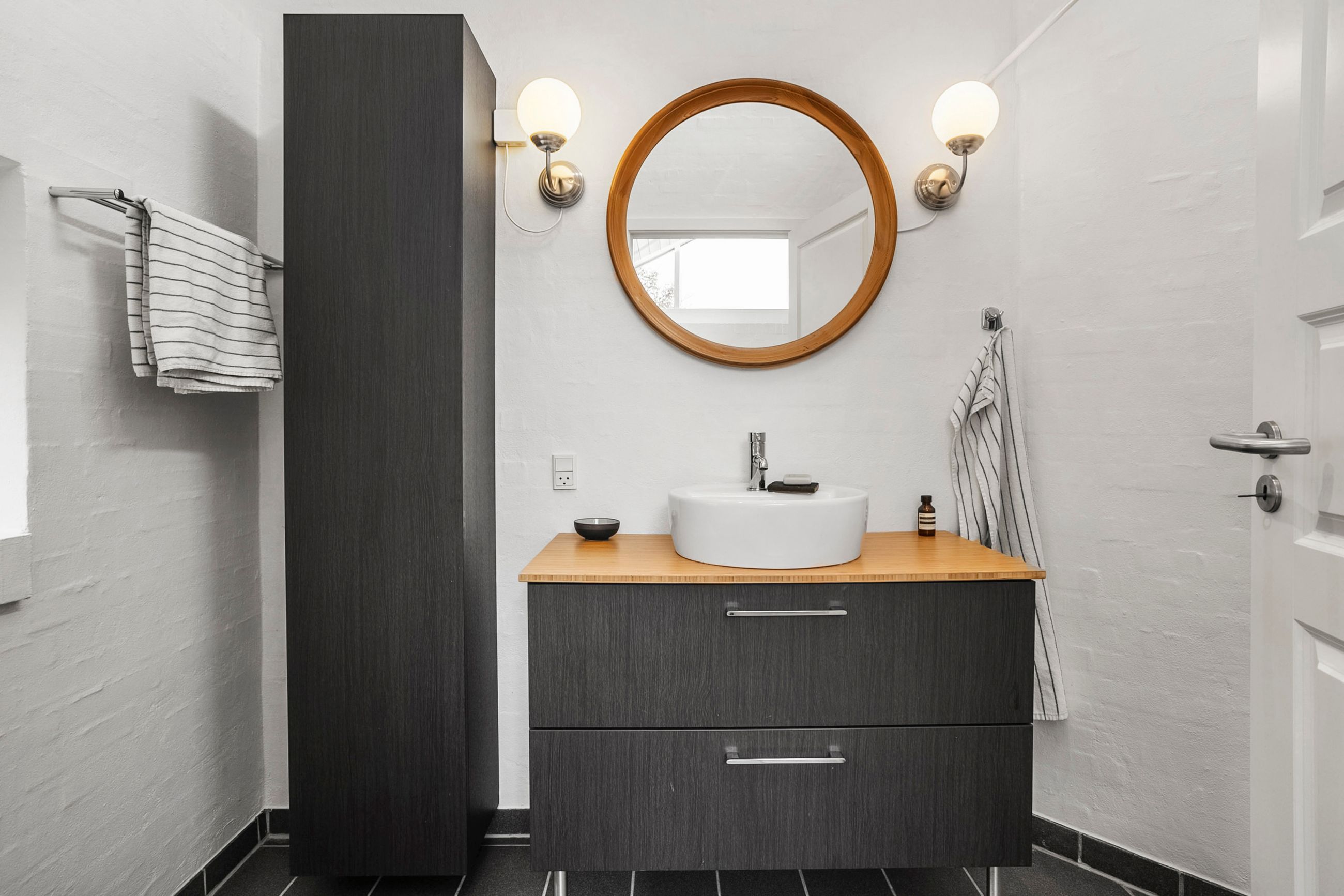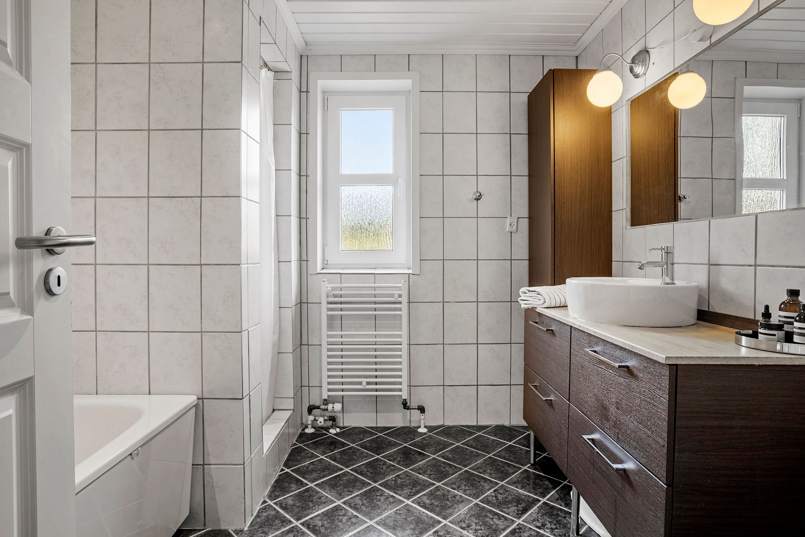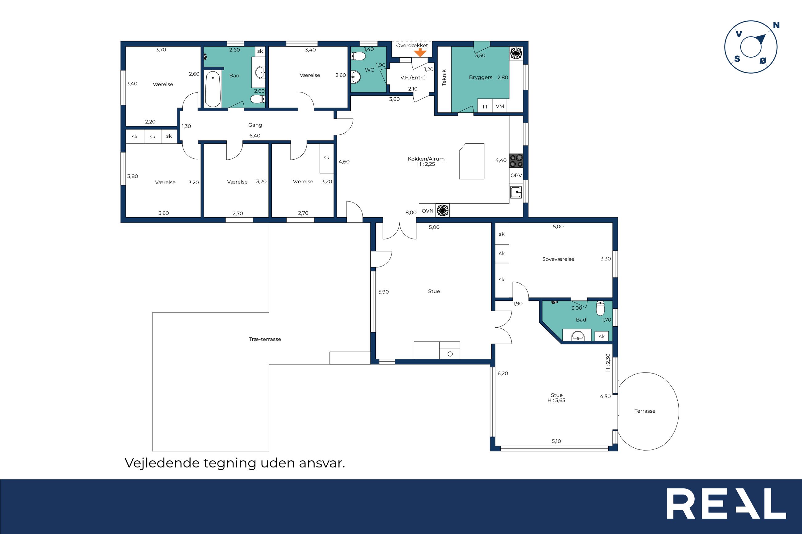 Børneafdelingen er generøs med fem værelser samt et ekstra badeværelse, så alle familiemedlemmer har deres egen plads. Derudover findes et gæstetoilet ved entréen samt et praktisk bryggers med egen indgang – alt hvad man behøver for at få hverdagen til at glide let.