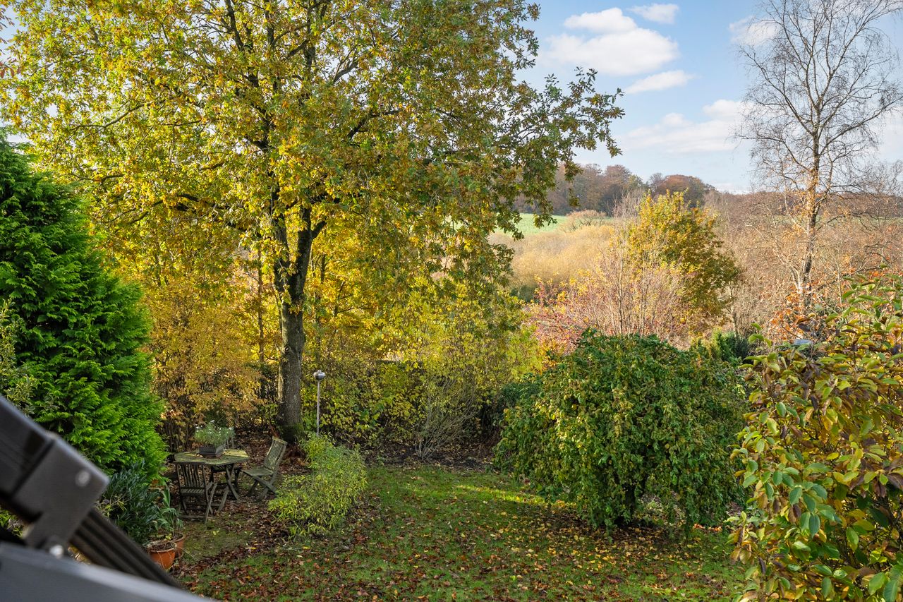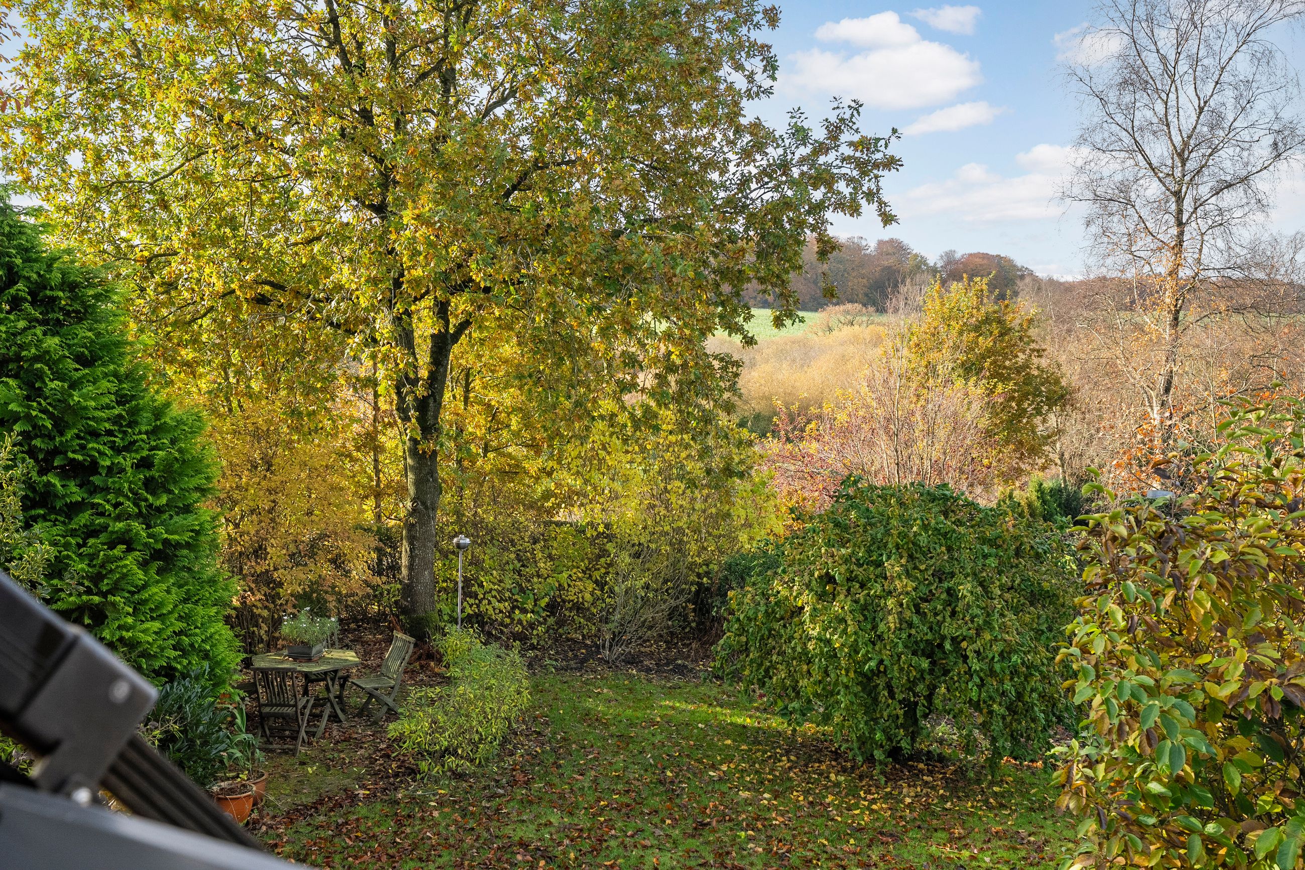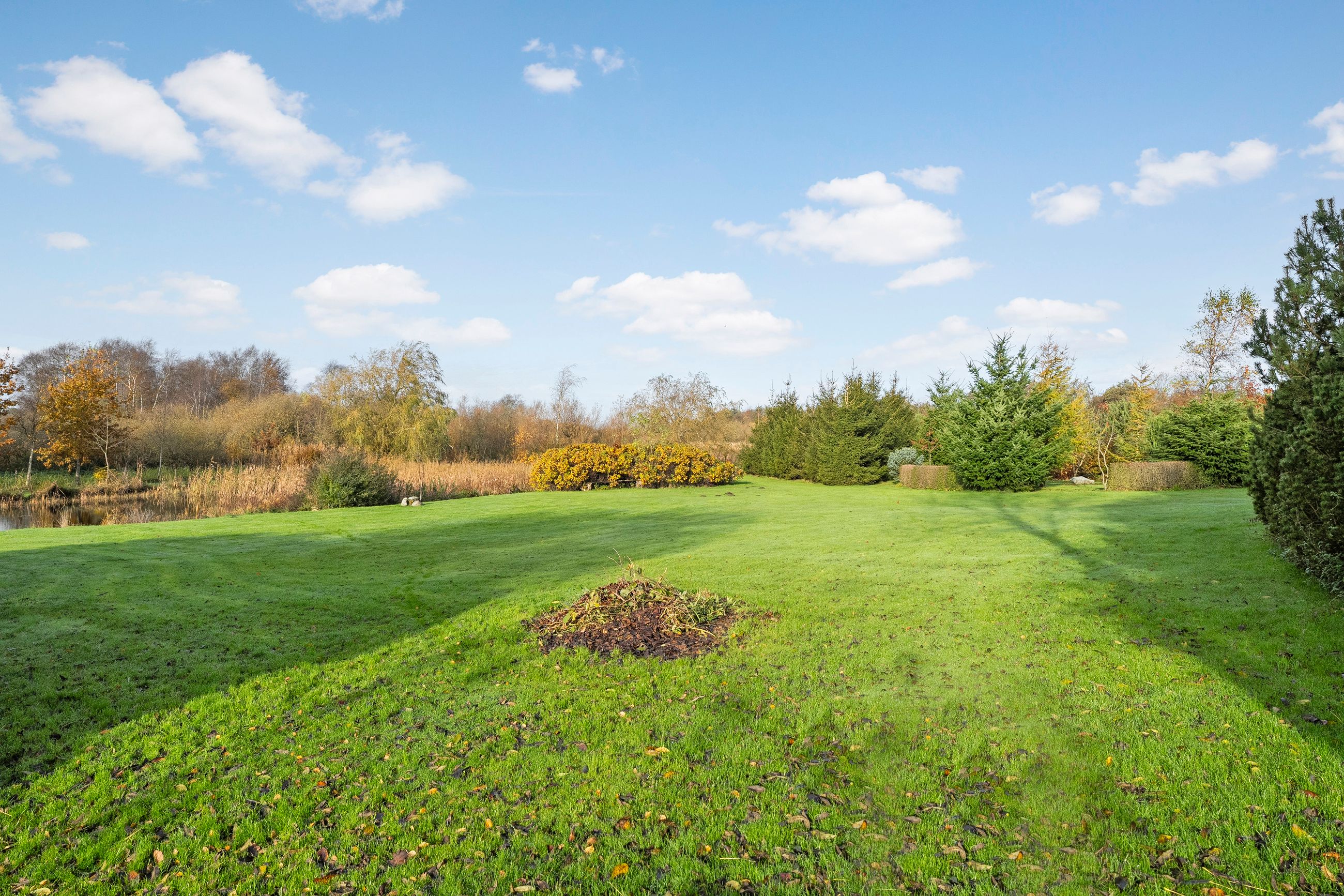 Ejendommen ligger på en betagende naturgrund, hvor der er lagt vægt på både skønhed og enkel vedligeholdelse. Haven fremstår næsten som en lille park – med grønne plæner, frugttræer, blomstrende buske og små kroge til afslapning og leg.