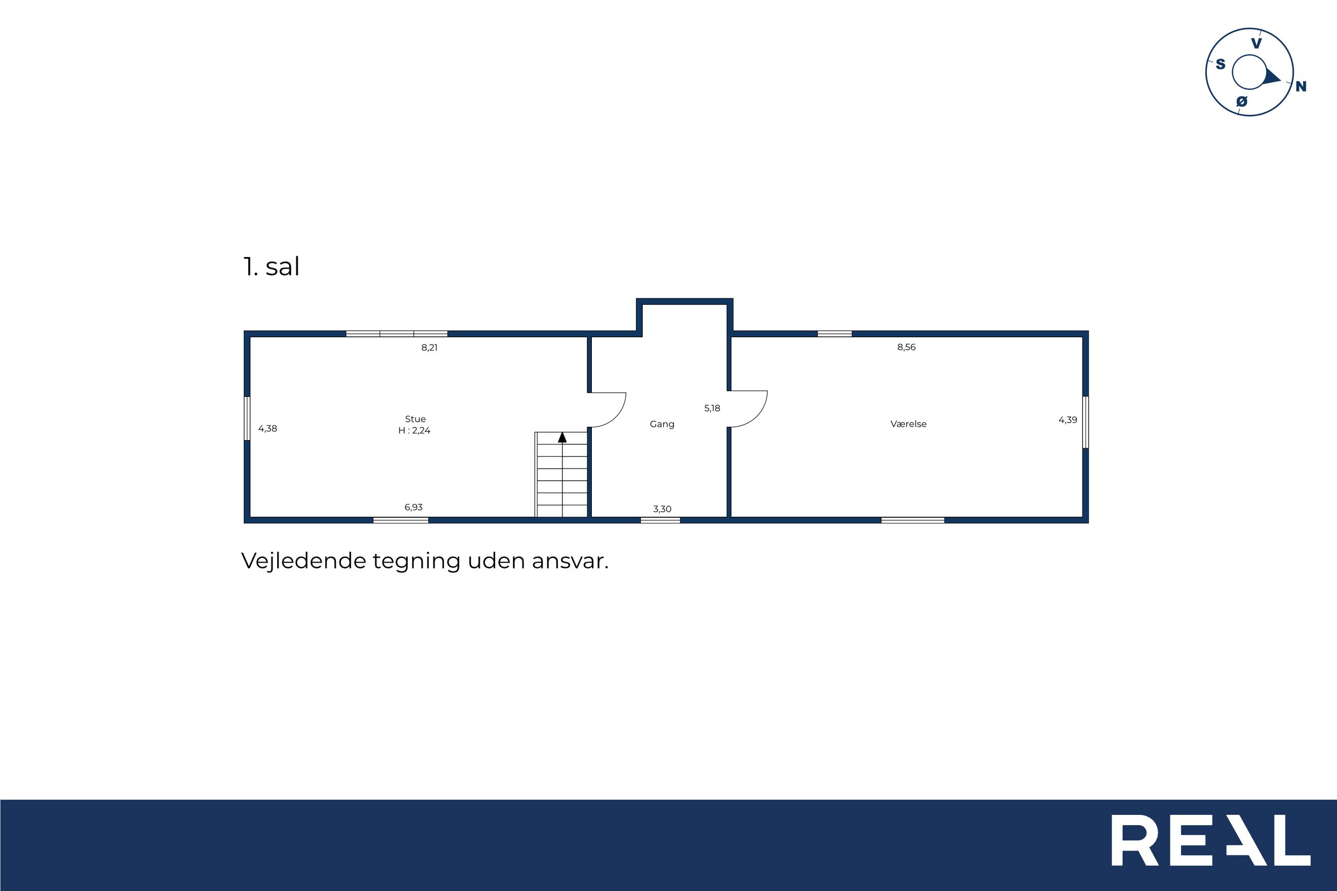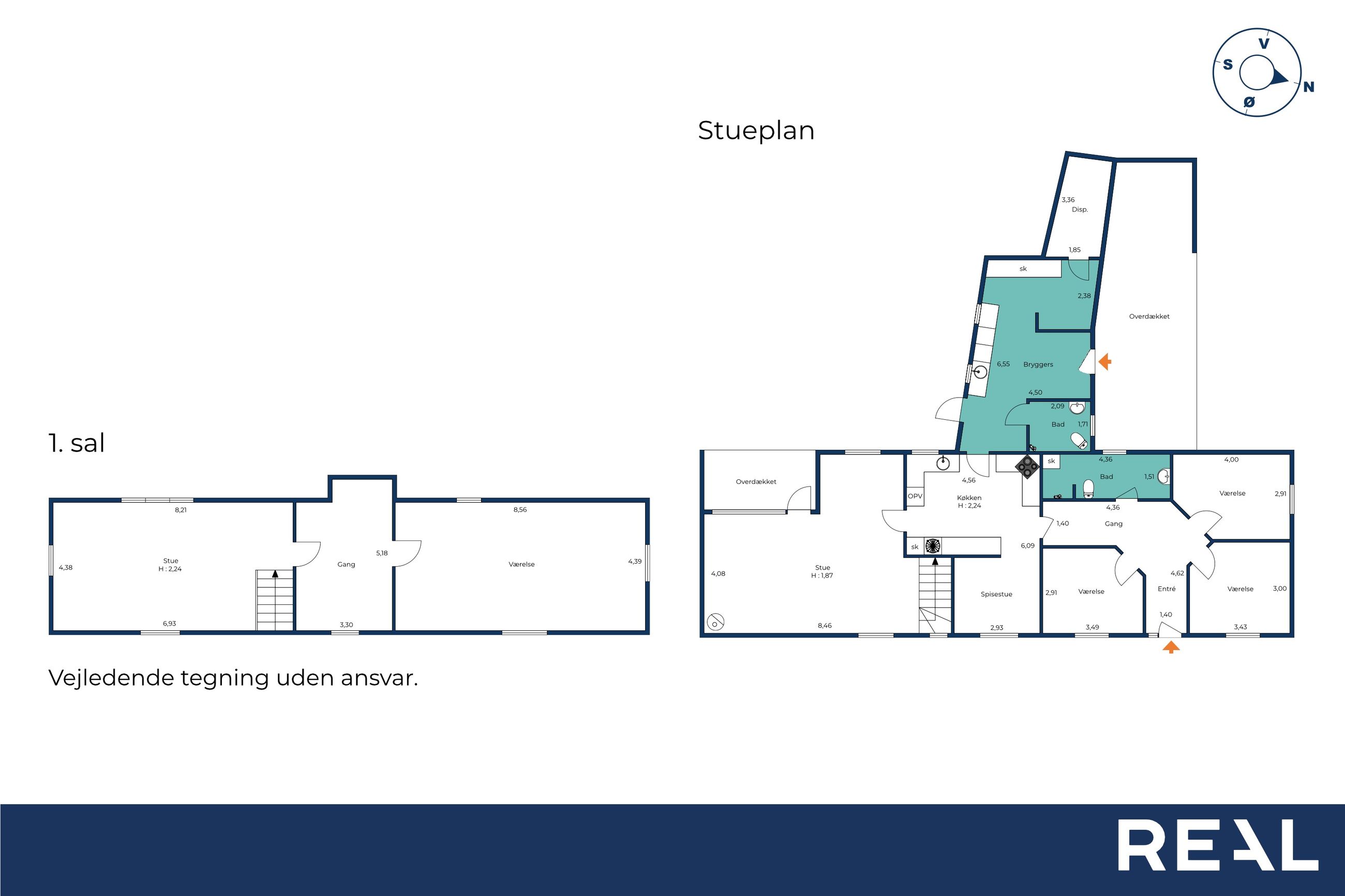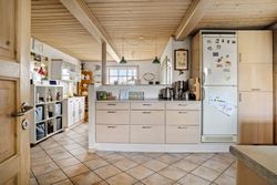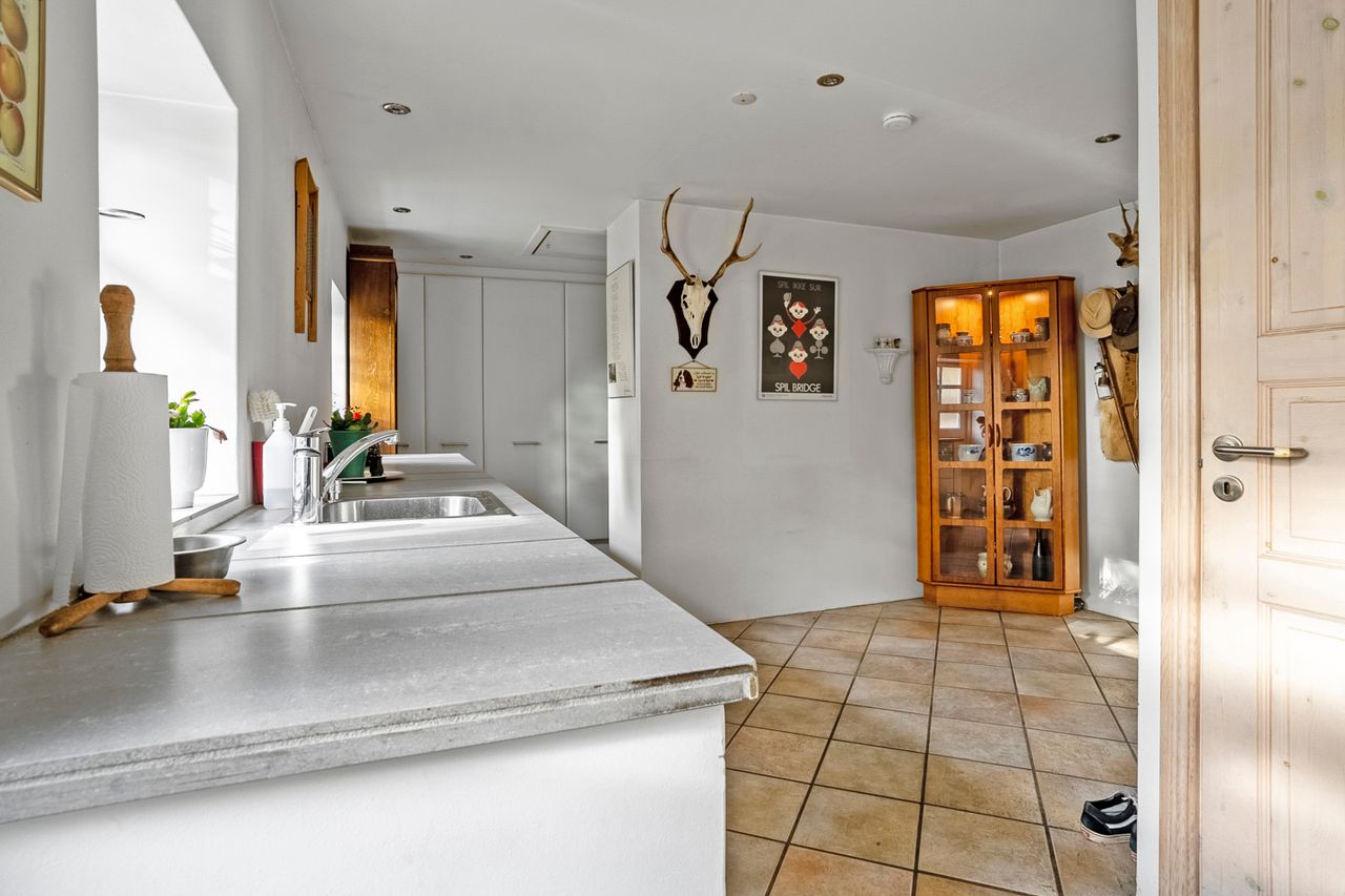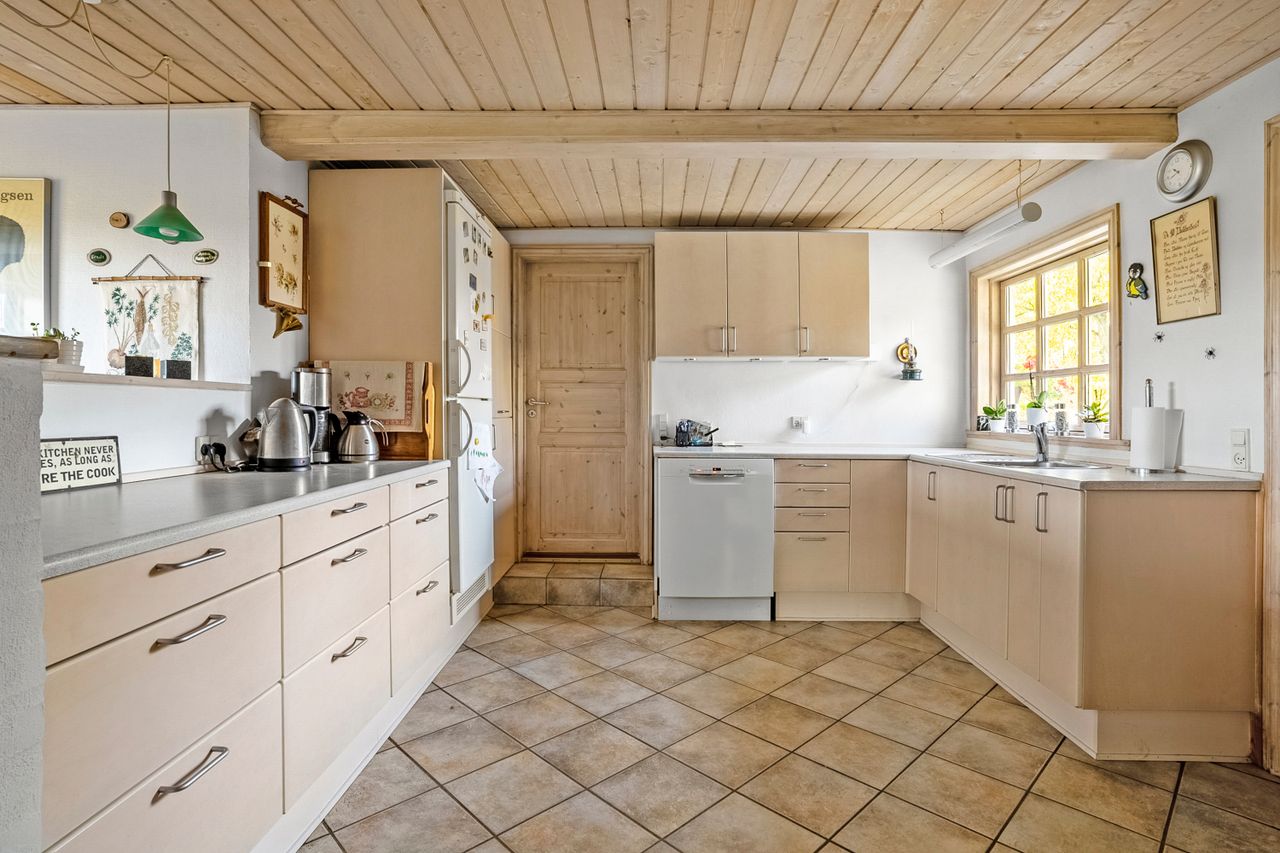 Boligen rummer hele 278 m2 fordelt på to plan og emmer af lys og varme. I stueplan møder du et stort, indbydende køkken-alrum med spiseplads og videre forbindelse til en hyggelig opholdsstue. Herfra er der direkte udgang til en overdækket terrasse, hvor du kan nyde udsigten over haven og det omkringliggende landskab.