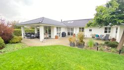 På Syrenlunden 10 i Jelling finder man en moderne og velindrettet villa fra 2006, der forener funktionalitet, kvalitet og æstetik på fornem vis. Boligen rummer 183 m2 bolig og 49 m2 integreret garage, og dertil kommer en ekstra garage på 37 m2 fra 2009. Ejendommen ligger på en 1.187 m2 stor grund i et særdeles attraktivt og roligt område – lige ved golfbanen og med nem adgang til skole, indkøb, kulturliv samt et trygt og børnevenligt stisystem, der leder ind til byen.