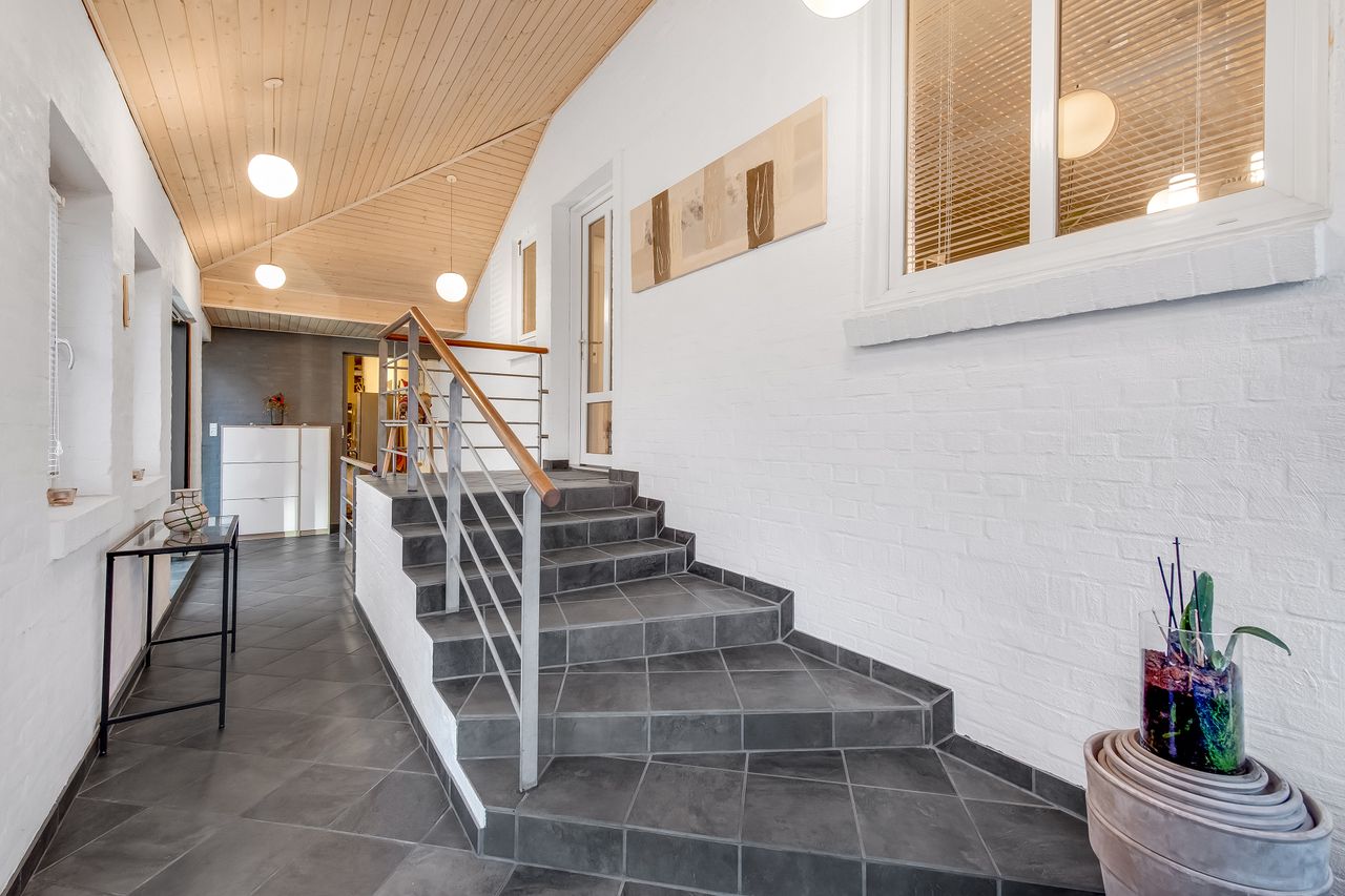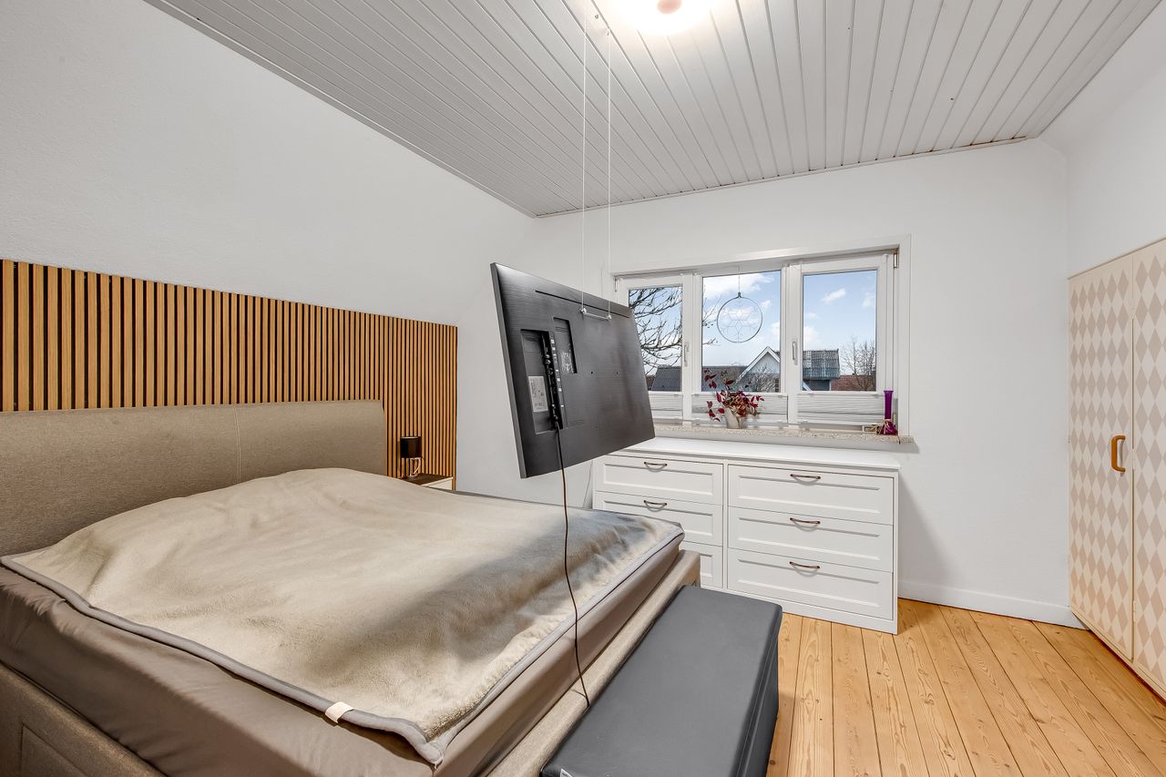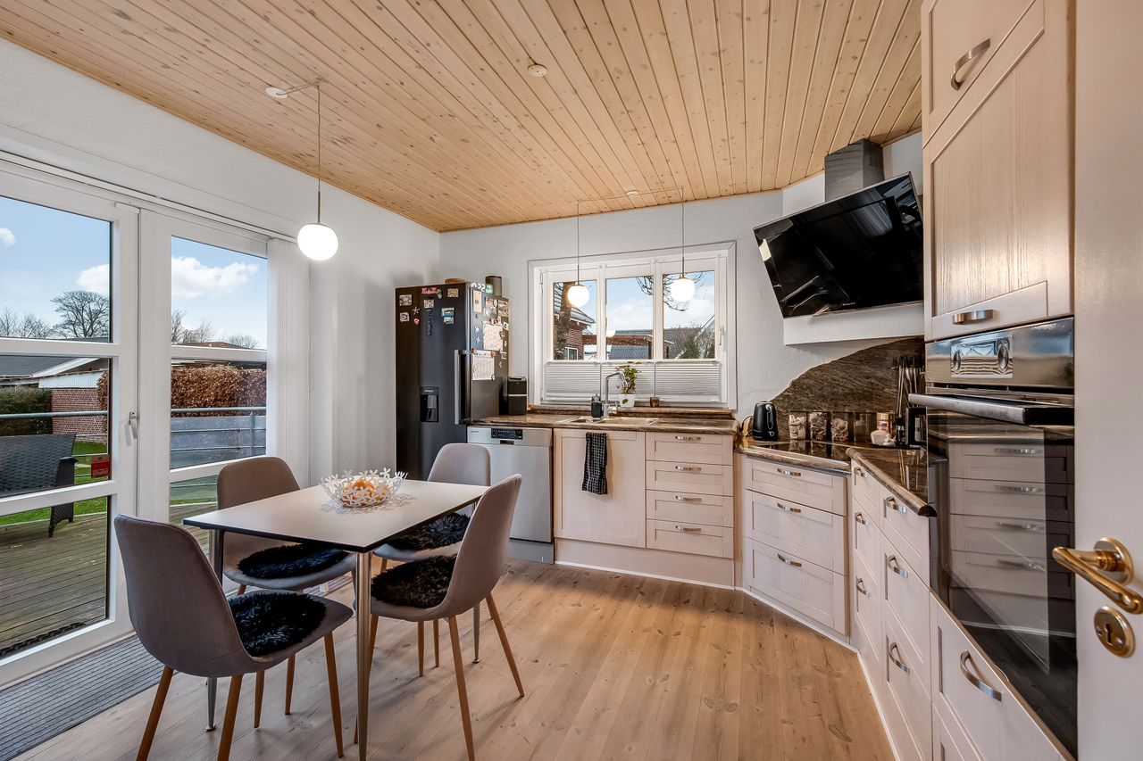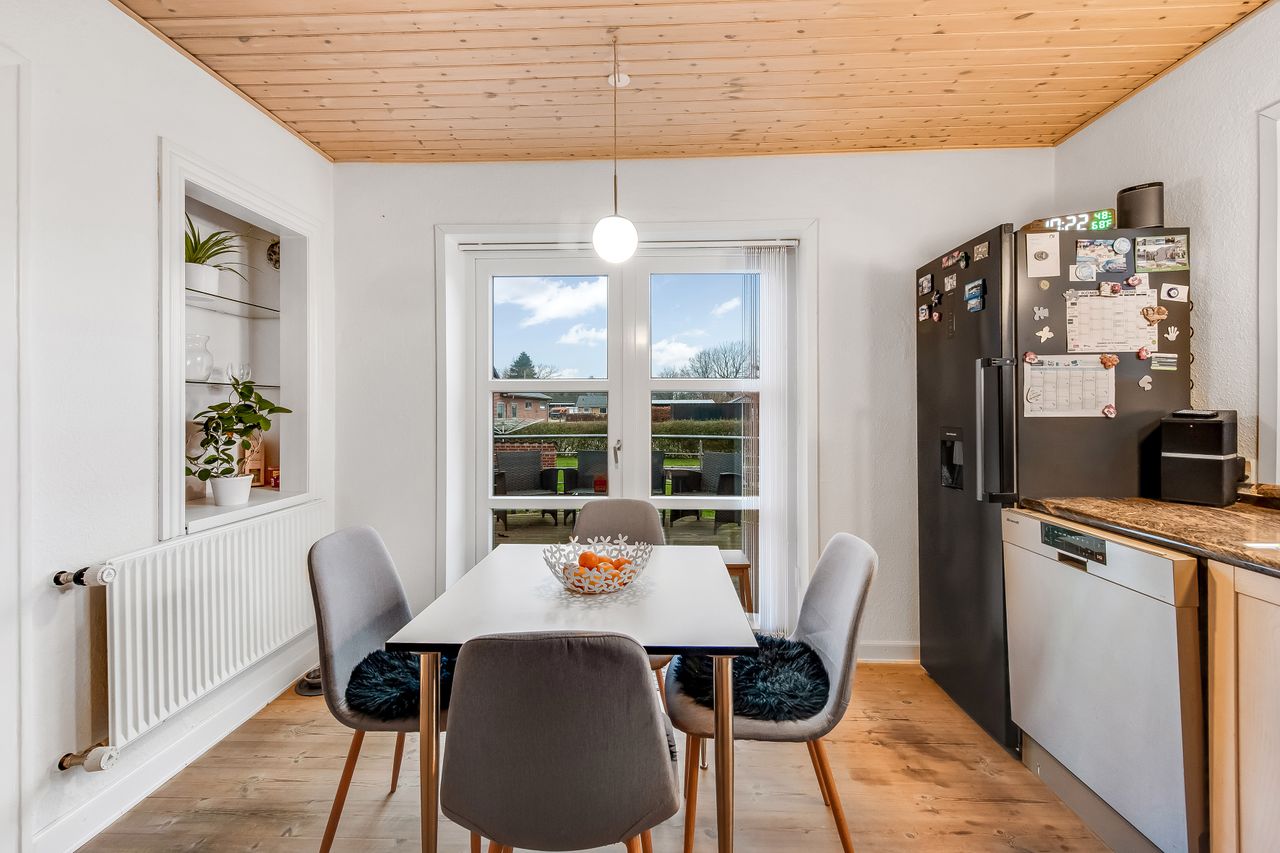 Som en ekstra bonus får du en rummelig, fuldmuret garage på hele 50 m2 med god loftshøjde. Her er der plads til både bil, værksted, opbevaring eller hobbyprojekter – en sjælden og meget brugbar detalje, som mange vil sætte stor pris på.