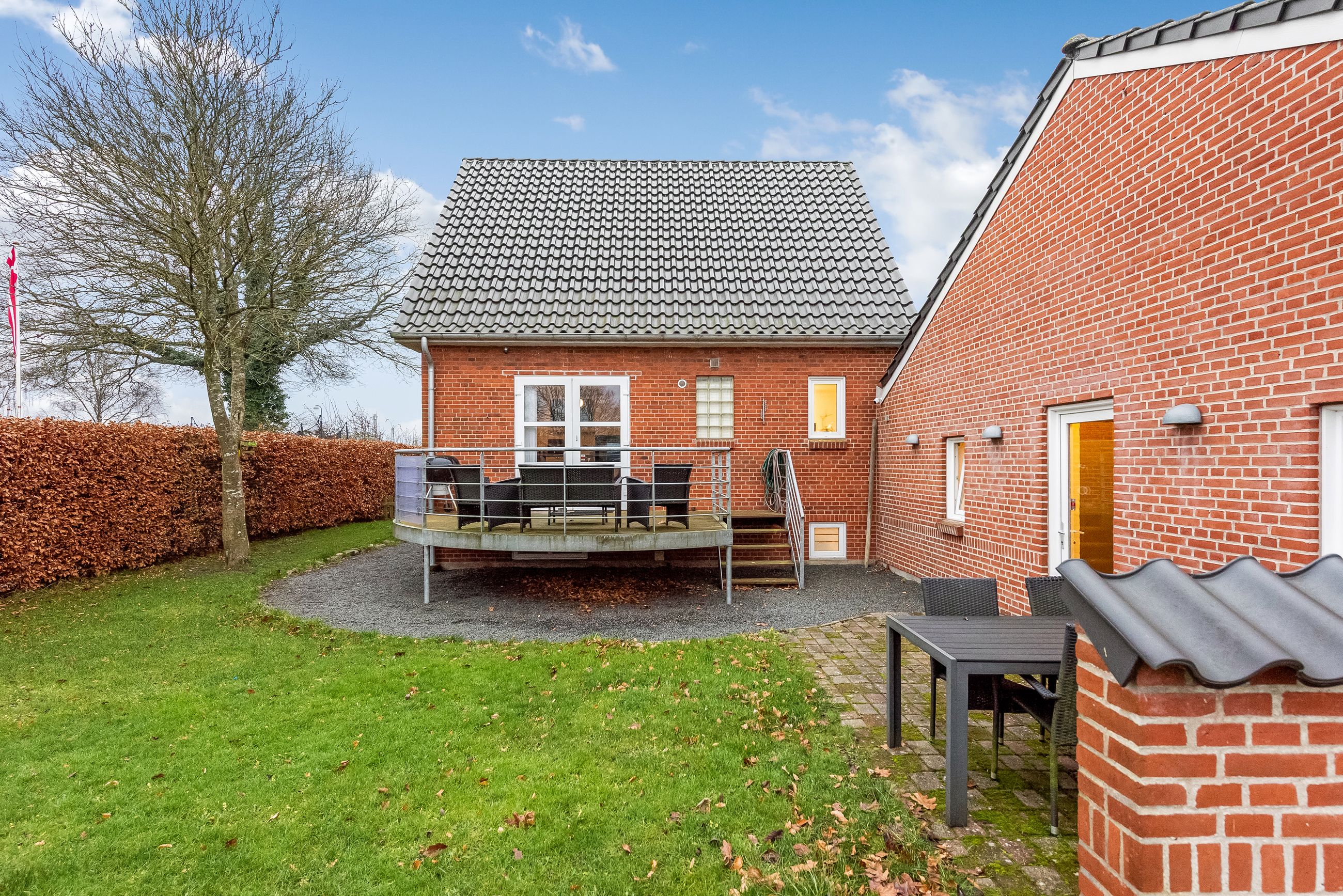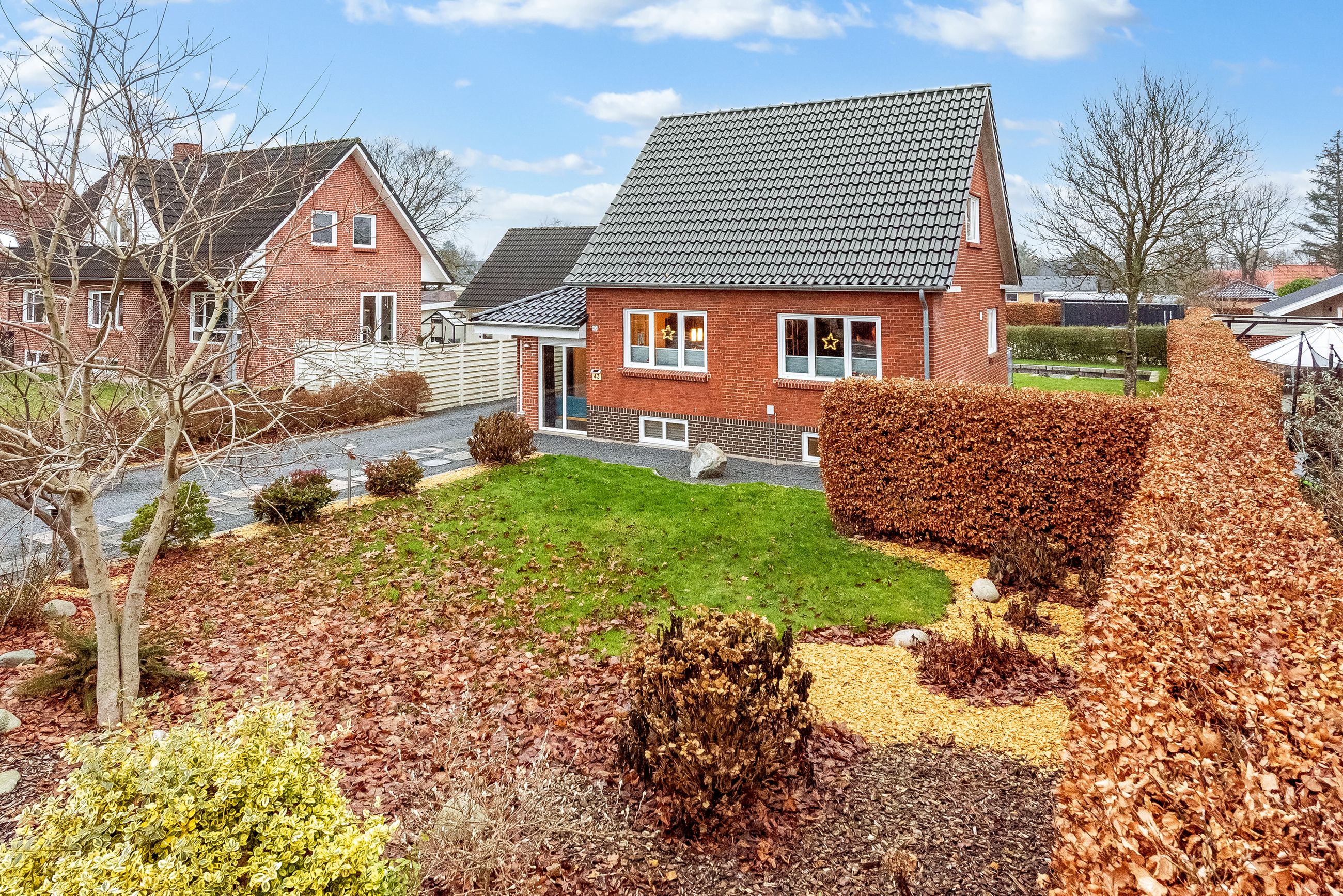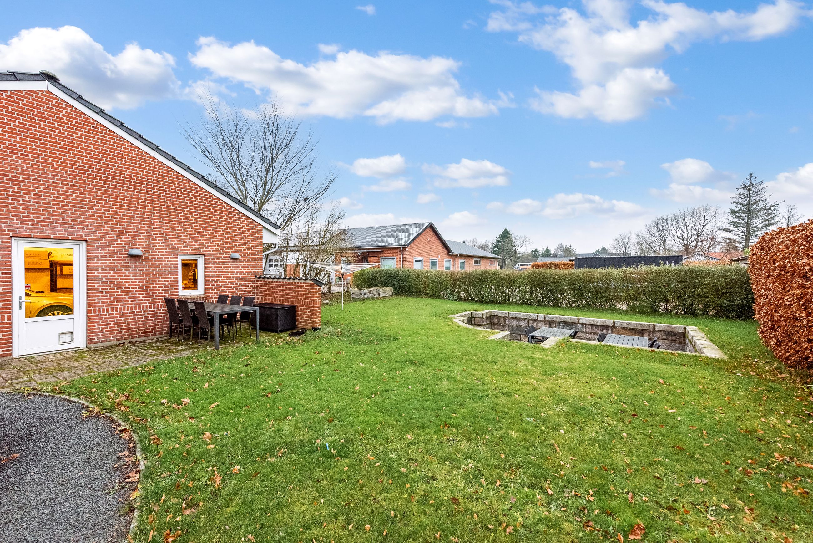 De udvendige rammer er lige så attraktive. Huset præsenterer sig flot med et tag fra 2010, pæn og velholdt facade samt nyere vinduer, der giver et godt lysindfald og minimal vedligeholdelse. Den lukkede have er privat og let at holde – perfekt til både afslapning, leg eller små haveprojekter.