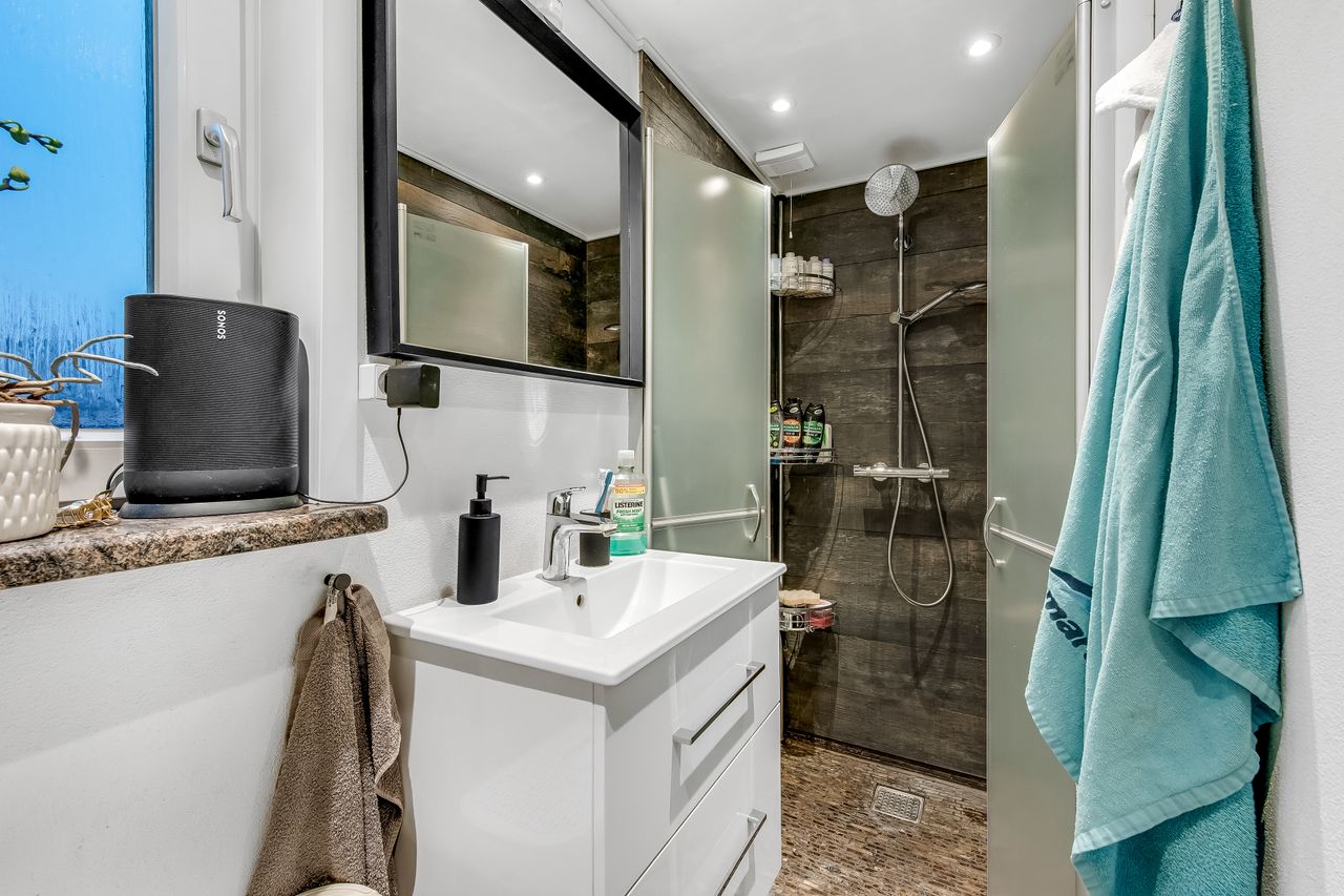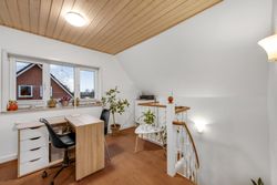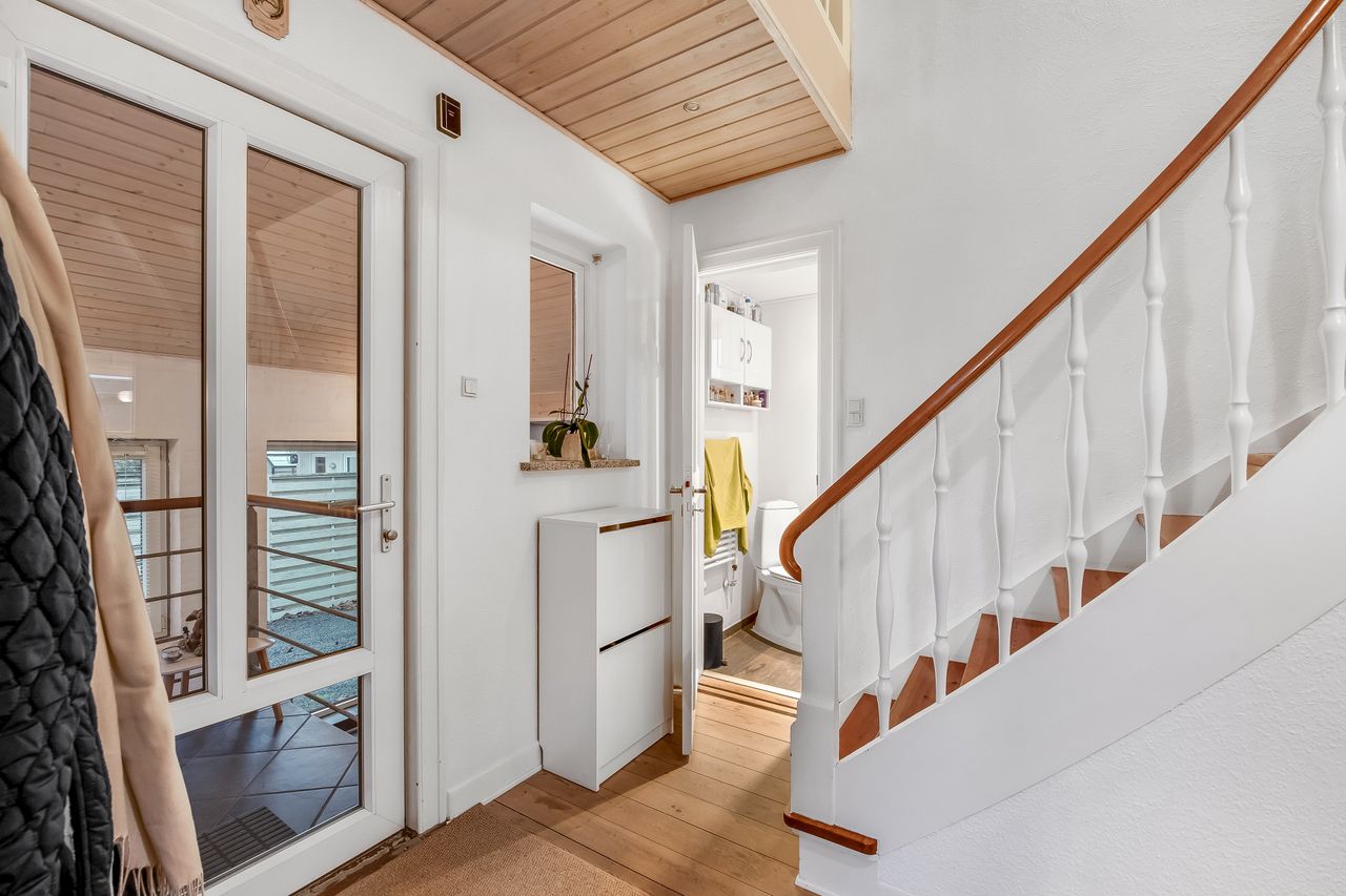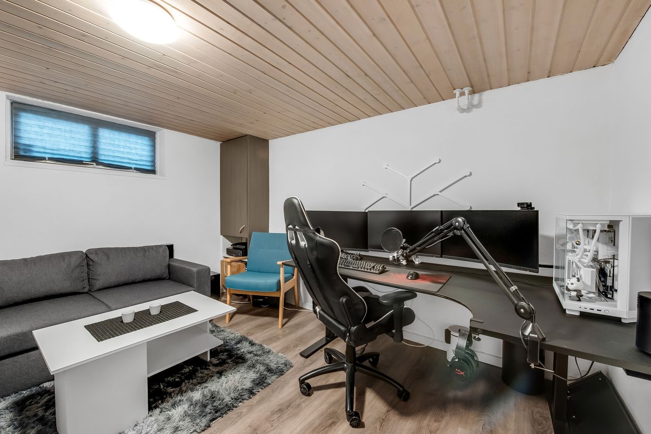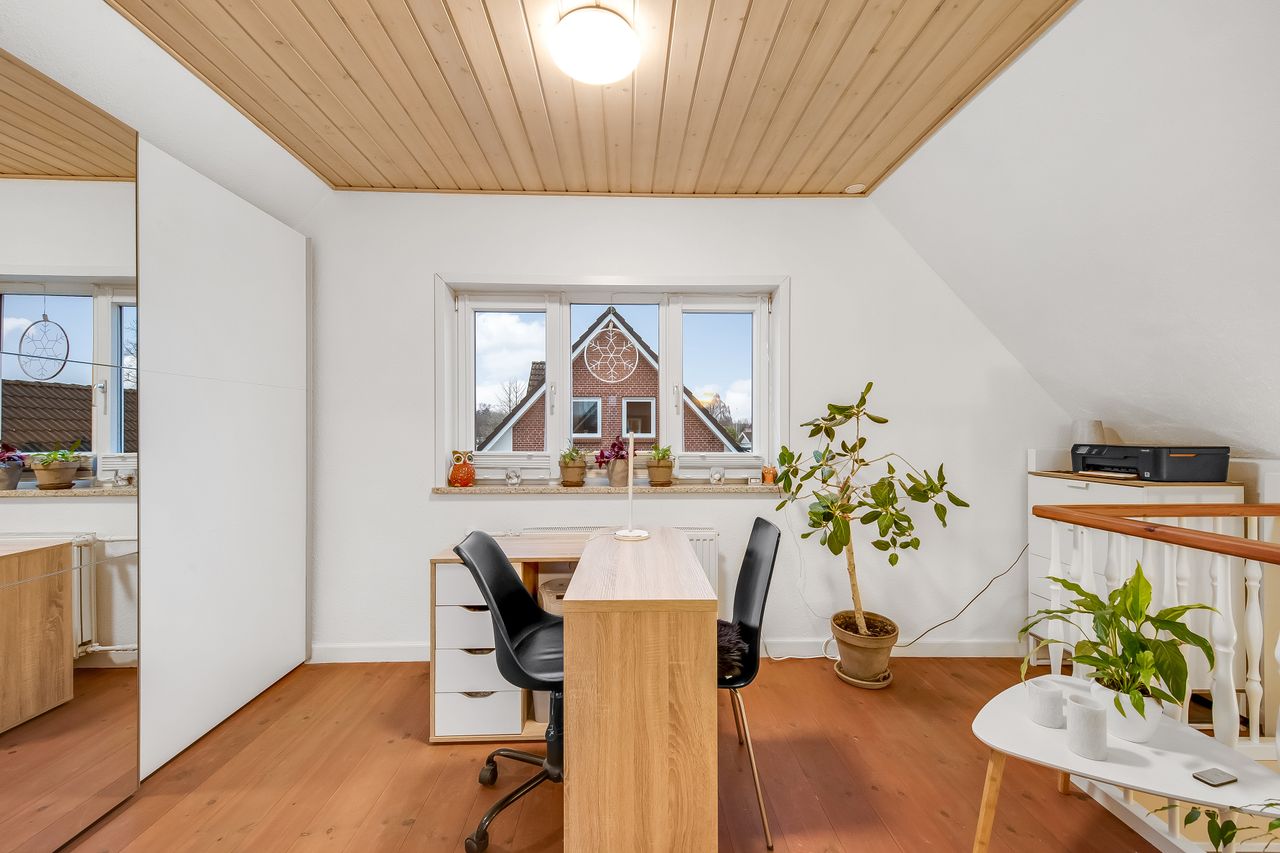 Huset er indrettet med en praktisk og funktionel planløsning, hvor hver kvadratmeter er udnyttet optimalt. På trods af størrelsen opleves boligen både rummelig og hyggelig, og med toilet på begge etager samt i kælderen bliver hverdagen ekstra bekvem. Alt fremstår lyst, venligt og velplejet, så man hurtigt føler sig hjemme.