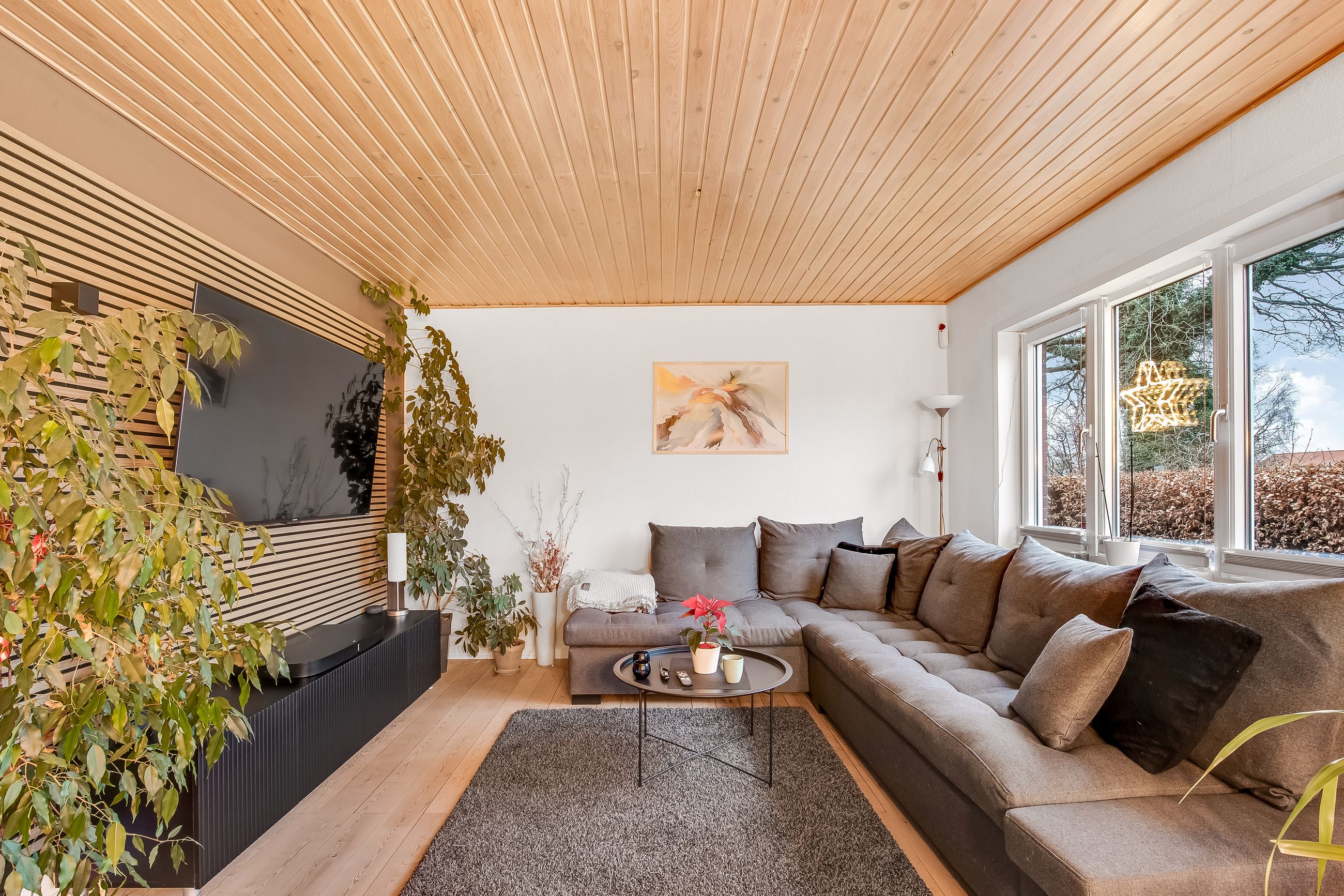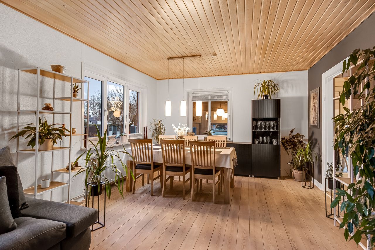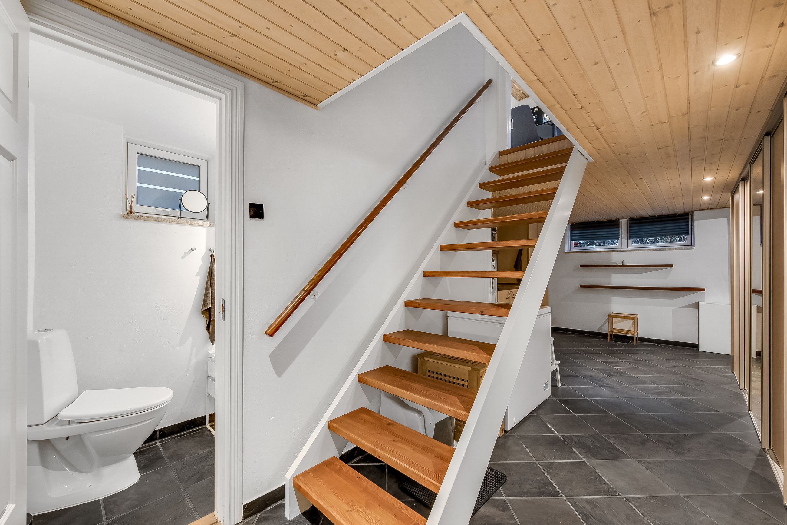 Huset er indrettet med en praktisk og funktionel planløsning, hvor hver kvadratmeter er udnyttet optimalt. På trods af størrelsen opleves boligen både rummelig og hyggelig, og med toilet på begge etager samt i kælderen bliver hverdagen ekstra bekvem. Alt fremstår lyst, venligt og velplejet, så man hurtigt føler sig hjemme.