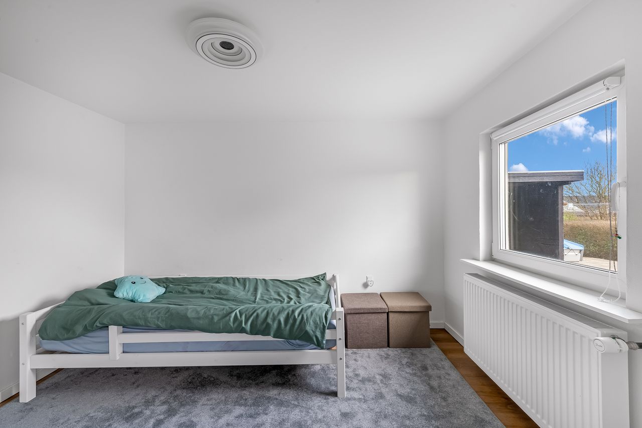 Boligen byder på en gennemtænkt planløsning med to gode børneværelser samt et stort og lyst soveværelse. Derudover er der både badeværelse og gæstetoilet, som sikrer ekstra komfort for både familie og gæster. Den rummelige stue har et dejligt lysindfald og fungerer som boligens naturlige samlingspunkt, mens det hyggelige spisekøkken har god plads til både madlavning og samvær.