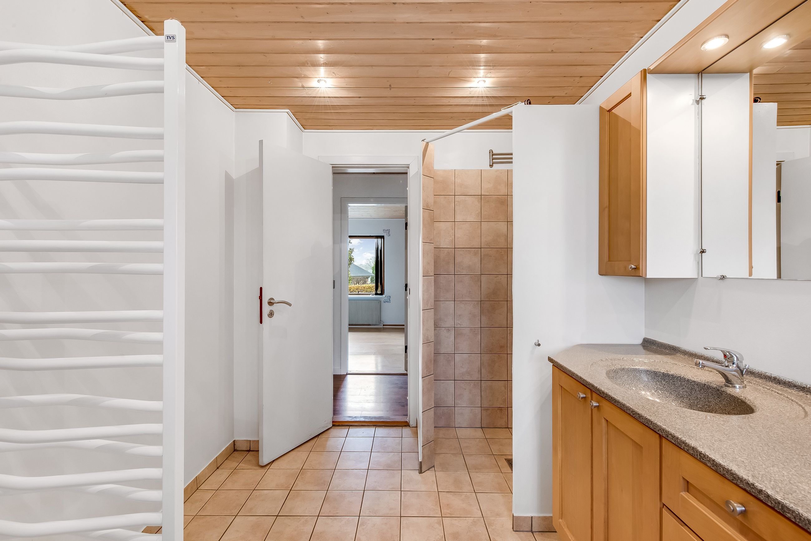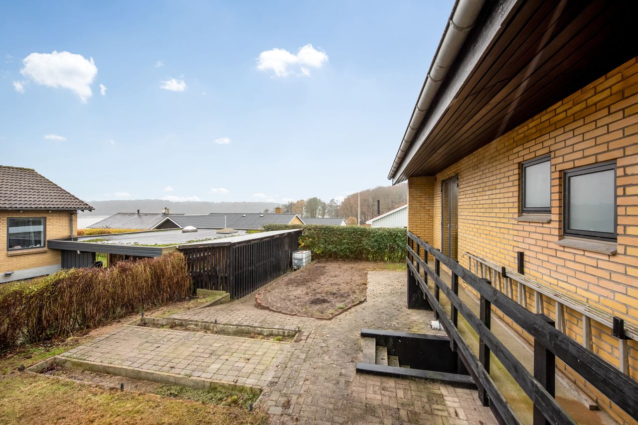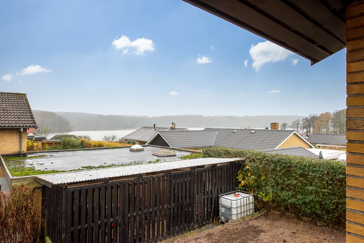 Fra soveværelset er der direkte udgang til en hyggelig svalegang, hvor du kan nyde en fantastisk udsigt over Søgård Sø – et fredfyldt sted at starte dagen eller runde aftenen af.