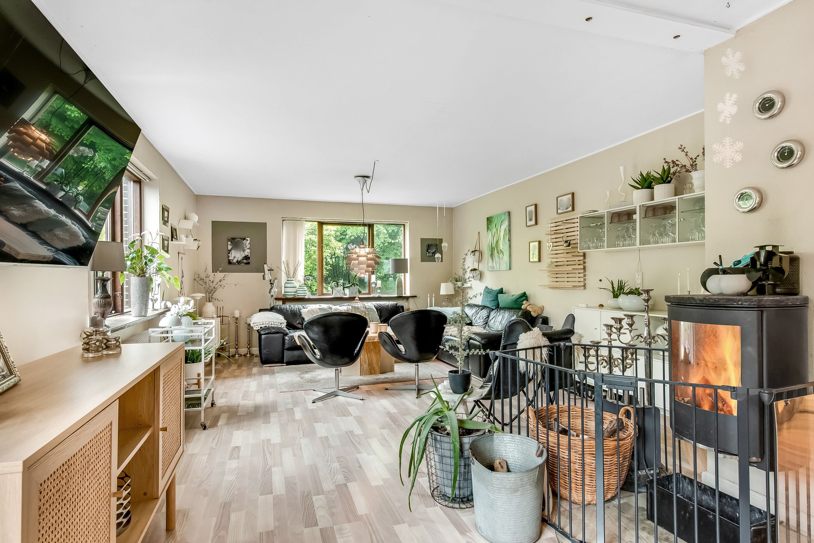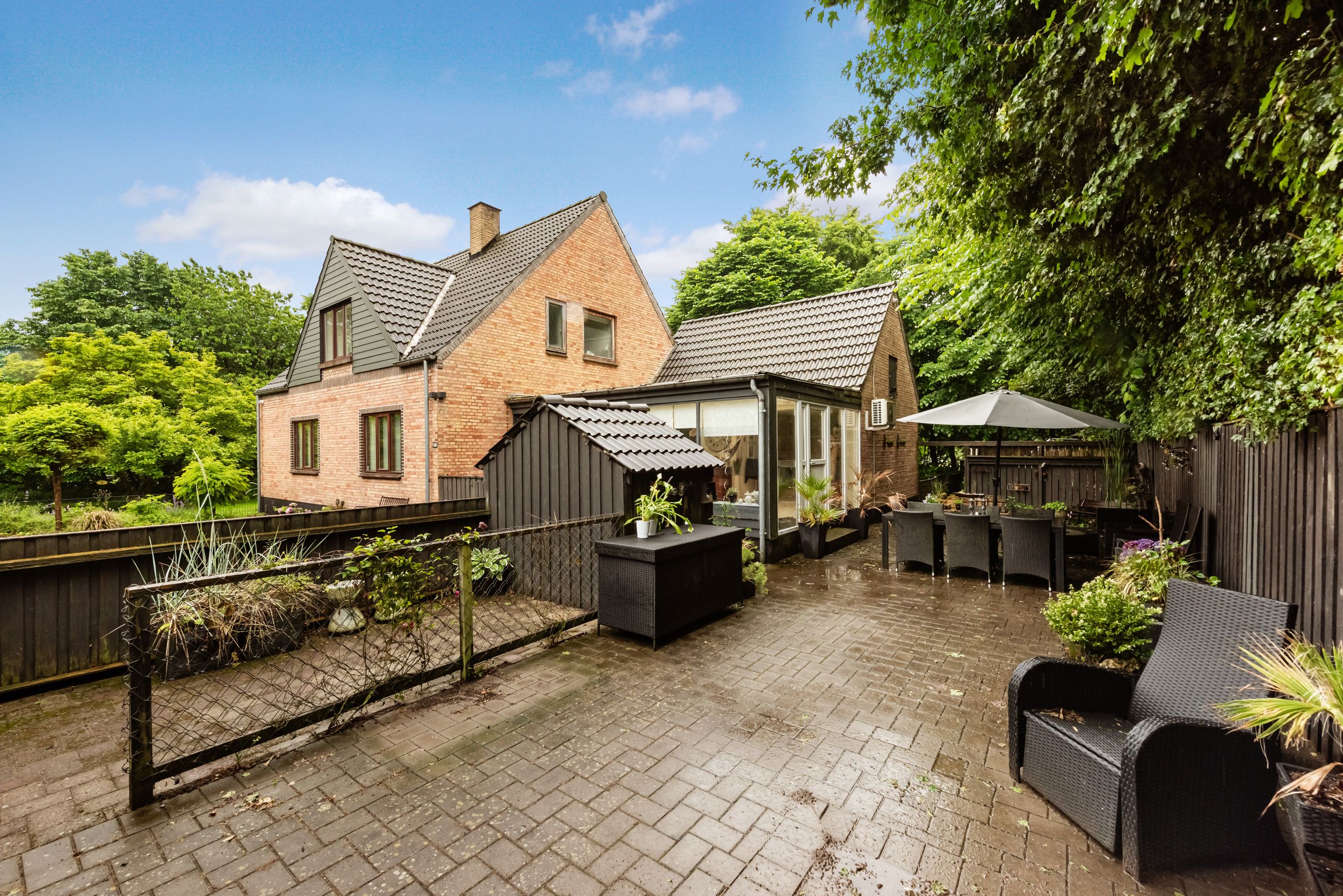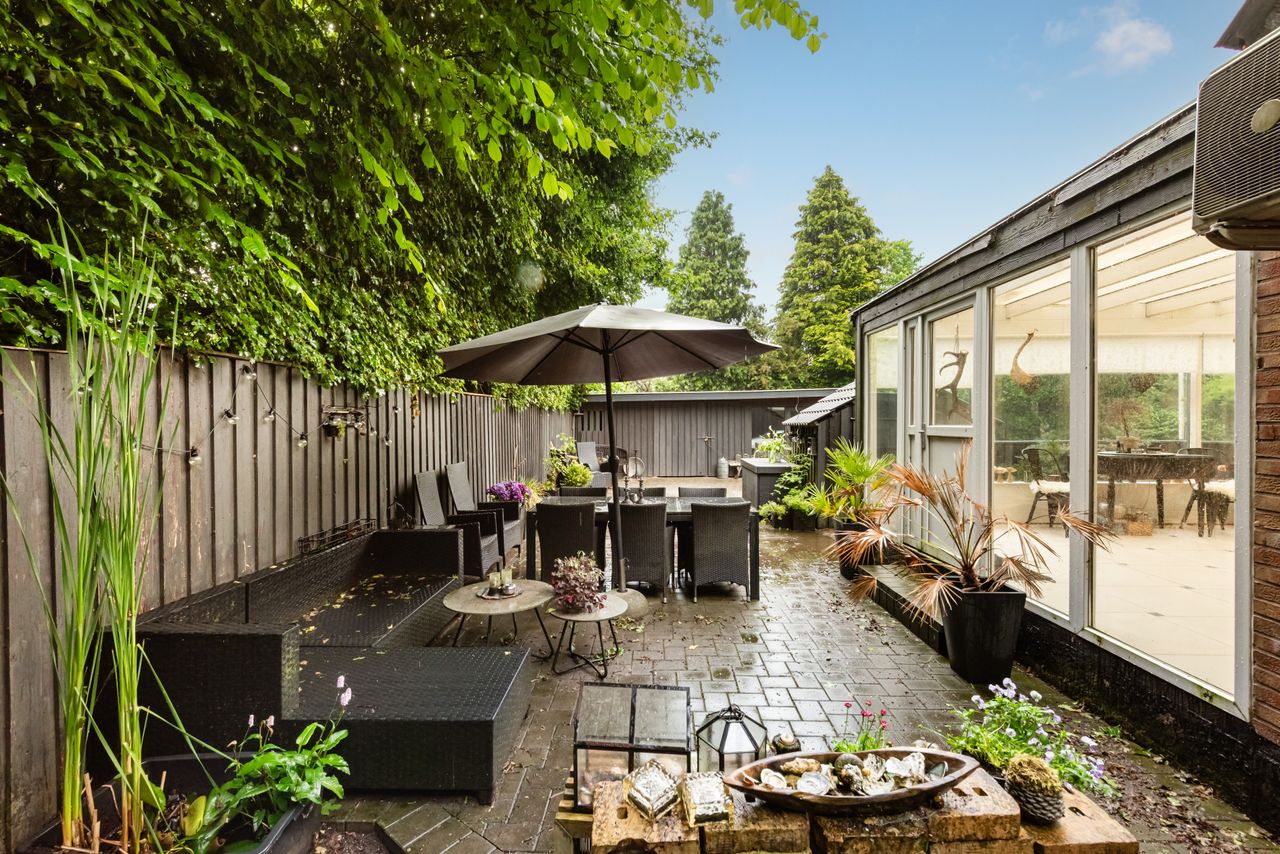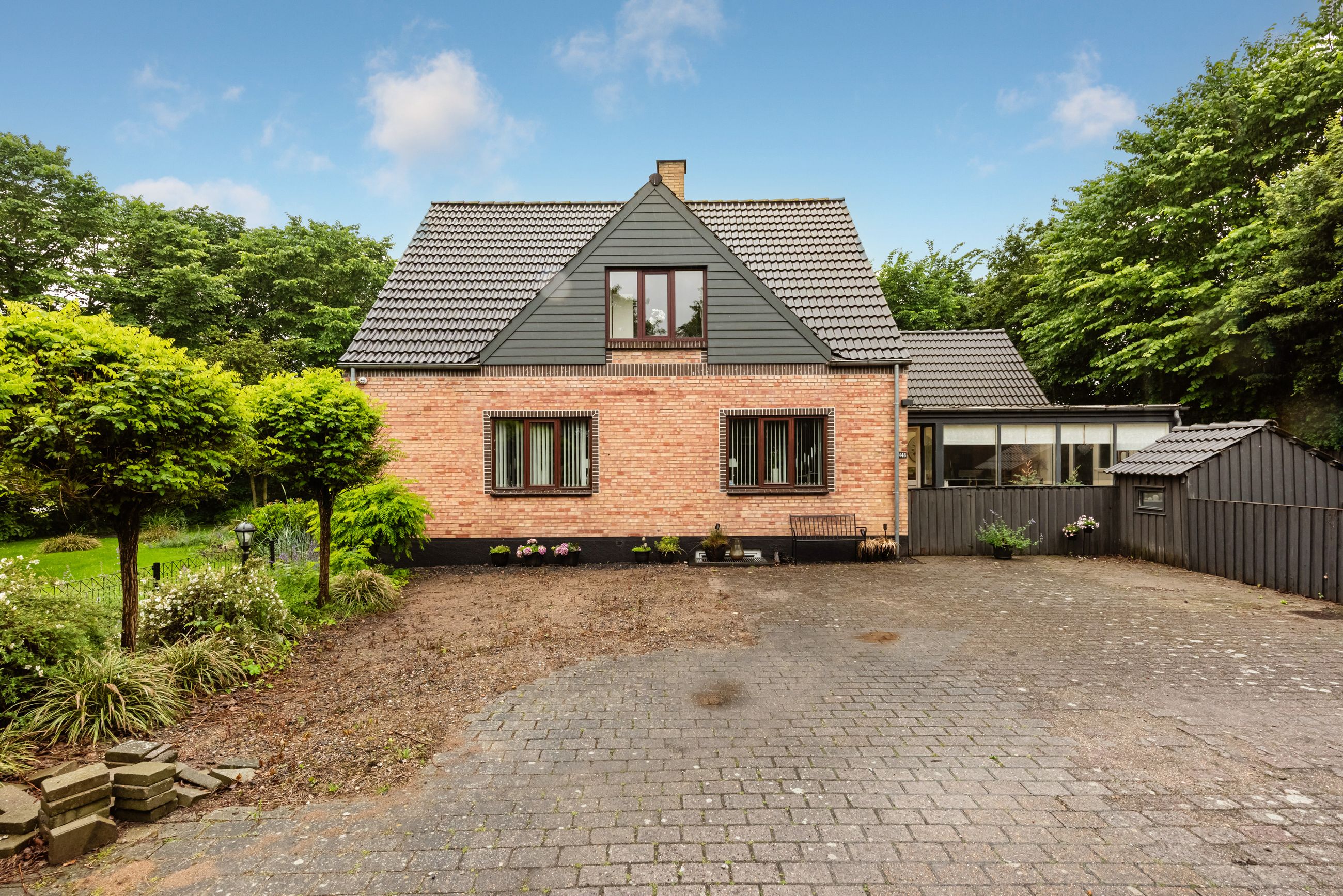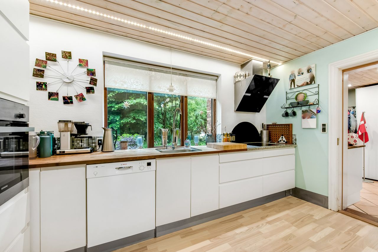 Ved første øjekast fremstår ejendommen med sit indbydende og velholdte ydre, der skaber en varm og indbydende atmosfære. De store vinduespartier sikrer et skønt lysindfald, der bringer naturen helt tæt på og skaber en lys og indbydende stemning gennem hele hjemmet.